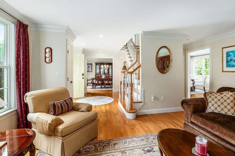 6 Thompsons Farm Way, Beverly, presents a remarkable single-family residence in the heart of Beverly. Constructed in 2007, this home offers a wonderful opportunity for those seeking space and refined living. Within this home, you will discover three full bathrooms, designed with both functionality and comfort in mind. The residence features five bedrooms, providing ample private space for rest and rejuvenation. Each bedroom offers a sanctuary from the outside world, a personal haven. The two-car garage presents a secure and sheltered space for vehicles. With 2901 square feet of living area, this home provides a generous interior space to accommodate a variety of lifestyles. Partially finished basement, perfect for the home work out area, home shop for those projects that need your attention. Great room over the garage perfect for the kids playroom or a large home office. The level yard is a half acre, large enough for a future pool, a lovely garden area, also a good sized garden shed.