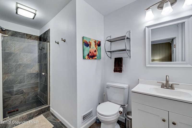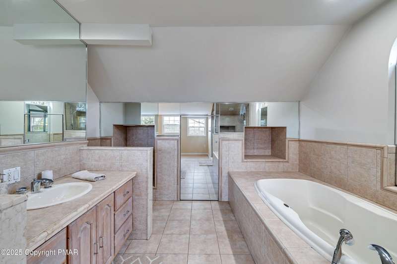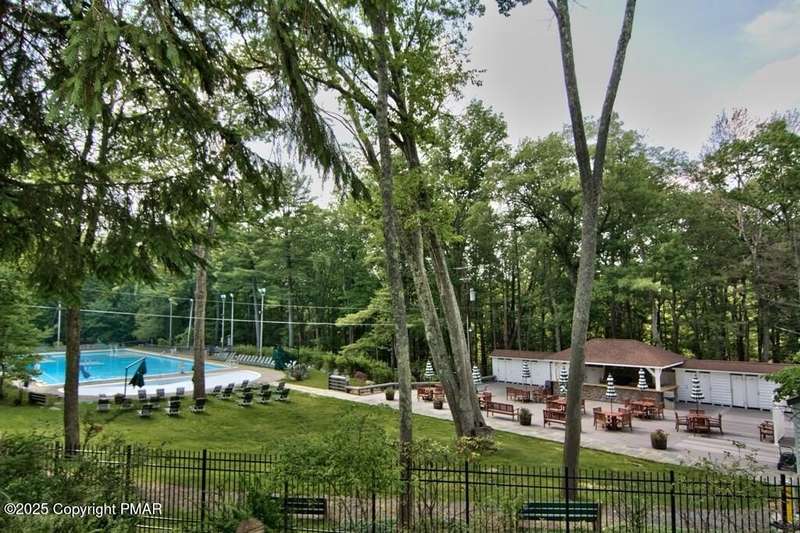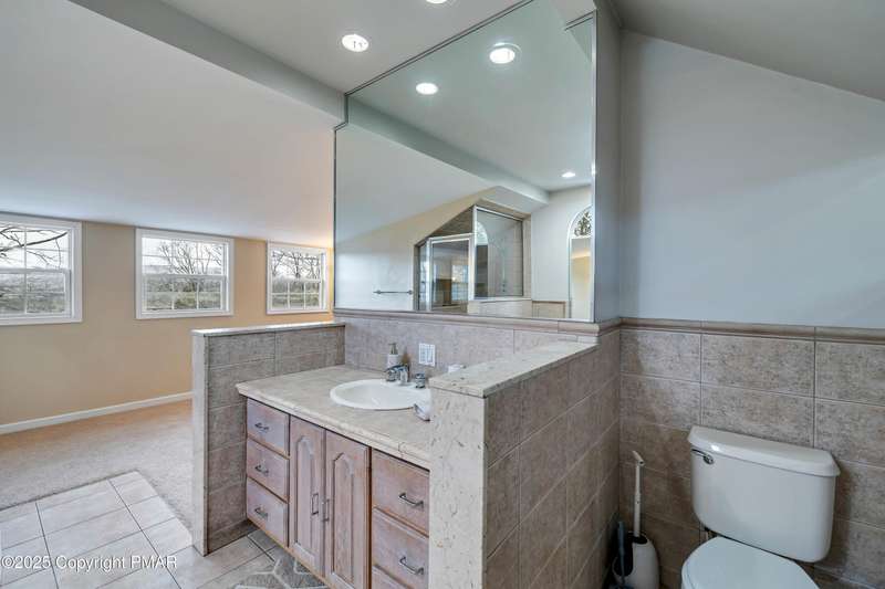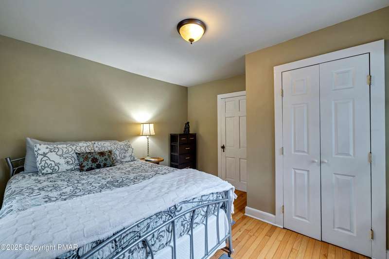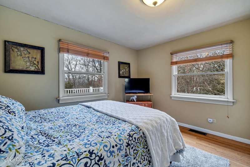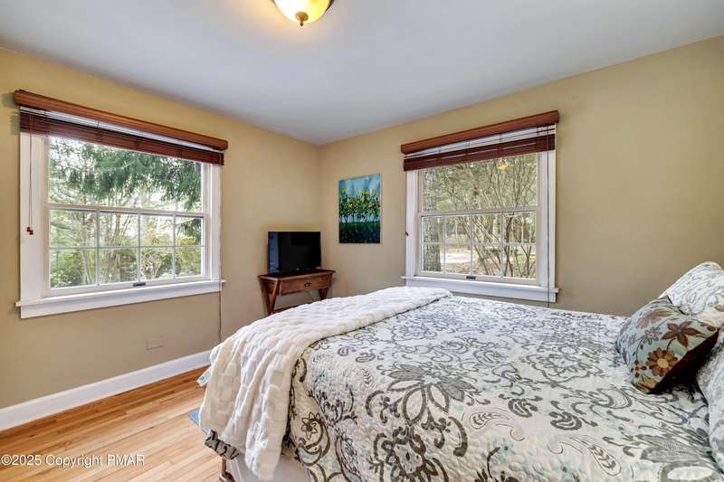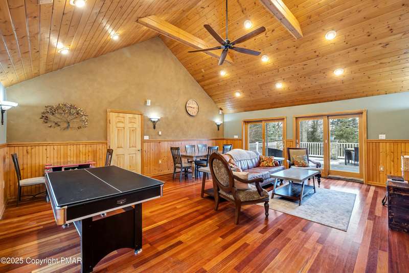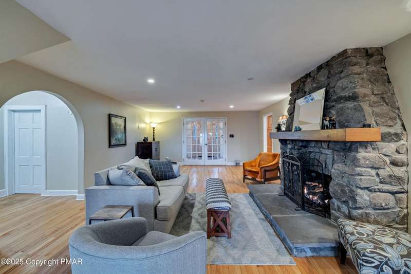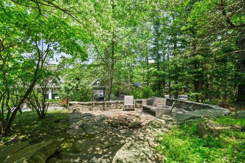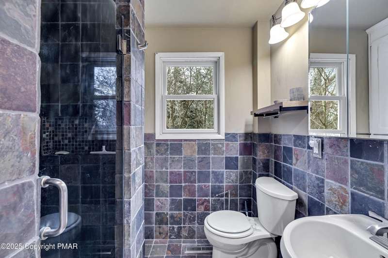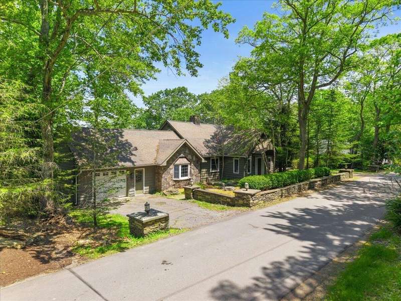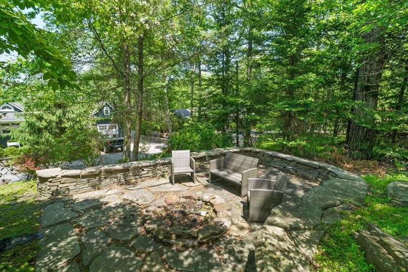 This spacious home in historic Buck Hill Falls has charm, character and Mountain Views. Both the main living room with native stone fireplace and huge great room with vaulted ceiling open to a large covered porch and open deck with far-reaching mountain views. The kitchen has been remodeled and features granite countertops and stainless appliances. There are 4 bedrooms, including one on the first floor with full on-suite bath. There are 2 more bedrooms on the 1st floor and a beautifully tiled full bath. The entire 2nd floor is the master suite with tray ceiling, built-ins, dressing room and an open master bath. There is a 1-car garage and incredible landscaping w/stone walls, terraces, stone bar, fire pit, and mature plantings. Perfect vacation or primary home in resort community.