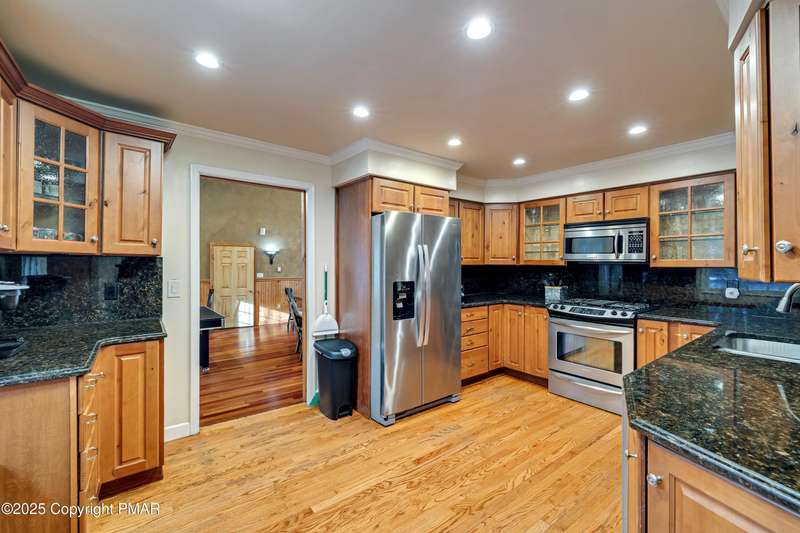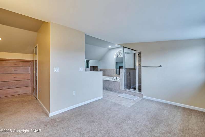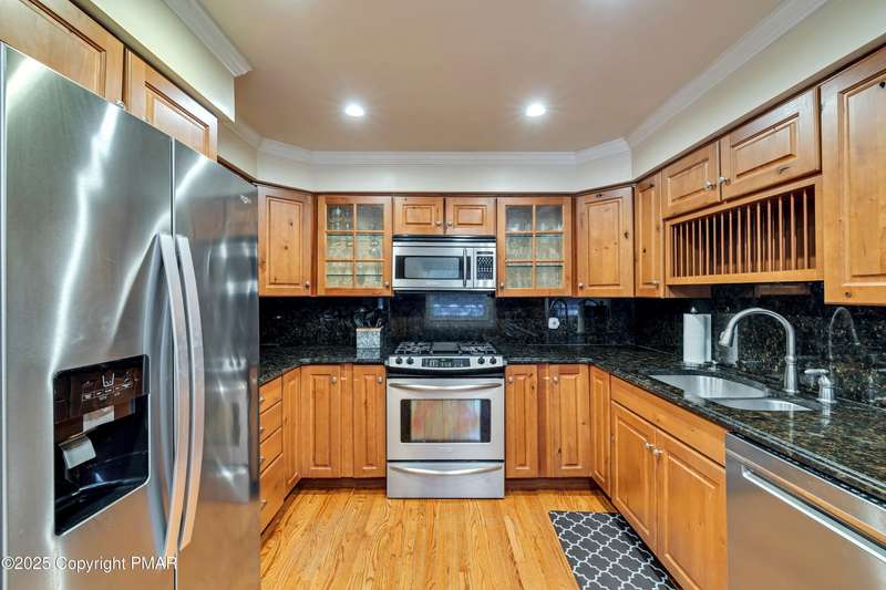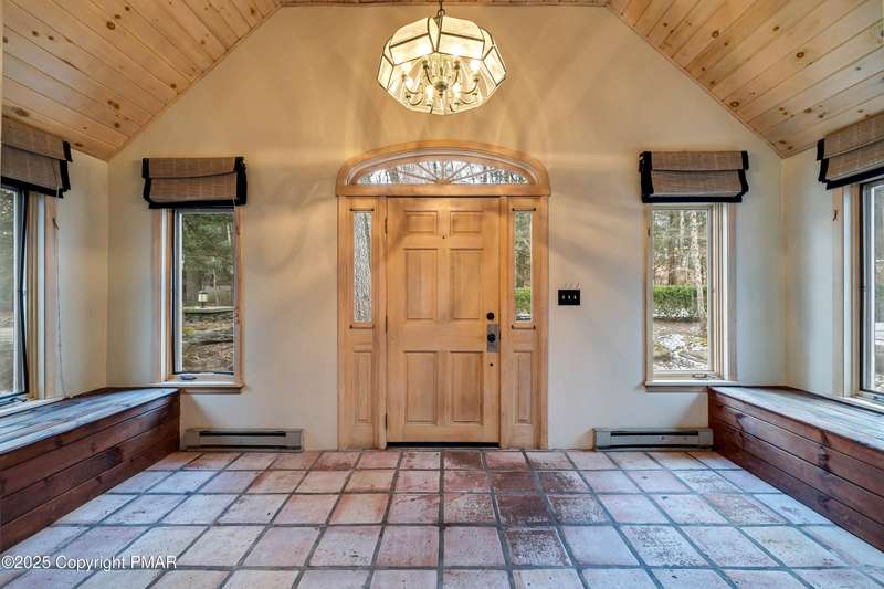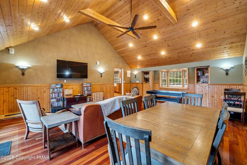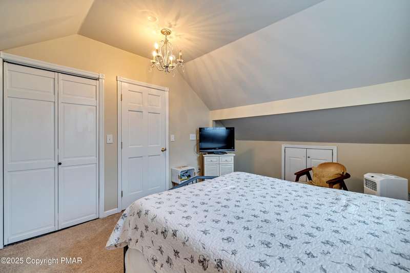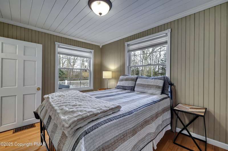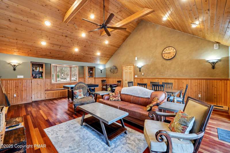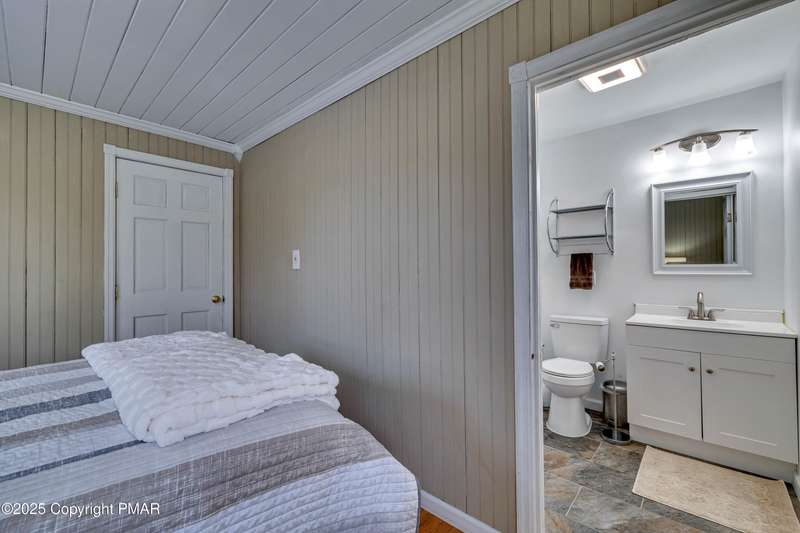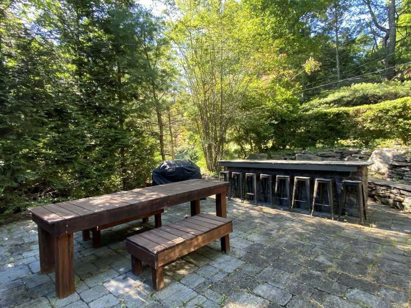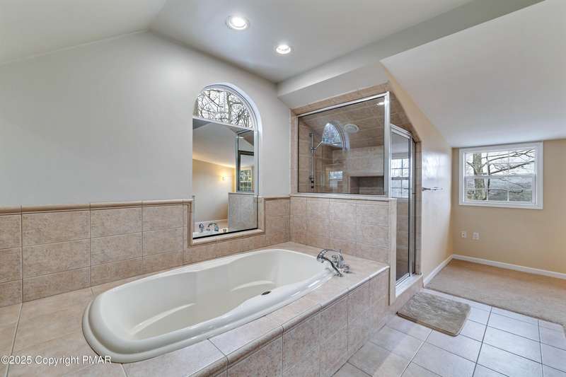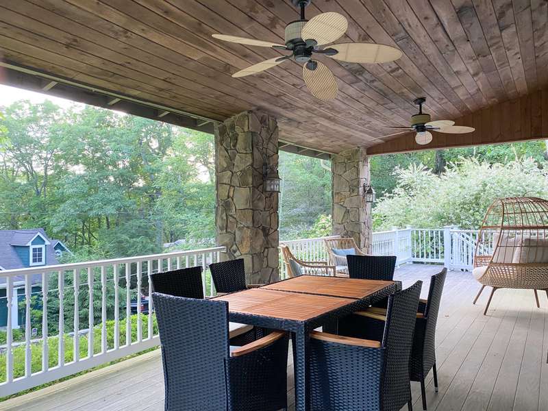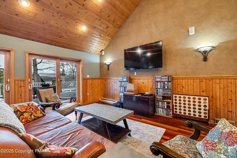 This spacious home in historic Buck Hill Falls has charm, character and Mountain Views. Both the main living room with native stone fireplace and huge great room with vaulted ceiling open to a large covered porch and open deck with far-reaching mountain views. The kitchen has been remodeled and features granite countertops and stainless appliances. There are 4 bedrooms, including one on the first floor with full on-suite bath. There are 2 more bedrooms on the 1st floor and a beautifully tiled full bath. The entire 2nd floor is the master suite with tray ceiling, built-ins, dressing room and an open master bath. There is a 1-car garage and incredible landscaping w/stone walls, terraces, stone bar, fire pit, and mature plantings. Perfect vacation or primary home in resort community.