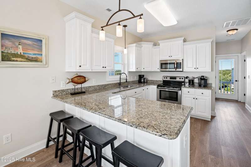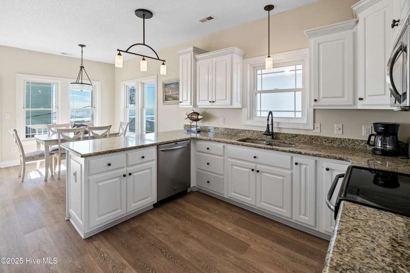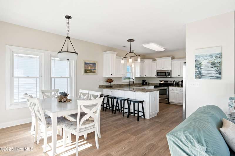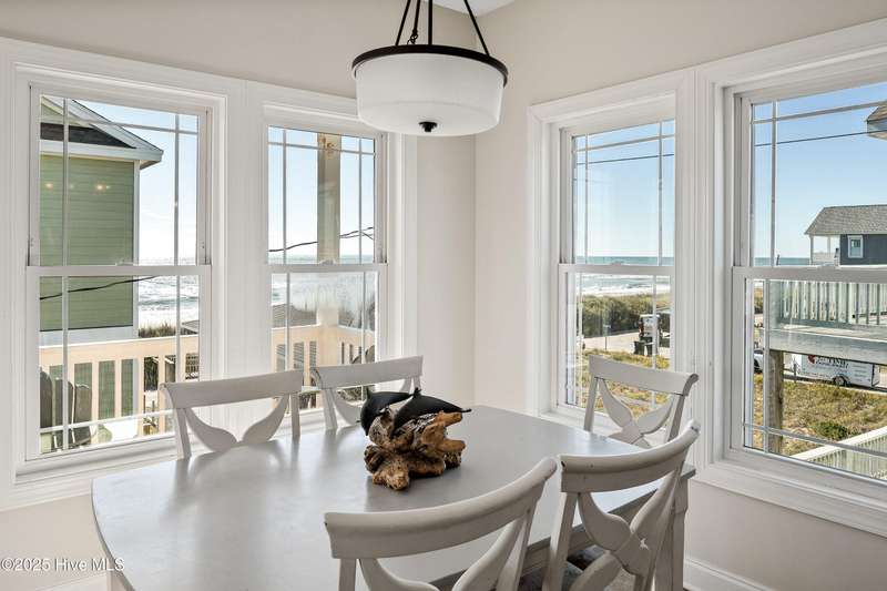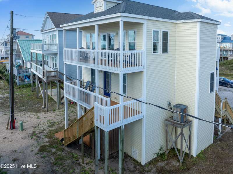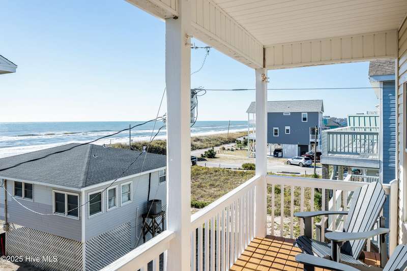 Ocean Views await! Welcome to your new beach home ideally situated just a short walk from the soft, inviting sands of North Topsail Beach. This thoughtfully designed 4-bedroom, 3-bath reverse floor plan offers plenty of luxurious living space.Take the elevator from the ground level to the top floor, where you'll be greeted by an open-concept floor plan that's bathed in natural light and showcases stunning ocean views. The open decking invites you to relax and enjoy the ocean breeze, while the seamless flow from the living area to the kitchen creates a warm and inviting atmosphere, perfect for savoring life's memorable moments. After a day of fun, retreat to the upper-level bedroom or step out onto the front deck to witness breathtaking sunsets that will leave you in awe.On the first floor, you'll find the main bedroom, two additional bedrooms, a full bath, and a laundry area. The master suite boasts a private balcony with ocean views, a spacious closet, and a bathroom that features a clean and simple layout, complete with a spacious vanity and storage for your essentials. The neutral color palette creates a calming atmosphere, while the well-placed lighting ensures a bright and inviting feel.This home is equipped with an elevator for easy access to all levels, enhancing convenience and accessibility. Elevated construction offers covered parking and storage for beach gear and more. Wide gravel drive allows for more than adequate parking for guests.Whether you're seeking a primary residence, a second home, or a vacation rental investment, this impeccably crafted home seamlessly blends coastal elegance with modern functionality. Home sold furnished with exclusions. Contact LA to view this awesome beach home!
