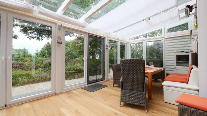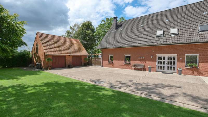 This extensive property extends over almost seven hectares and includes both arable and green areas. The generous areas offer a wide range of possible uses and space for your ideas and projects. The meadow orchard with its old trees offers an abundance of fruit varieties and is a paradise for nature lovers, hobby gardeners and farmers. Directly adjacent to the conservatory of the semi-detached house is an idyllic farm garden, which invites you to grow your own fresh herbs and vegetables. The diverse arable and green areas offer ideal conditions for animal husbandry and farming. Whether you are a hobby farmer or simply want to enjoy nature, you will find plenty of space for your plans here. This offer is completed by a spacious barn, which offers additional storage space and flexible usage options. A double garage with a modern wall box for electric vehicles and a photovoltaic system ensure modern comfort and sustainability. The semi-detached house included in the offer impresses with its generous living space of 242 square meters. Four spacious bedrooms offer plenty of room for the whole family and guests. The spacious living room impresses with its inviting fireplace, which provides cozy warmth on cool evenings. Directly adjacent to the living room is a light-flooded conservatory facing south-west. Here you can enjoy the sun all day long and relax in an oasis of peace. The high-quality fitted kitchen is equipped with modern appliances and leaves nothing to be desired.