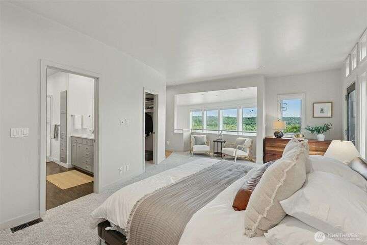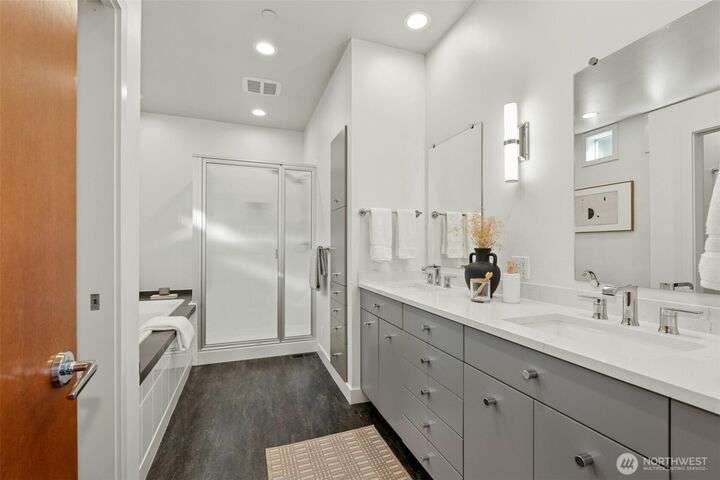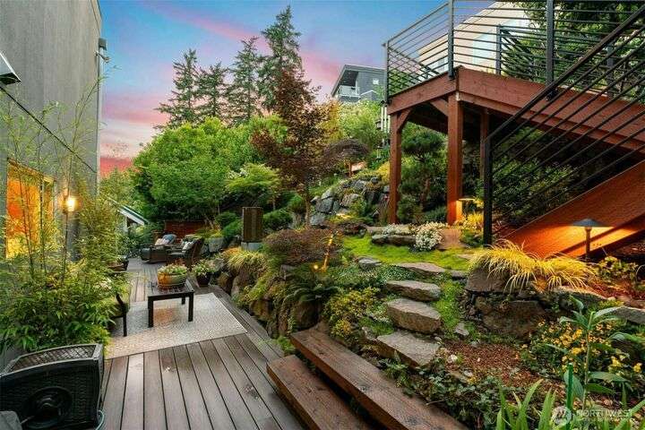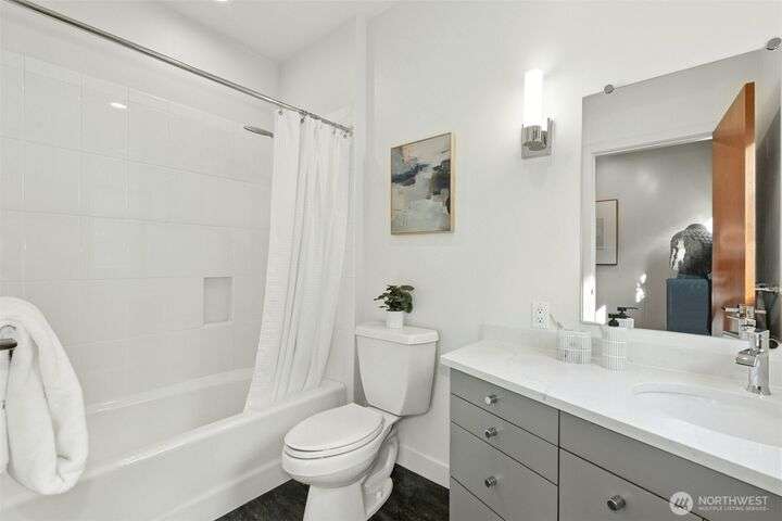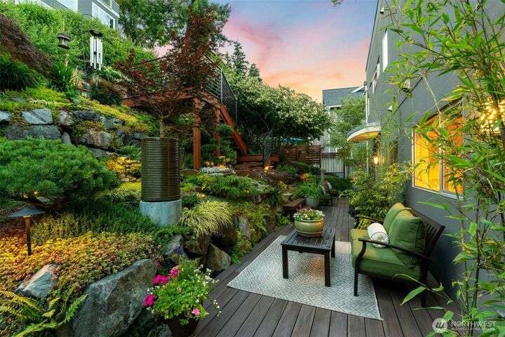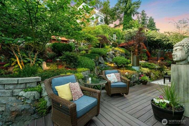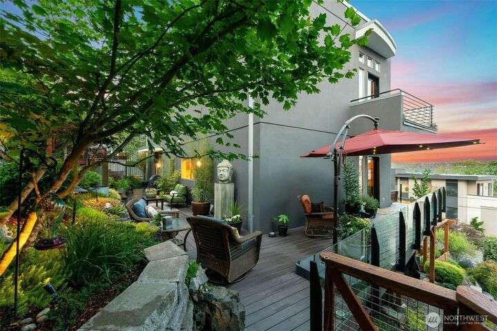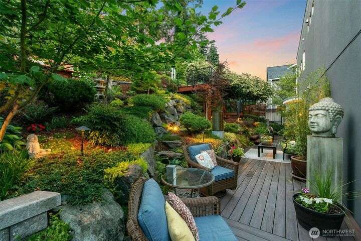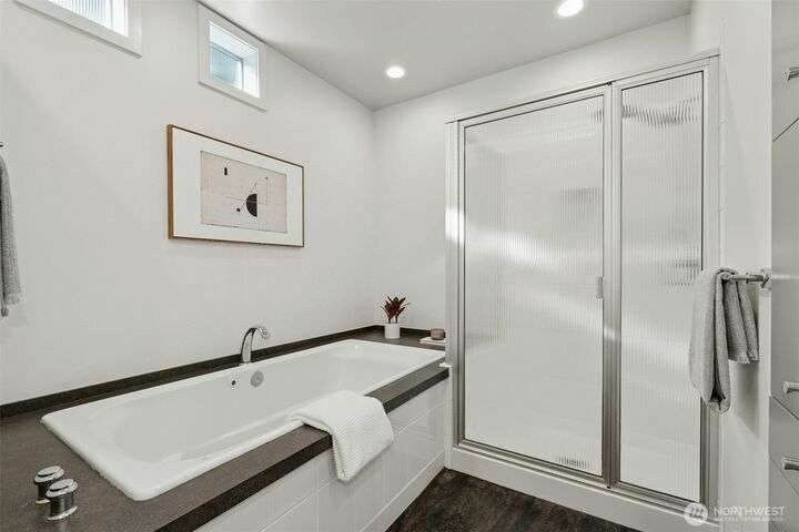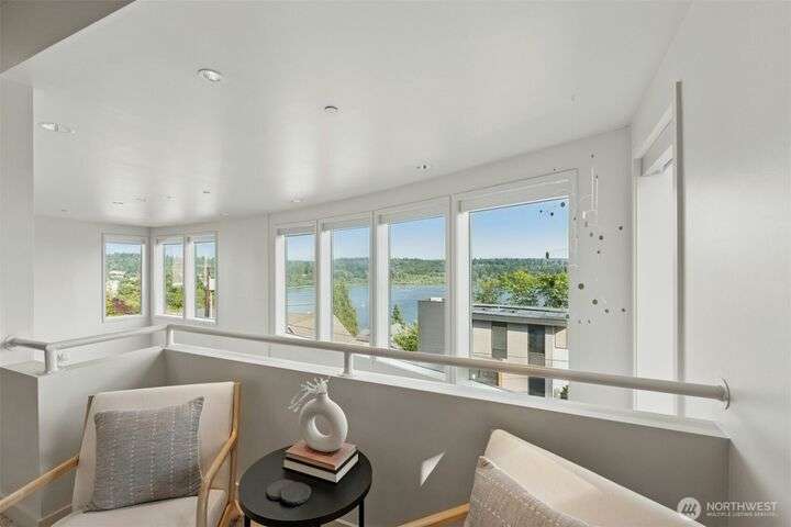 Immaculate contemporary sitting above Juanita Bay w/spectacular views of Mt Rainier, Bellevue skyline, & Lake WA! Built in 1997, this newly updated 3,290 SF, 4 BD, 2.5 BA home feat 2 story living room w/walls of glass framing lake & mtn views. Chef’s kitchen w/new quartz counters, walk-in pantry & wet bar. Elegant dining room flows out onto view deck. Primary BD w/private view balcony, walk-in closet & 5-piece BA. Lower level feat bonus room/gym, 2nd pantry & 2-car garage. Lush professionally landscaped backyard w/deck & built-in seating areas. Updates include new carpet, interior & exterior paint & new BAs. Access to private beach. Just steps from Juanita Village, 5 mins to downtown Kirkland & I-405. Don’t miss this incredible opportunity!