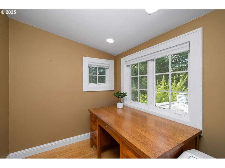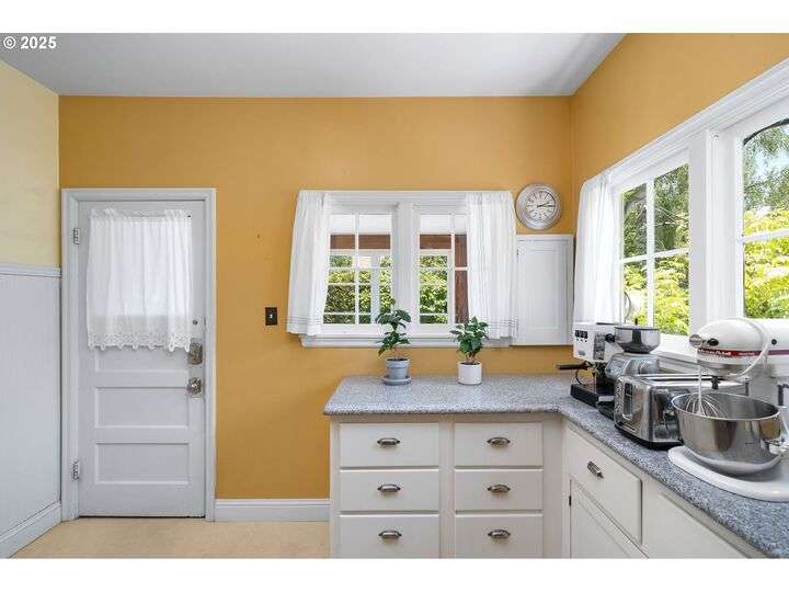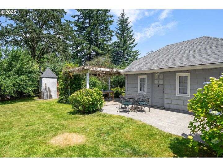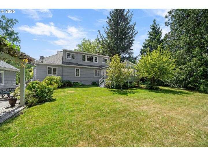 NEW PRICE! OPEN SUNDAY, Nov 2nd from 11-1PM! Tucked away on a quiet street in the heart of Portland’s desirable Hayhurst neighborhood, this charming 1926 home with an expansive 0.42 acre lot offers the perfect blend of comfort, character and outdoor living! Steeped in period charm, the home boasts beautiful crown molding, gleaming oak hardwoods on the main level, and timeless architectural details that reflect its vintage roots. The thoughtfully designed floor plan features 2 main-level bedrooms and inviting living and dining areas that flow seamlessly into a chef’s kitchen complete w/granite counters, SS appliances, and white wood cabinetry. An enclosed sundeck off the living room provides a light-filled space for year-round enjoyment.Upstairs, the private primary suite serves as a true retreat, featuring a walk-in closet, a beautifully appointed ensuite bath & an adjoining office—ideal for remote work or creative space. The lower level includes a cozy family room and an adjoining wine cellar. Step outside and experience the magic of the expansive, private peaceful garden. A dream for gardeners and entertainers alike, the backyard boasts an urban orchard with mature fruit trees (apple, pear, cherry, plum, fig, and quince trees), raised garden beds, a wood-fired pizza oven, fire pit, and both a patio and deck area. Whether hosting summer gatherings or enjoying a quiet morning surrounded by nature, this exceptional outdoor space offers beauty and delightful surprises year-round. Located in a welcoming, walkable, and pet-friendly neighborhood, this home is just minutes from Gabriel Park—an 89-acre hybrid park offering a wide range of recreational amenities incl. the SW Community Center, a skate park, 2 off-leash dog areas, a playground, and scenic walking paths. You'll also enjoy easy access to OHSU and the vibrant town centers of Hillsdale & Multnomah Village. This is Portland living at its best! [Home Energy Score = 2. HES Report at https://rpt.greenbuildingregistry.com/hes/OR10239273]