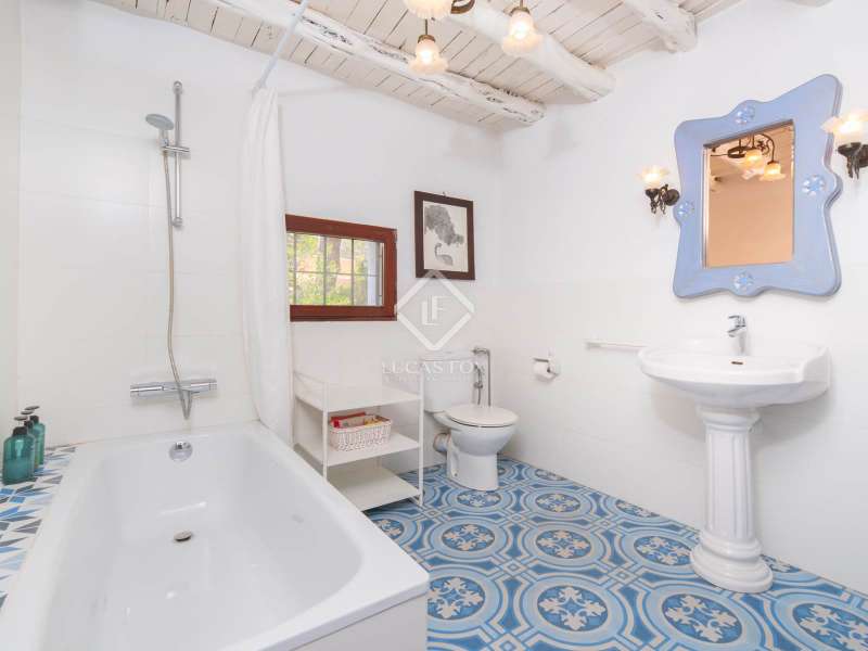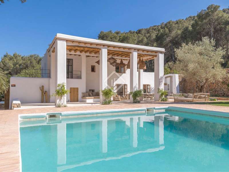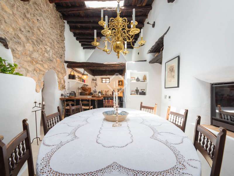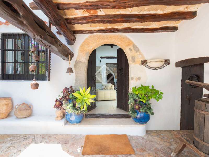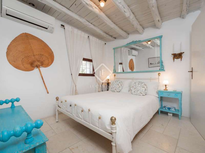 A charming 400-year-old farmhouse boasting numerous original wooden ceilings and features, comprising 2 bedrooms and 2 bathrooms, seamlessly connecting with an annex, offering an additional bedroom and bathroom. The estate offers its own private entrance and parking, distinct from those of the guest house, studio, and annex. The main house, along with the annex, offers 3 bedrooms and three bathrooms. The owners have managed to preserve all the traditional elements of this old finca while modernizing it and adding all the necessary comforts, such as underfloor heating, air conditioning, and a double-sided fireplace. Skylights and high ceilings in the living areas bring in ample natural light. Here you can enjoy al fresco dining under the sheltered outside dining area, complemented by an extra seating space. The guest house is a generously-sized cottage, spanning approximately 85 m², nestled within the grounds of the 400-year-old finca. Inside, you will find a spacious living room adorned with beamed ceilings, featuring a cosy wood-burning stove and fireplace. The bedroom offers comfort with air conditioning and heating, alongside a separate dressing room for added convenience. The fully equipped kitchen includes a dishwasher for effortless meal prep. Step outside onto your private terrace, complete with a barbecue area, perfect for enjoying leisurely outdoor meals. Moreover, the property features a self-contained studio apartment complete with a bathroom and kitchenette. It has climate control with air conditioning/heating for optimal comfort. Step outside onto the outdoor patio, where you will find a charming dining area, perfect for al fresco meals and relaxation. Surrounding the property are tranquil gardens adorned with olive trees, grapevines, and a lemon grove, creating a serene ambiance. You will find yourself conveniently located near the breathtaking beaches of Cala Bassa and Cala Conte, with an array of restaurants and cafés just a short distance away in San Agustin, San Josep, and San Antonio. Please contact us for further information.