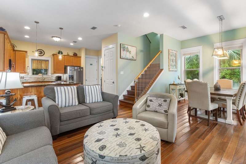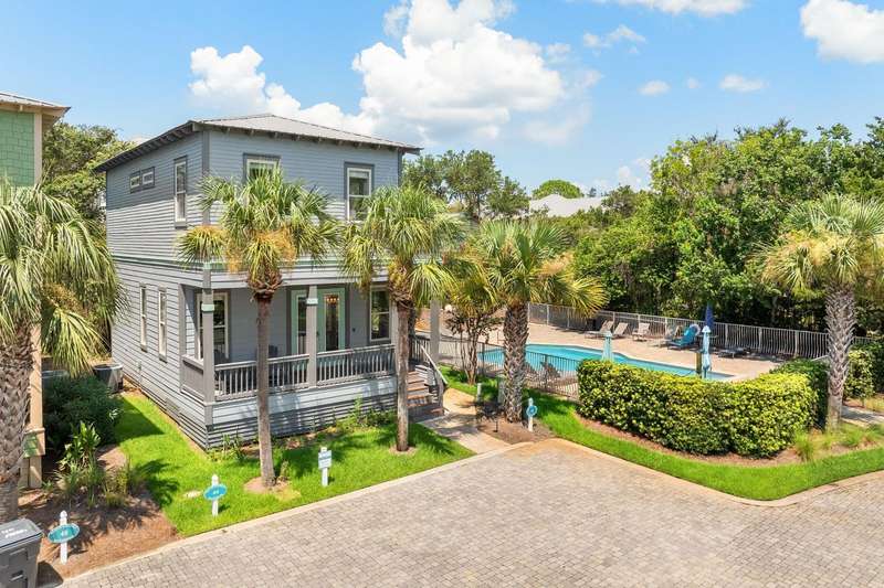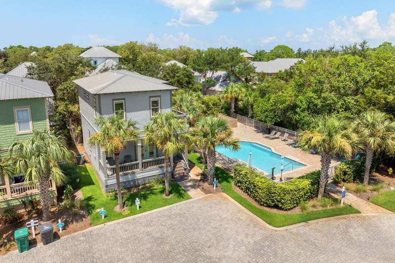 Welcome to the best home in the Beach Nest community! This beautifully updated two-story home offers an ideal pool view and is just a short walk to the beach. Featuring 3 bedrooms and 2.5 baths, the home combines coastal charm with modern upgrades. The master suite includes a private balcony overlooking the pool, while the bathrooms feature elegant travertine tile. Strong rental history makes this property a proven investment opportunity, or the perfect personal getaway. Additional highlights include granite countertops, hardwood flooring, and an 8x12 owner's lockout for beach gear. Conveniently located just minutes from Gulf Place, Shunk Gulley, shopping, and dining along 30A, this truly is one of the finest homes in this sought-after HOA!