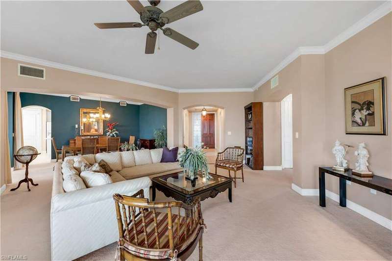 Discover unparalleled luxury in this exquisite 3-bedroom, 2.5-bathroom end-unit residence, nestled within the prestigious Palmas del Sol community at Gulf Harbour Yacht & Country Club. Positioned to capture sweeping vistas of the Caloosahatchee River and the meticulously manicured golf course, this home offers a harmonious blend of sophistication and comfort. Upon entering, you're welcomed into an expansive open floor plan bathed in natural light, with large windows that frame the breathtaking views. Thoughtfully designed for both entertaining and everyday living, the living and dining areas flow seamlessly out to a spacious, screened lanai-an idyllic setting to relax and soak in the tranquil surroundings. The generously sized primary suite offers a peaceful retreat, complete with walk-in closets and a spa-inspired ensuite featuring dual vanities and an oversized walk-in shower. Two additional bedrooms provide versatile space for guests, a home office, or extended family. Additional highlights include hurricane impact windows and sliders, an assigned garage parking spot, and ample storage throughout-creating the ideal balance of comfort and convenience. Residents of Palmas del Sol enjoy exclusive access to a suite of resort-style amenities, including a sparkling pool and spa, clubhouse with billiards, a fitness center, and a scenic boardwalk leading to a riverside terrace-perfect for sunset views. As part of Gulf Harbour Yacht & Country Club, members can indulge in an 18-hole championship golf course, 24,000-square-foot wellness center, tennis courts, and a deep-water marina accommodating vessels up to 100 feet. Located just minutes from the white-sand beaches of Sanibel and Captiva Islands, as well as the vibrant shopping and dining of Fort Myers, this residence offers the epitome of Southwest Florida luxury living. Whether seeking a seasonal escape or a year-round haven, this home presents an exceptional opportunity for the discerning buyer.