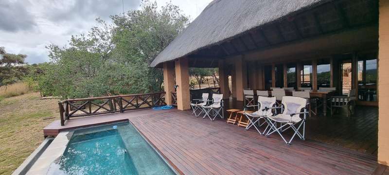 Introducing a truly exceptional opportunity - this is a one 1/7 share in a magnificent property, offering you seven, and sometimes even eight, weeks of allocated time throughout the year. Imagine the thrill of driving through your very own game lodge, in your personal game vehicle, alongside your beloved family and friends. Nestled within a remarkable Big-5 reserve (with lions housed separately in a closed section), this is an experience that promises unforgettable memories. From the comfort of your deck, gaze out over the African bush, admiring the panoramic views while the infinity pool stretches into the distance. Marvel at the remarkable variety of bird species that grace the skies, creating a vibrant and melodious backdrop to your days. Watch in awe as majestic nyala, playful warthogs, and elegant zebras meander past or make their way through your own garden, adding a touch of natural wonder to your everyday life. The house itself boasts a covered deck, perfectly designed for relaxation and entertainment, complete with a built-in braai for those unforgettable outdoor feasts. The open-plan lounge and dining area create a seamless flow, allowing for a harmonious atmosphere within the home. With four en-suite chalets and a game ranger room with its own en-suite bathroom, ample space is provided for privacy and comfort. As the sun sets on each scenic day, gather around the boma with its large firepit, indulging in the enchanting ambiance of the African evenings. Additional conveniences include a staff suite with a dedicated domestic manager, ensuring that your stay is both luxurious and worry-free. Plus, as a bonus, a Toyota Landcruiser is included, providing you with reliable transportation throughout your adventures. Don't miss out on this extraordinary opportunity to own a share in this remarkable property. Embrace the freedom of exploring your own game lodge, relish the natural beauty that surrounds you, and create a lifetime of cherished moments. Act now and embark on an extraordinary journey into the heart of the African wilderness.