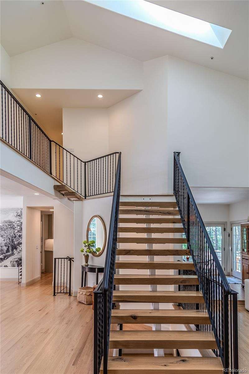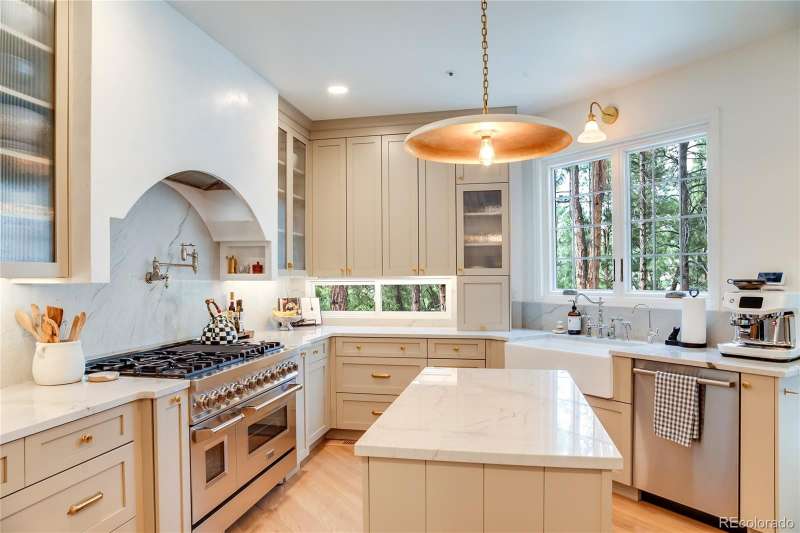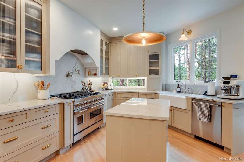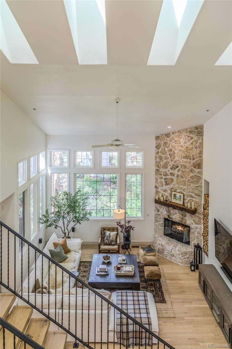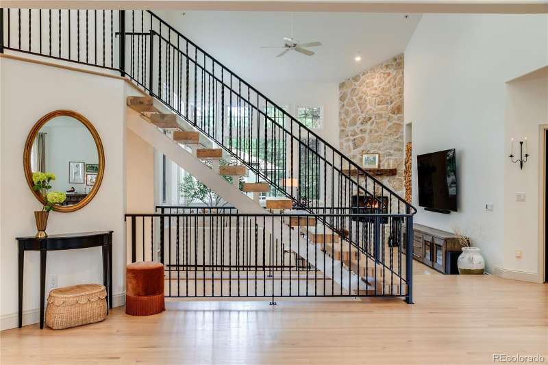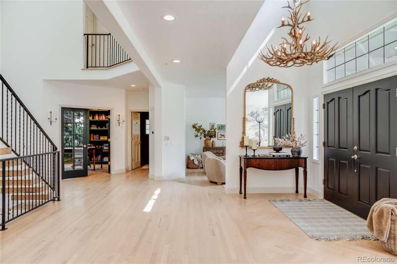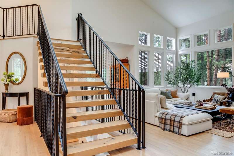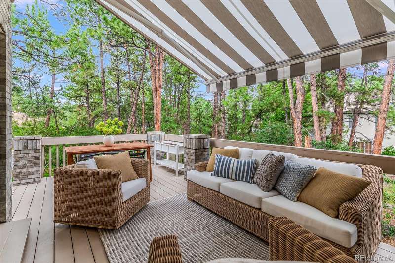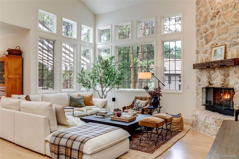 Welcome to 475 Silbrico Way in Castle Pines Villagea fully renovated, custom home built by Golden Design and reimagined top-to-bottom by Halcyon Haus Designs. Nestled on a private half-acre cul-de-sac lot surrounded by towering pines, this two-story residence combines modern sophistication with timeless craftsmanship. Step inside the soaring vaulted entry where natural white oak hardwoods, a rich designer paint palette, and a dramatic row of skylights create a bright, inviting space. The great room features a striking floor-to-ceiling stone fireplace and a showstopping floating staircase with powder-coated iron rails and reclaimed treadsan architectural statement in the heart of the home.The gourmet kitchen has been fully remodeled with top-of-the-line appliances, a cozy eat-in nook, and private access to the deck with a new retractable awning. The main floor also offers a private office, dual staircases, with new hardwoods extending across the main and upper levels.Designed for both comfort and convenience, the home includes a reverse osmosis system, integrated smart-home technology,and Sonos throughout. The lower level offers full in-law living with its own kitchen, radiant floors, and a theater featuring a 120-inch projection screen.Outdoor living is just as refined,with fresh exterior paint,water feature, new circular brick patio with fire pit and multiple private decks.Upstairs, four spacious bedrooms include the serene primary suitea true retreat with marble-surround fireplace, mood lighting, and a spa-inspired ensuite bath.Living in Castle Pines Village means enjoying more than just a homeits a lifestyle. Residents have access to multiple pools,private walking trails, exercise and fitness facilities, playgrounds,and championship golf, along with social memberships and community events-all within the security of a 24-hour manned and gated community. Just minutes away, youll find local favorites like Tonys Market, dining, & boutique shopping.