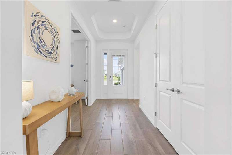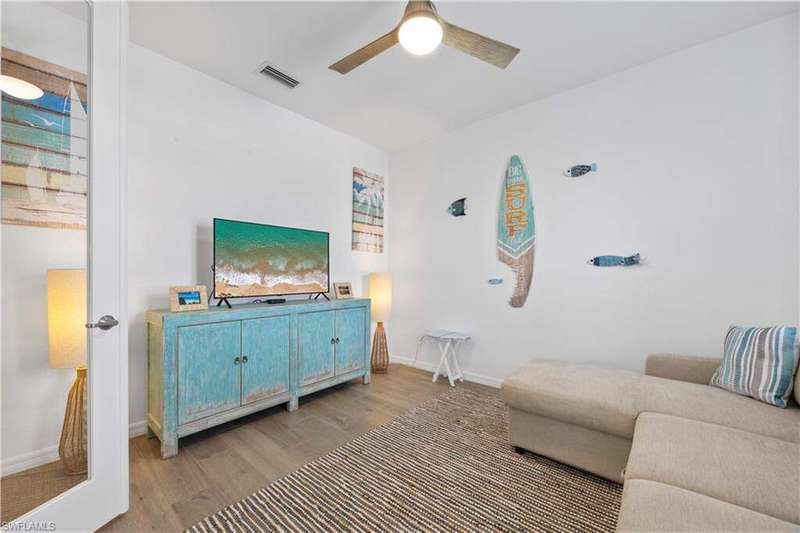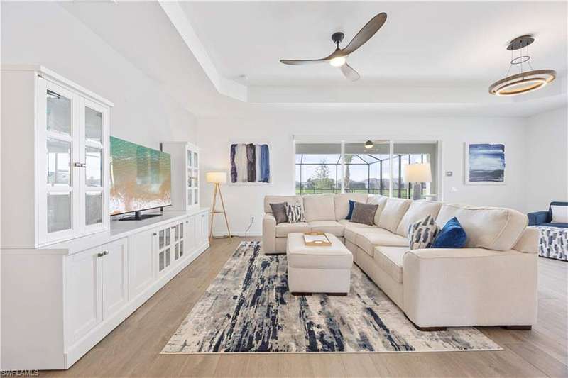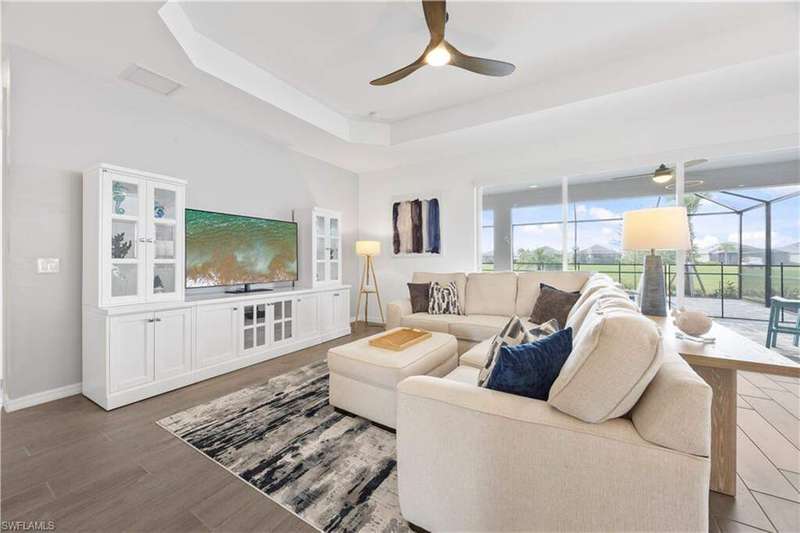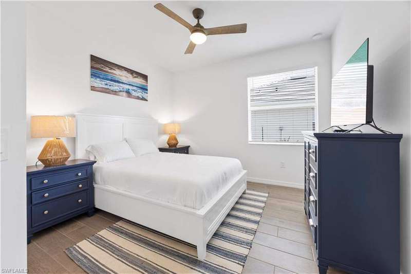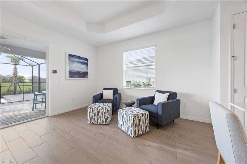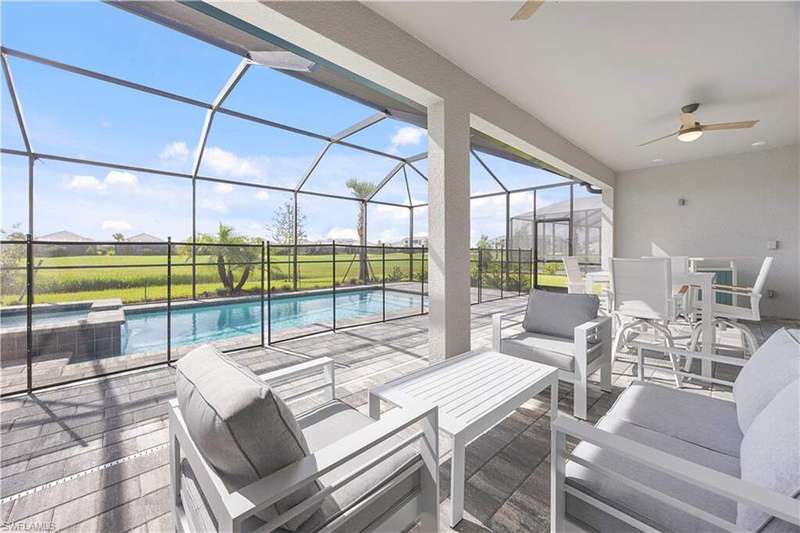 Welcome to your Florida escape in The National Golf & Country Club at Ave Maria. This beautifully furnished single-family home offers 2 bedrooms, 2 full, 1 half bathrooms, a versatile den, and stunning water views with a private screened-in pool and spa. Designed with comfort and style in mind, the interior features coastal-inspired decor, wood-look tile flooring throughout, and an open-concept layout perfect for both relaxation and entertaining. The spacious kitchen flows seamlessly into the main living area, while the den provides the flexibility to work from home or enjoy a quiet reading nook. Step outside to your private oasis-an expansive lanai with a covered seating area, outdoor ceiling fans, and a sparkling pool and spa overlooking the peaceful lake and lush landscaping. Whether you're enjoying morning coffee, hosting happy hour, or soaking up the sun, this space invites you to unwind in total comfort. This rental includes a Social Membership to The National, granting access to the resort-style amenities including the clubhouse, fitness center, spa, resort pool with cabanas, on-site restaurant, and pickleball and tennis courts. Please note: Golf membership is not available with this rental. Ideally located just minutes from downtown Ave Maria, residents and guests enjoy access to charming shops, restaurants, parks, walking trails, and more. Whether you're planning a winter getaway, an extended stay, or a long-term relocation, this home delivers the perfect blend of resort-style living and everyday convenience. Already reserved February & March 2026. Available December 2025, January 2026, April 2026, and May 2026! All rates include pool care, landscaping, Wi-Fi, cable, and water.