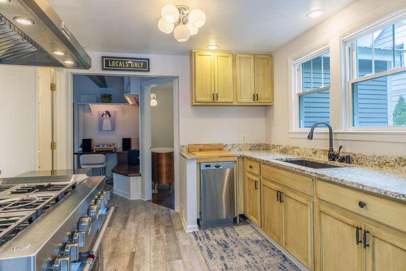 Welcome to Lake Street Living- a beautifully updated vintage cottage in downtown Saugatuck which pairs classic character with modern comforts. This 2-bedroom plus loft, 2-bath home with an oversized screened front porch and professionally landscaped yard featuring expansive outdoor amenities is crafted for yearround relaxation and effortless entertaining. Step inside this storybook cottage and feel immediately at home. Sunlight pours through abundant windows and French doors into a vaulted living area creating a light and airy feeling where the outdoor space truly becomes an extension of the home. The oversized screened front porch invites nearly year-round dining and quiet mornings with coffee. Inside, a versatile loft offers flexible space for a guest or for storage, each bedroom is sized to accommodate either a king or queen bed thus providing options for luxury or space-efficiency, a dedicated media/desk nook supports remote work or hobbies without consuming primary living areas, while two recently updated full baths serve residents and guests with ease. The focal point of the kitchen is a showstopper: a professional-grade six-burner range with a griddle and dual ovens set against a custom Pewabic Pottery tiled-wall, providing both function and artistry. French doors open from the back of the home onto a large-scale deck which flows to a custom outdoor kitchen (2025), large stone patio, and a sunken hot tub - perfect for al fresco meals and evenings with family and friends. A meandering stone walkway leads to a large stone propane fire pit and additional patio, and a games area including a bocce ball court and putting green, all set within lush plantings and mature landscaping which backs to a ridge of beautiful trees. A well-tended lawn with an underground sprinkler system completes this private, country club like setting, completely updated with new landscaping in 2022. Lake Street Living is located just a short walk from downtown Saugatuck's art galleries, boutiques, SCA Center for the Arts, Farmer's Market and restaurants, offering an ideal balance of convenience and tranquility. Enjoy quick access to Saugatuck's famous Oval Beach and walk to the charming town of Douglas for more dining, shops, and seasonal events. The neighborhood's quiet vibe makes Lake Street Living a perfect primary residence, weekend retreat, or turnkey rental. Investment Short-Term Rental (STR) Income Opportunity: New owners can secure their own short-term-rental license without any waitlist or caps, because Lake Street Living is located in the highly desirable, uncapped rental license zone (R-2), offering extraordinary potential for short-term rental income.
