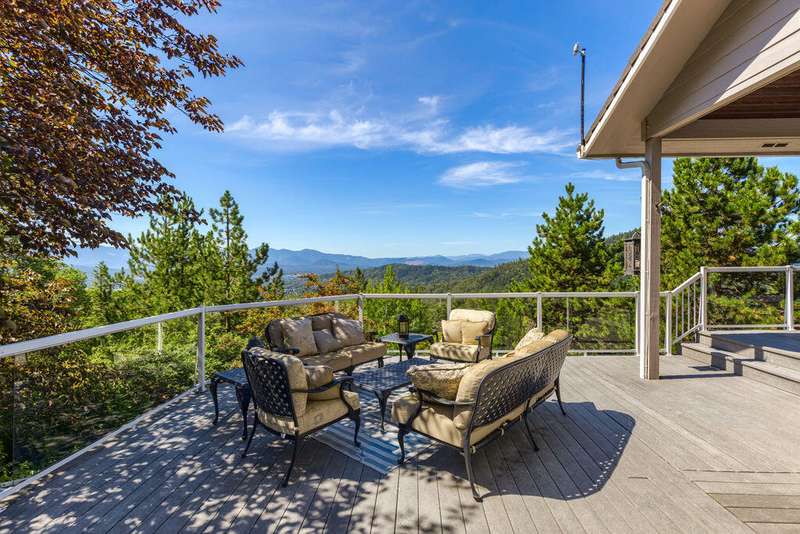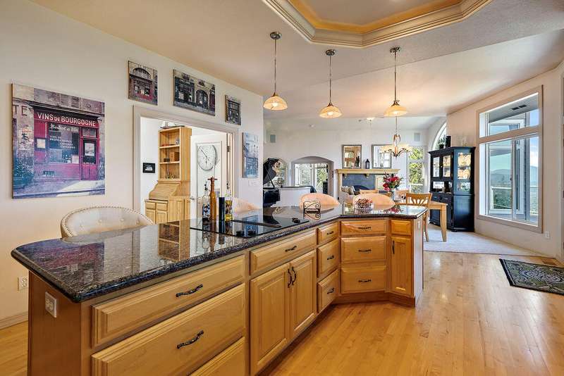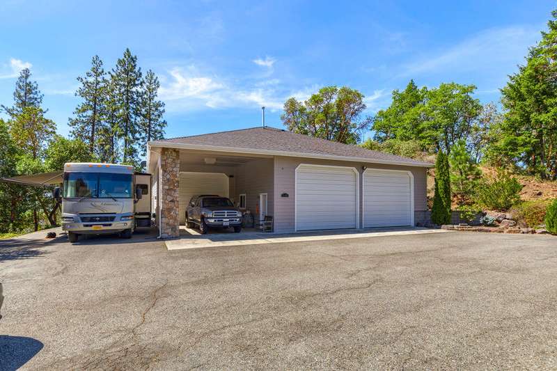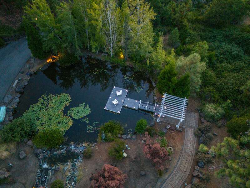 Welcome to Granite Hills Estate. Truly exceptional property. 20 Acres back to BLM & County land, Paved driveway w/gated entry, water feature & year-round spring fed pond w/a dock & Bass fishing. Gorgeous landscaping w/ lighted pathways. 4 Bdrm, 4 bath, Office/Library w/built-ins, 6400 SQ Ft, 3 Car Garage w/Portico. Grand entry, lg vaulted ceilings, floor to ceiling windows to take in the stunning views of Mts & City lights. Lg kitchen w/island, main floor primary suite w/spa like bath, door to private deck w/hot tub w/skylight & views. Good size bdrms, lg pantry. Downstairs w/10' ceilings, French Doors to covered patios, lg family rm w/fireplace, lg bar & entertaining area w/mini kitchen, Guest quarters w/kitchenette, bedroom, living rm & door to patio. Infinity Pebble Tec heated pool, lg pavers patio w/Gazebo & fire torches. 5600 SQ FT detached Shop w/RV storage w/dump, water & electricity, office space, ½ bath, 4 Car carport. Country living close to town!