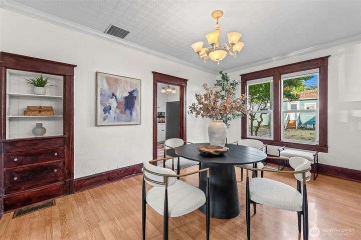 Close distance to shopping, restaurants, and freeway access! This charming Victorian home features a covered front porch with classic curb appeal and tons of character throughout. Inside, enjoy high ceilings, great natural light, and a huge dining room perfect for gatherings. Fir hardwoods shine upstairs, and the large full bathroom includes a classic clawfoot tub. Big bedrooms offer comfortable living space, and the level fully fenced backyard is ideal for outdoor fun. A two-car detached garage adds convenience to this unique property.
