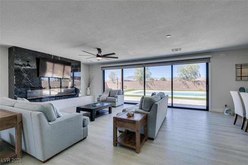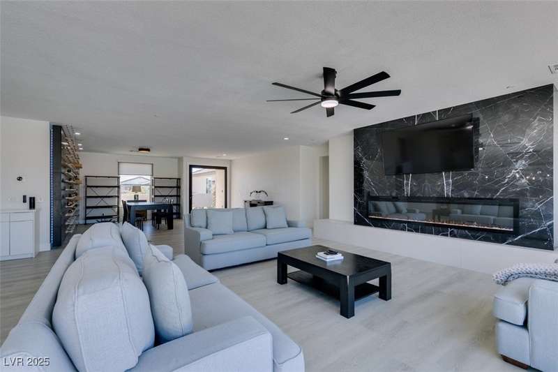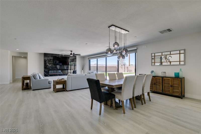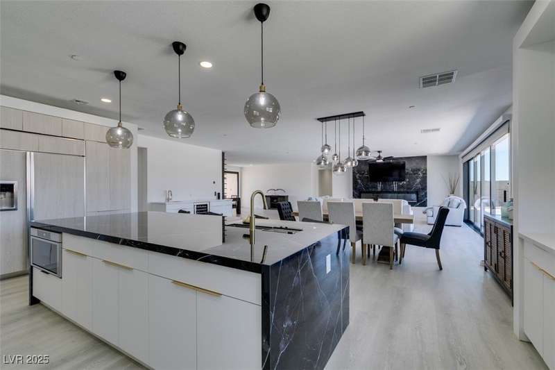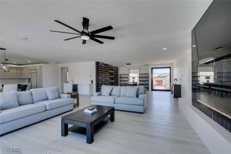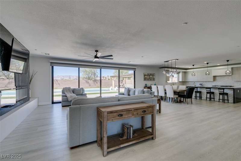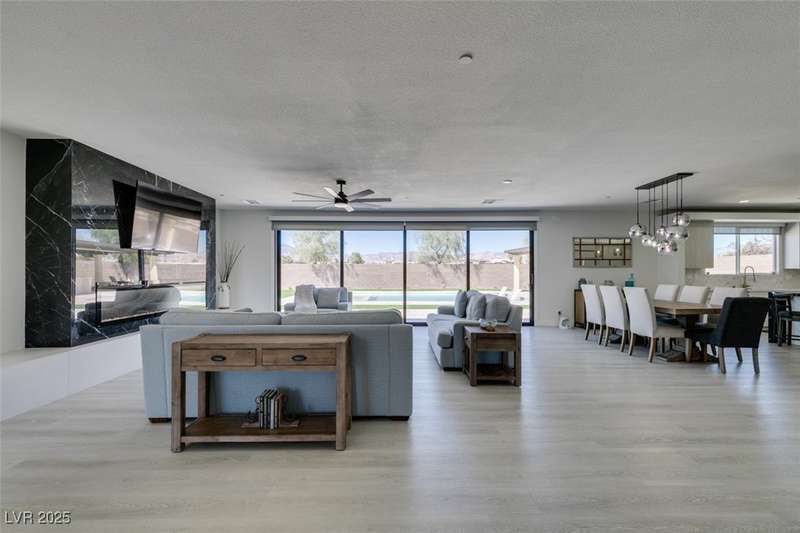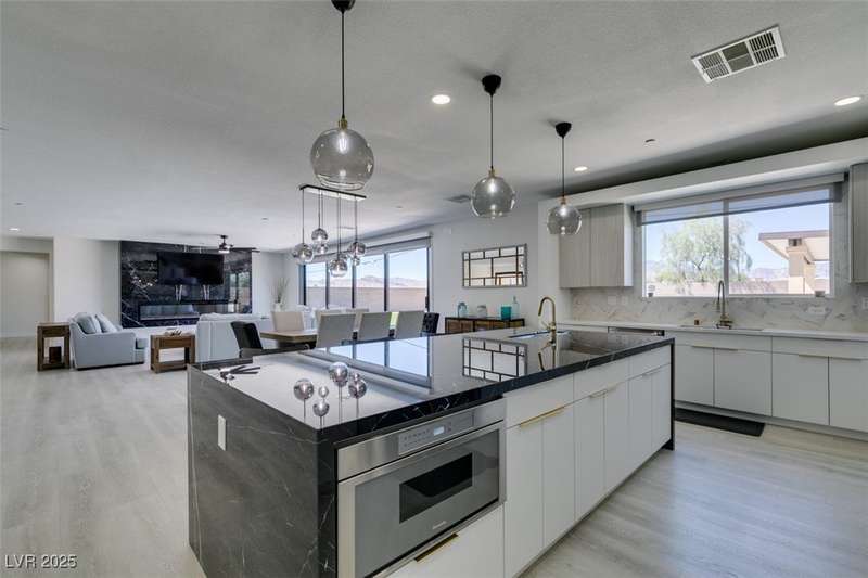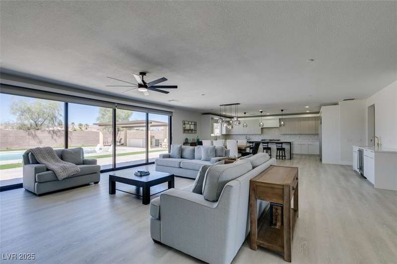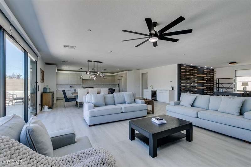 Modern single-story home • Fully upgraded • Heated pool & spa • Covered outdoor kitchen • Paid-off solar • Private guest suite • 3-car garage • Custom courtyard. Sitting on nearly half an acre on a cul-de-sac, this move-in ready residence blends high-end finishes with functional design. The open layout showcases a floor-to-ceiling 20-ft sliding glass door that connects indoor and outdoor living. The chef’s kitchen features built-in appliances, a waterfall island with prep sink, hidden pantry, and custom wine rack wall in the dining area. A separate private guest suite includes its own entrance, kitchenette, laundry area, bedroom with walk-in closet, and full bath—ideal for multigenerational living or guests. The backyard offers a heated pool and spa, covered outdoor kitchen, and basketball pad for year-round enjoyment. Energy-efficient living with paid-off solar panels, custom entry door, and modern finishes throughout.