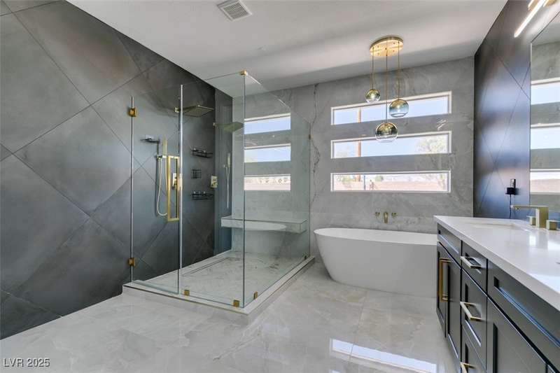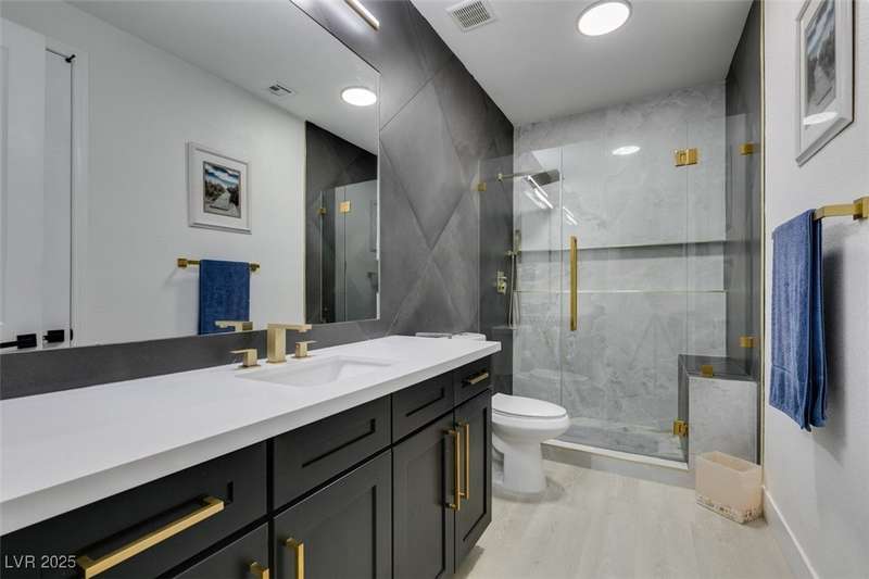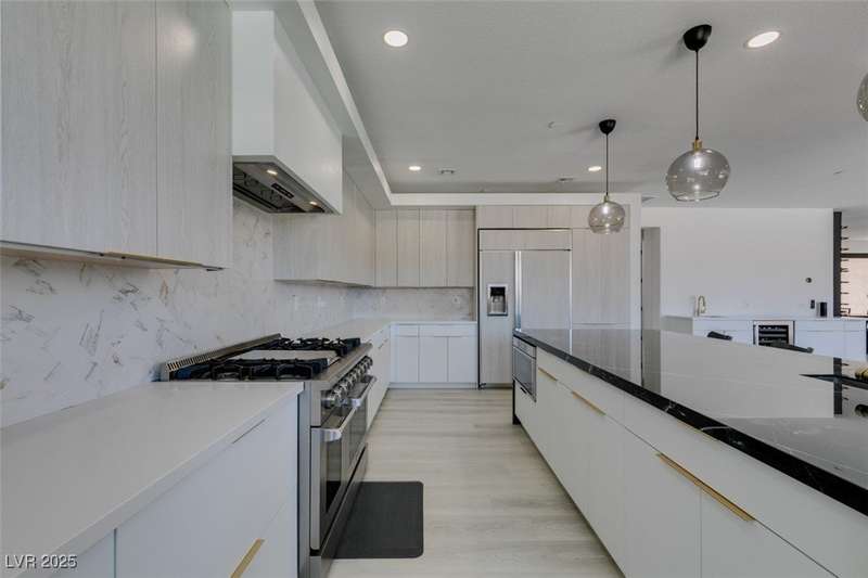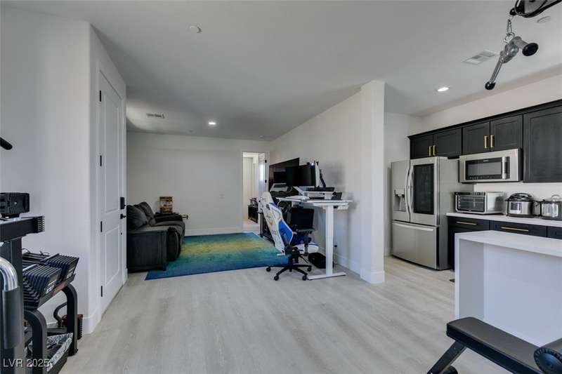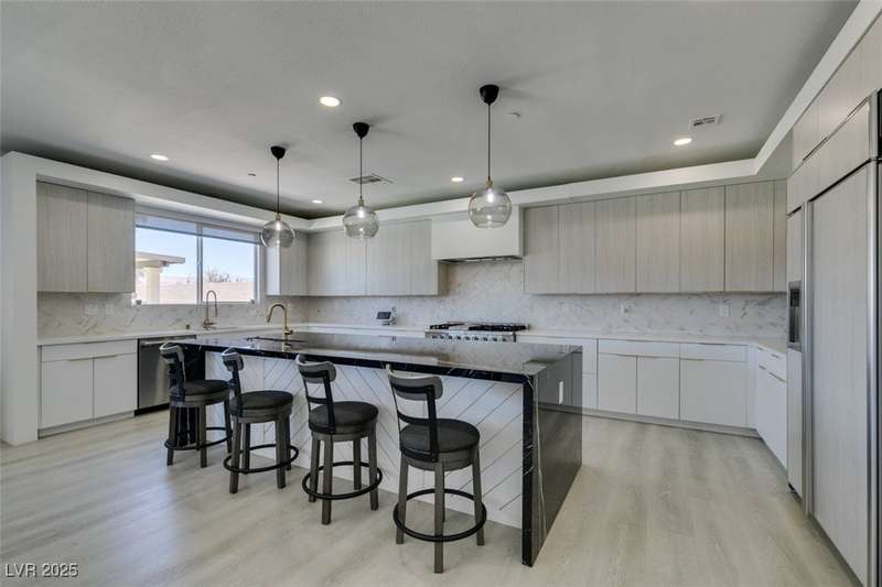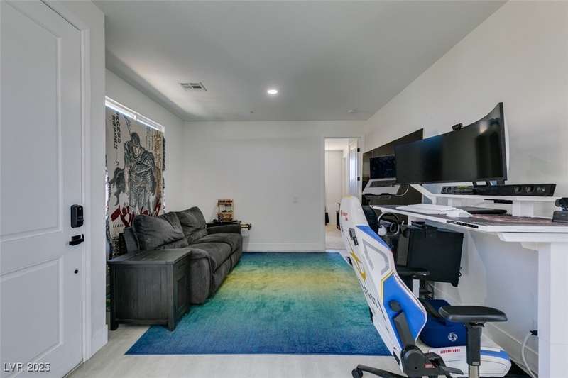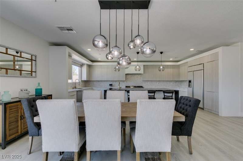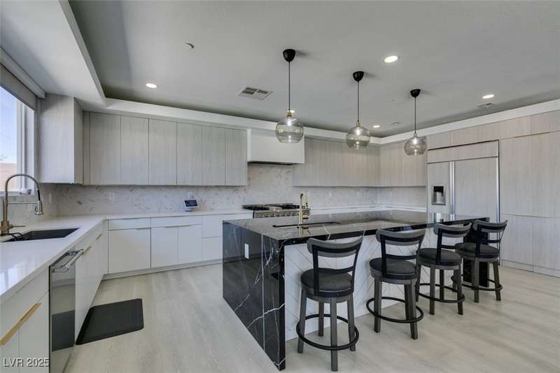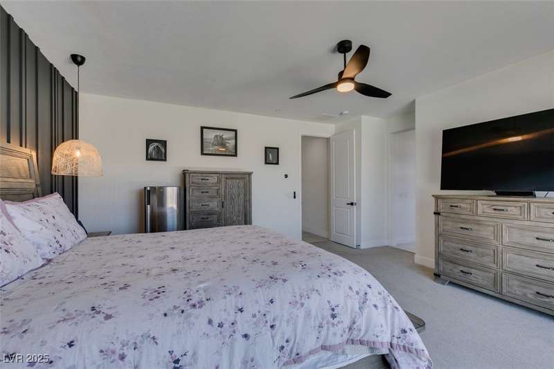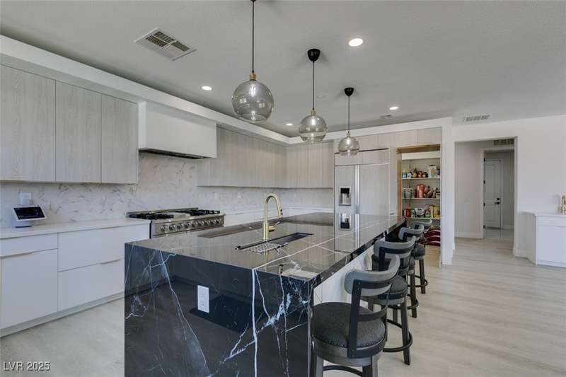 Modern single-story home • Fully upgraded • Heated pool & spa • Covered outdoor kitchen • Paid-off solar • Private guest suite • 3-car garage • Custom courtyard. Sitting on nearly half an acre on a cul-de-sac, this move-in ready residence blends high-end finishes with functional design. The open layout showcases a floor-to-ceiling 20-ft sliding glass door that connects indoor and outdoor living. The chef’s kitchen features built-in appliances, a waterfall island with prep sink, hidden pantry, and custom wine rack wall in the dining area. A separate private guest suite includes its own entrance, kitchenette, laundry area, bedroom with walk-in closet, and full bath—ideal for multigenerational living or guests. The backyard offers a heated pool and spa, covered outdoor kitchen, and basketball pad for year-round enjoyment. Energy-efficient living with paid-off solar panels, custom entry door, and modern finishes throughout.