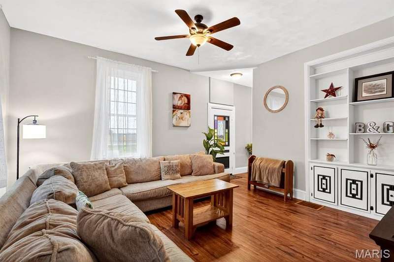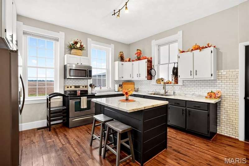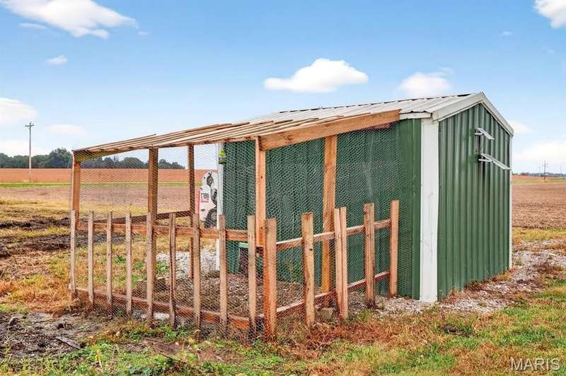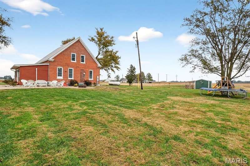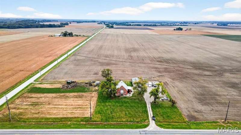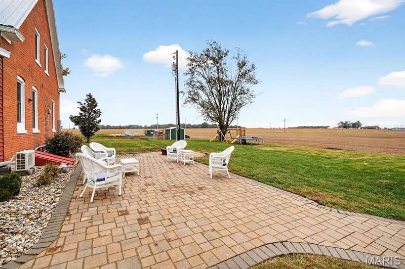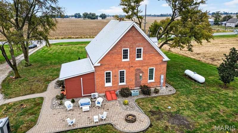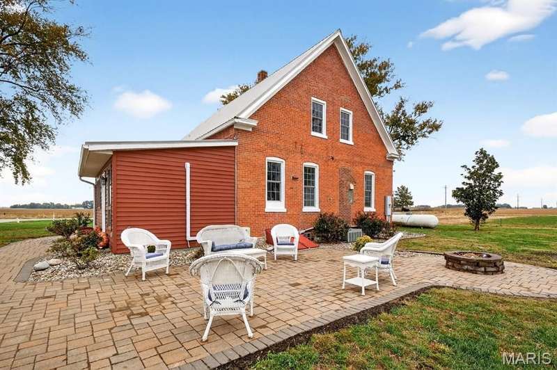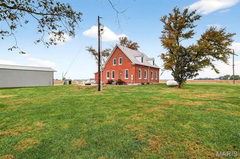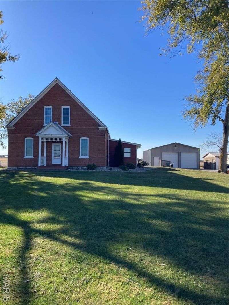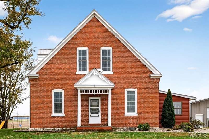 Step into timeless character and modern comfort with this beautifully maintained 2-story brick farmhouse. Featuring 10-foot ceilings, a newly updated heated/cooled sunroom, and spacious living room with built-in bookshelves. The main level offers a huge eat-in kitchen complete with stainless steel appliances, pantry, and center island. Also is 2 main level bedrooms, a full bath, & laundry room. Upstairs you'll find 2 large bedrooms with exposed brick walls adding rustic charm. There's also potential to easily add an extra bathroom, giving room to grow. Abundant closet & storage space. Outside you'll find a landscaped paver patio, Newer 28x46 pole barn, 10x10 doors w/openers. 23x21 shed. Both with concrete floors & electric. New 10x10 concrete floor chicken coop! Don't miss out!