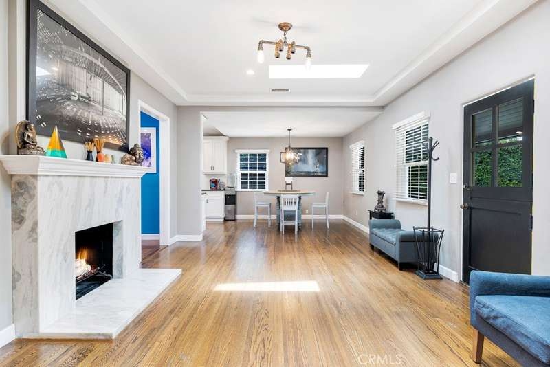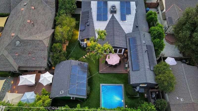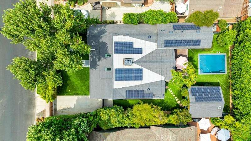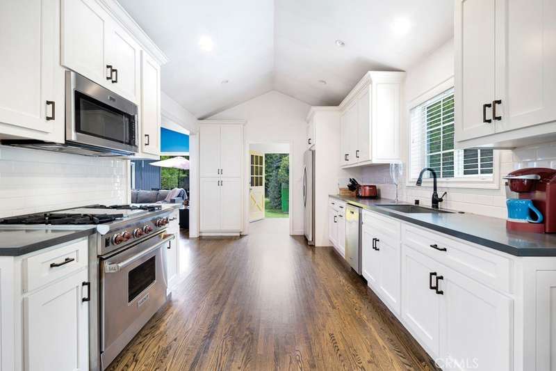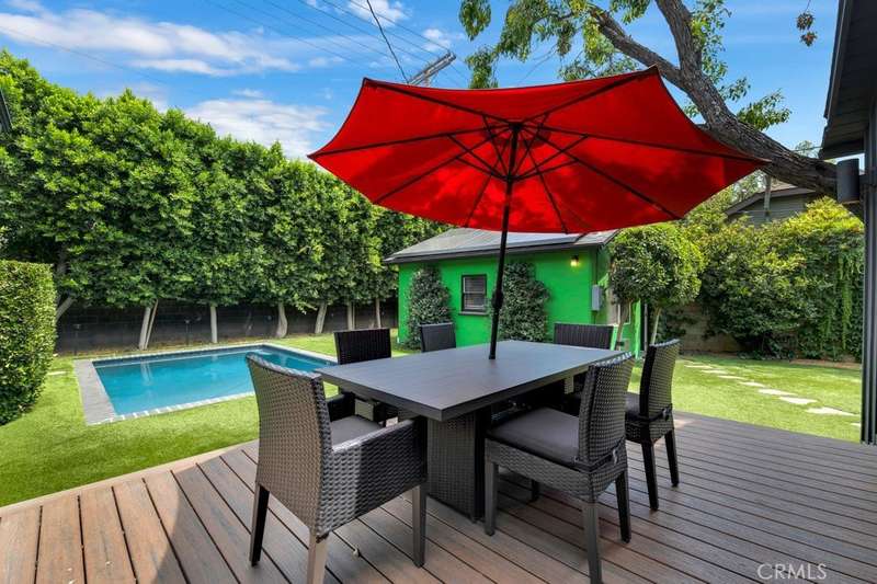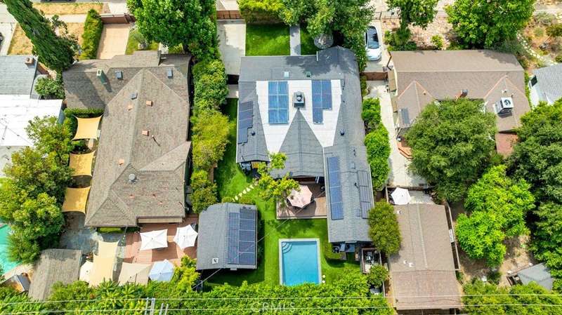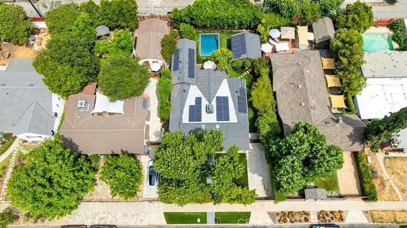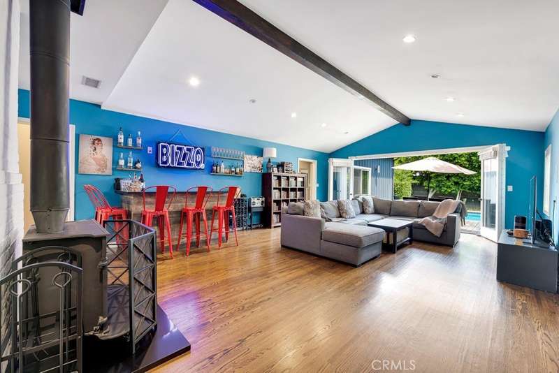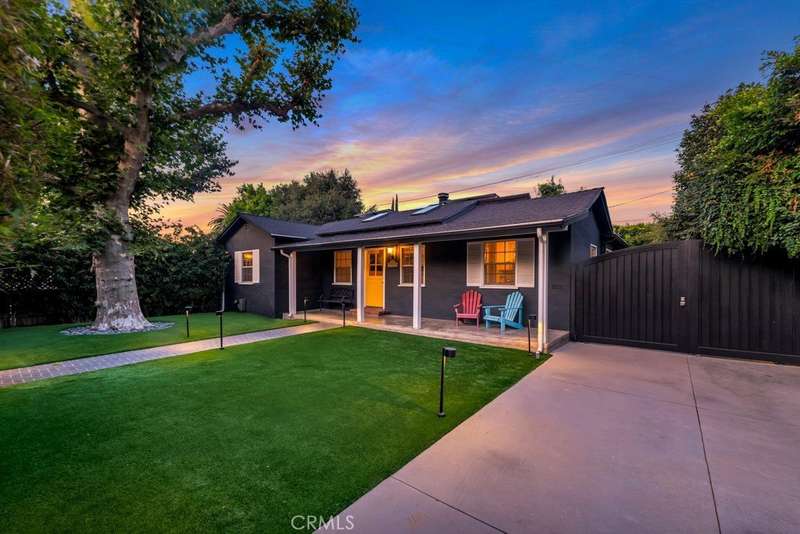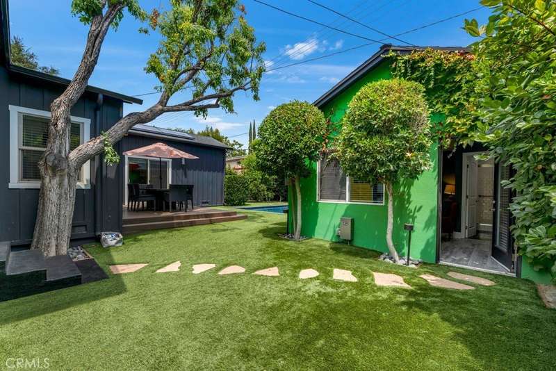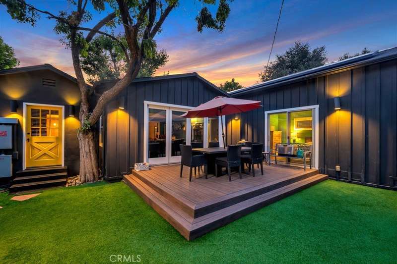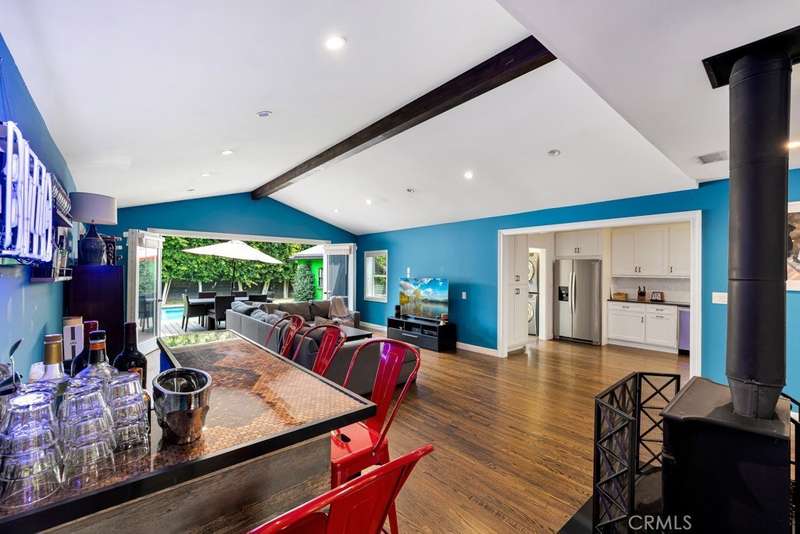 This stunningly renovated and expanded 3-bedroom, 2-bathroom home is a true masterpiece! With its soaring vaulted ceilings and open, airy layout, this residence showcases top-notch finishes and exceptional indoor/outdoor living. A charming Dutch door welcomes you into the cozy formal living room, featuring a sophisticated stone fireplace as its centerpiece. The seamless flow of the open-concept design leads you effortlessly into the dining area, which is beautifully highlighted by a striking architectural light fixture. The contemporary kitchen is a chef's dream, complete with custom cabinetry, quartz countertops, a Wolf range, and high-end stainless steel appliances. The newly designed master suite is a luxurious retreat, featuring a spacious walk-through closet and an ensuite bathroom adorned with premium finishes such as Waterworks tile, bespoke cabinetry, and elegant European fixtures. The airy great room is accentuated by large modern bi-fold doors that open up completely to reveal a brand-new deck and an exquisitely landscaped backyard. The outdoor space boasts a heated saltwater pool and a Studio ADU equipped with its own full kitchen. Additionally, the property is outfitted with fully paid-off Tesla solar panels and two Tesla batteries, enhancing its energy efficiency. This incredible opportunity is not to be missed!