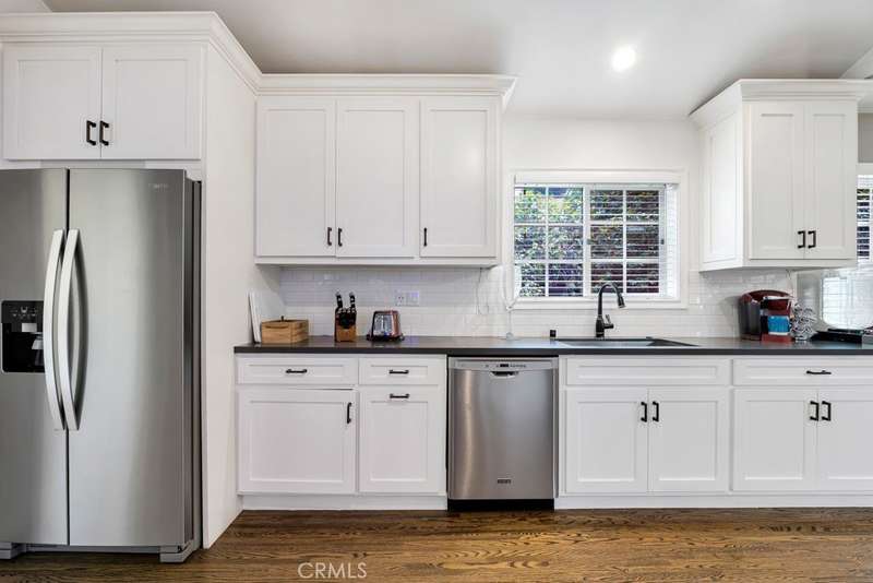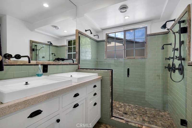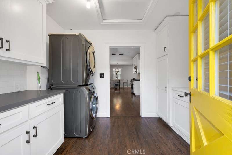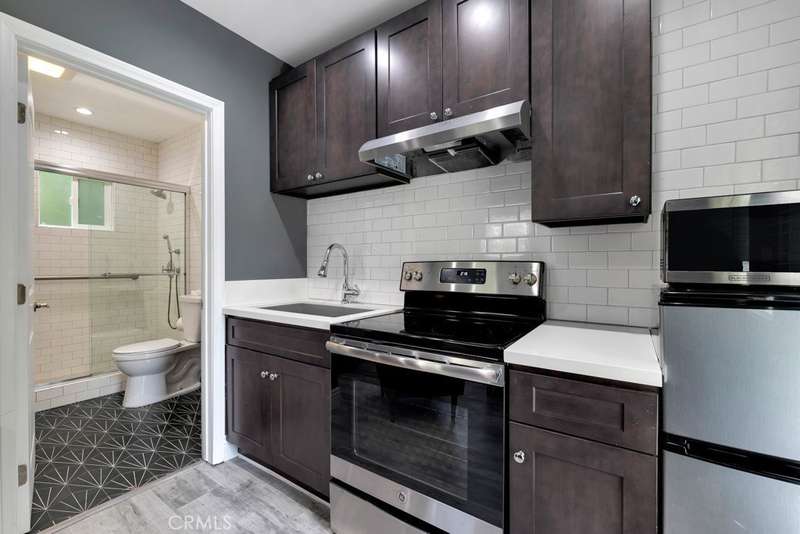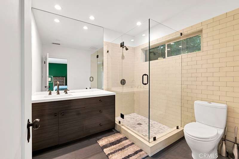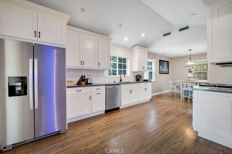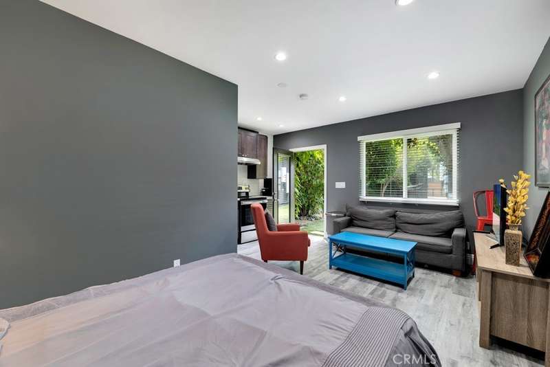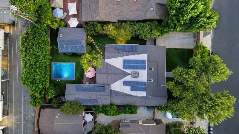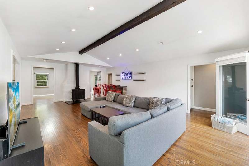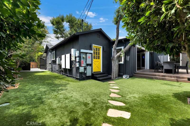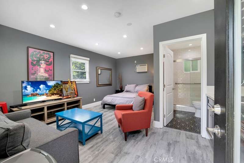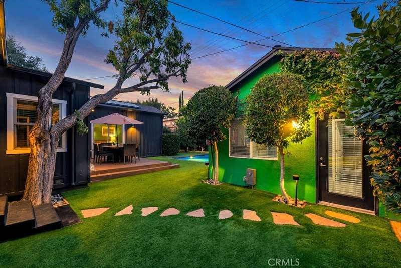 This stunningly renovated and expanded 3-bedroom, 2-bathroom home is a true masterpiece! With its soaring vaulted ceilings and open, airy layout, this residence showcases top-notch finishes and exceptional indoor/outdoor living. A charming Dutch door welcomes you into the cozy formal living room, featuring a sophisticated stone fireplace as its centerpiece. The seamless flow of the open-concept design leads you effortlessly into the dining area, which is beautifully highlighted by a striking architectural light fixture. The contemporary kitchen is a chef's dream, complete with custom cabinetry, quartz countertops, a Wolf range, and high-end stainless steel appliances. The newly designed master suite is a luxurious retreat, featuring a spacious walk-through closet and an ensuite bathroom adorned with premium finishes such as Waterworks tile, bespoke cabinetry, and elegant European fixtures. The airy great room is accentuated by large modern bi-fold doors that open up completely to reveal a brand-new deck and an exquisitely landscaped backyard. The outdoor space boasts a heated saltwater pool and a Studio ADU equipped with its own full kitchen. Additionally, the property is outfitted with fully paid-off Tesla solar panels and two Tesla batteries, enhancing its energy efficiency. This incredible opportunity is not to be missed!