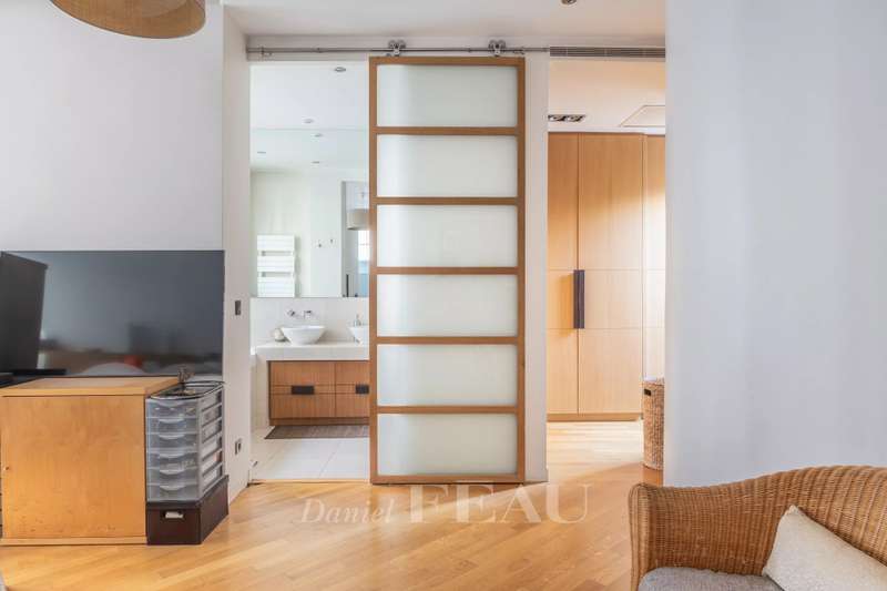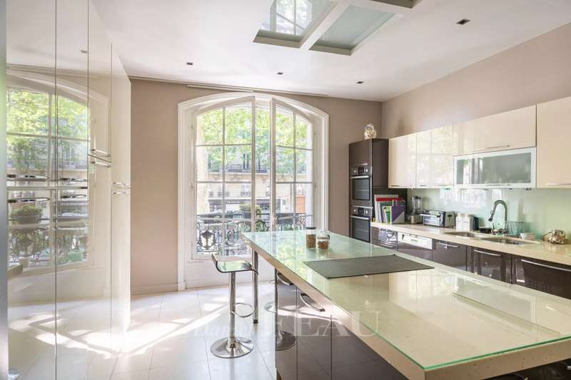 Theatre des Sablons neigbourhood. This south-facing apartment bathed in sunshine and benefiting from an optimised floor plan is on the 1st floor of a fine early 20th century building. Revamped by an internationally-renowned interior decorator, it includes a bright 55 sqm double living/reception room with a fireplace, a kitchen with a central island and dining facilities, an elegant 37 sqm master suite with a bathroom and dressing room, two further bedrooms with a bathroom, a 4th bedroom with a shower room, and a utility room. The bedrooms overlook a peaceful garden, are air conditioned and benefit from fitted storage space. With a basement cellar and a near 7 sqm top-floor maid’s bedroom at extra cost. Pasteur catchment area.