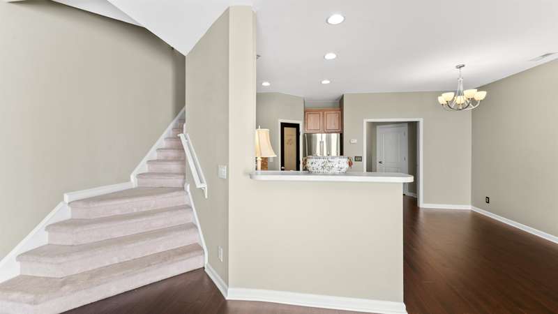 Welcome to Mackintosh on the Lake! MOTIVATED SELLERS! This stunning two-story townhome features an open floor plan, perfect for modern living and entertaining. Step inside to discover beautiful bamboo flooring that flows throughout the main level, complemented by fresh, new paint for a move-in-ready feel. The spacious kitchen boasts a large pantry and ample counter space. Upstairs, the expansive primary suite is a true retreat with elegant tray ceilings, a generous walk-in closet, and a spa-like ensuite. With a total of 3 bedrooms and 2.5 baths, there's room for everyone. Enjoy outdoor living on the charming covered front porch or relax on the back patio. The attached garage offers convenient parking and extra storage. This home is situated in a community rich with amenities, including miles of walking sidewalks, a pool, fitness center, and multiple playgrounds. Experience a lifestyle of comfort and convenience in the heart of Mackintosh Lake!