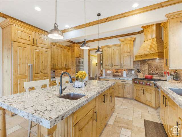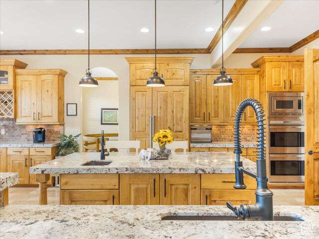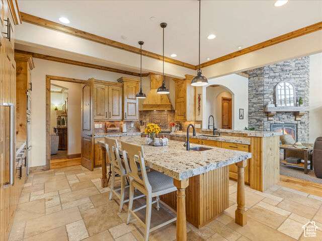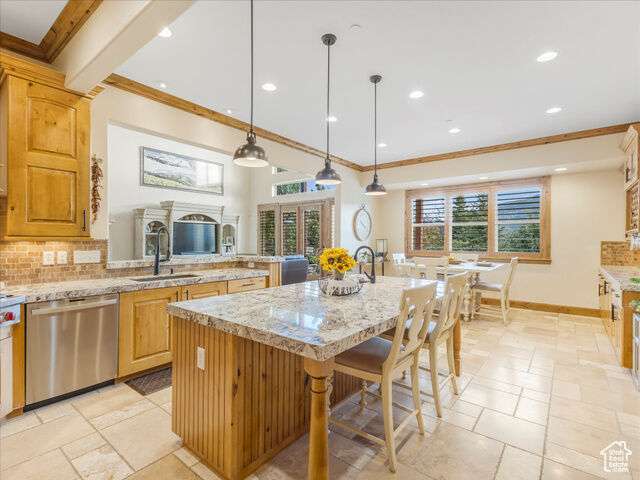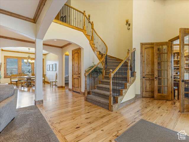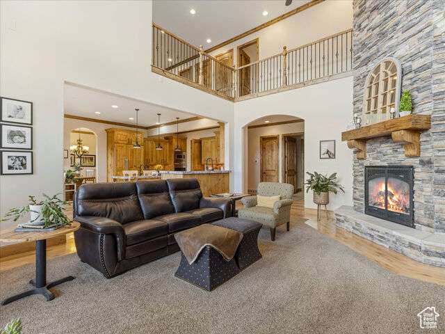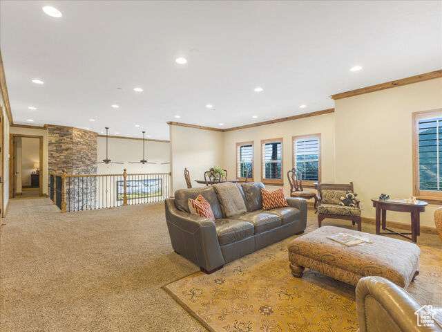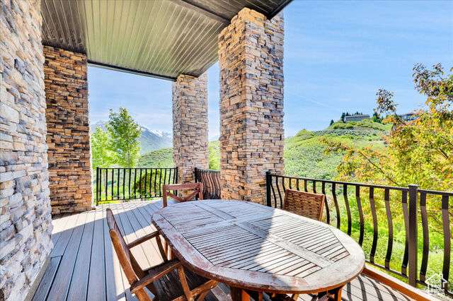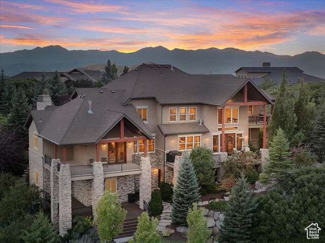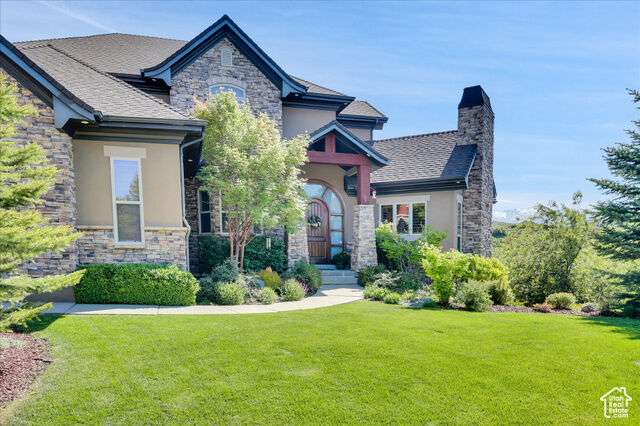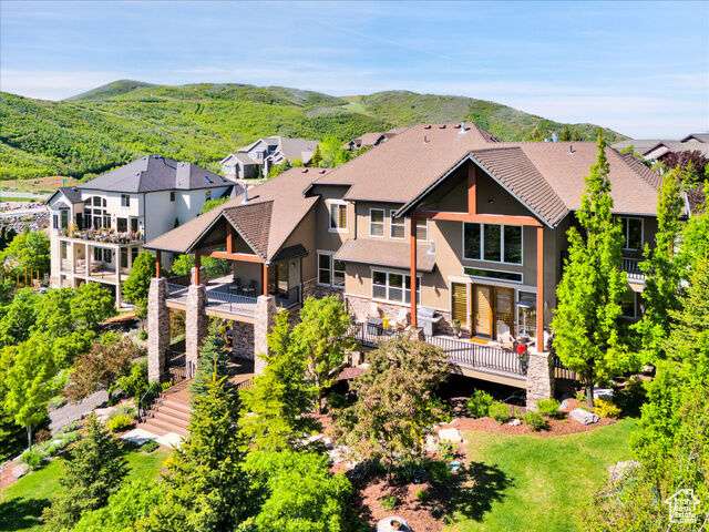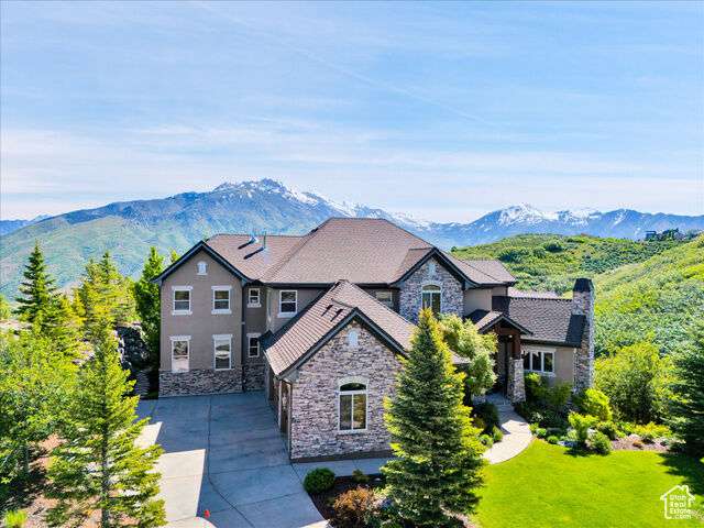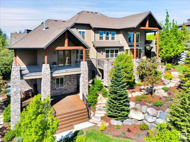Nestled in the heart of SunCrest, this 5-bedroom, 4-bathroom home stretches across 8,499 square feet of mountain living on a .76-acre lot. You couldn't build this kind of home, on this kind of lot, for this kind of price in today's market. Not even 20 years old, it captures everything SunCrest is known for: fresh air, miles of hiking and biking trails, wide-open space, and views that make you stop mid-sentence. Four decks wrap around the exterior, offering front-row seats Lone Peak, Timpanogos sunrises and twinkling city lights at night. And with a brand-new roof just installed, you get peace of mind to match all that curb appeal. Inside, the main level is all about ease and elegance. It offers true main-floor living with two full bedroom suites. The primary retreat includes a private deck, spa-like ensuite with a walk-in shower, jetted tub, dual vanities, and a roomy walk-in closet. On the opposite side of the main level, a second bedroom also features its own ensuite. Perfect for guests, multigenerational living, or long-stay visitors. The kitchen, dining, and family room flow together seamlessly, making it ideal for both daily life and entertaining. Real hardwood floors, tall ceilings, and windows that frame mountain views add warmth and light throughout. Add in a formal living room, an office with fireplace, and main-floor laundry, and you've got the ideal daily setup. Details like plantation shutters and crown molding add charm and polish throughout. Upstairs, you'll find three additional bedrooms, two bathrooms, a second family room, a game area, and a second laundry room so there's no hauling baskets between floors. The basement is unfinished but well on its way. It features 9- to 11-foot 6-inch ceilings, framing in place, and roughed-in plumbing, and may even qualify as partially finished. The original plans (included) call for 2 full bathrooms, 2 bedrooms, a theater room, laundry, and a wide open family room. Whether you follow the original layout or bring your own vision to life, you'll appreciate the full walkout design and the wraparound deck that steps down to the lower level grassed yard. SunCrest continues to be one of Utah's best-kept secrets, and this home reflects the very best of it. The HOA includes internet, cable, a community clubhouse with a pool and gym, and events that make the neighborhood feel like home. A home this size, on a lot this rare, in a setting this special? That's not just a listing. It's a rare find that actually lives up to the phrase.
