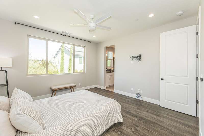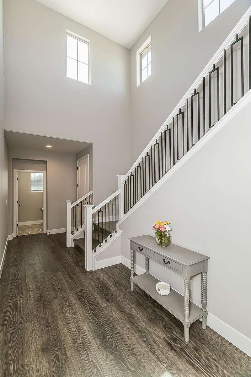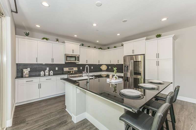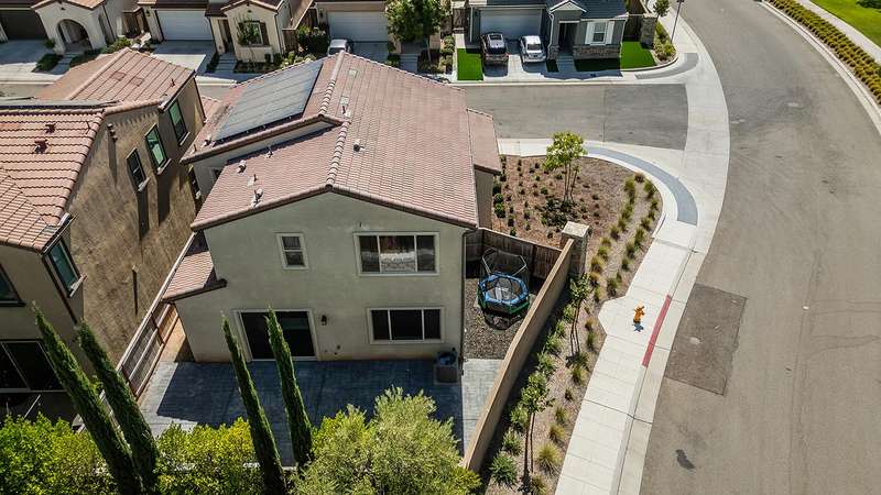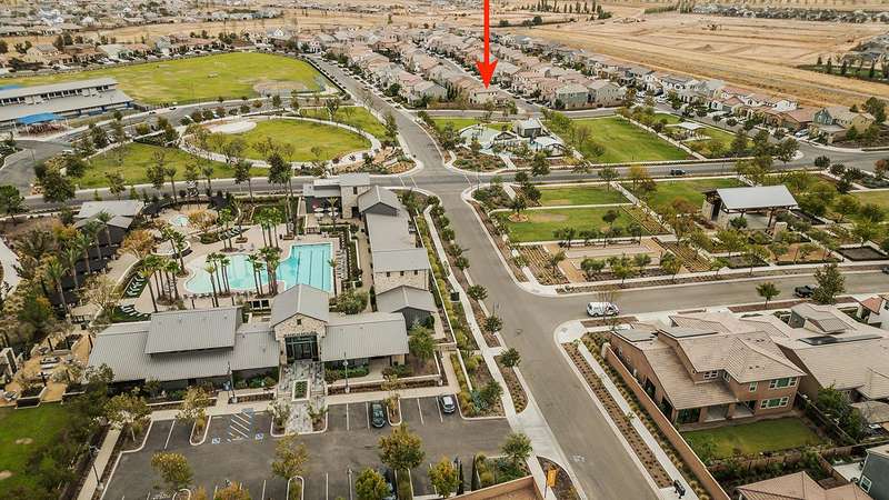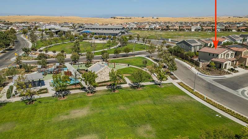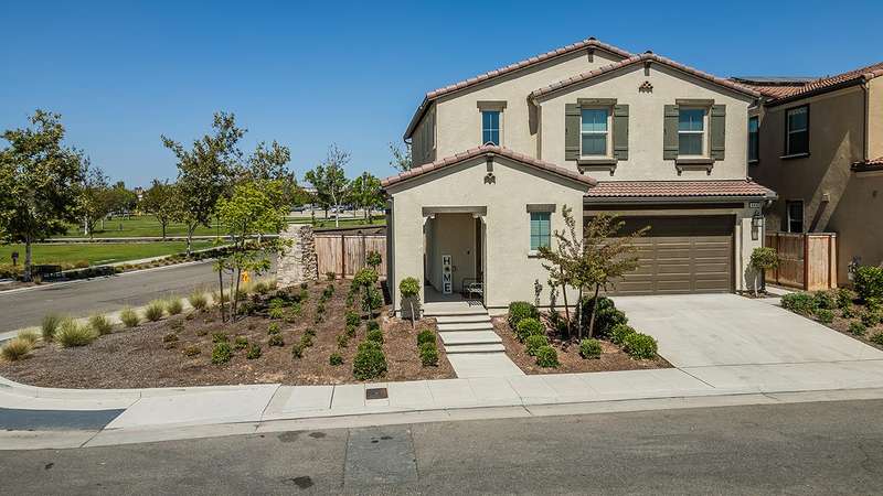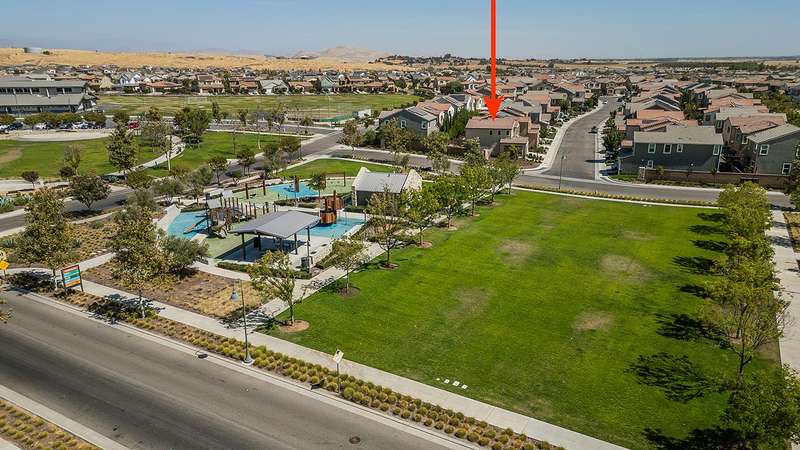 Built in 2022 by McCaffrey, this stunning 2-story, 3 bedroom & 2 1/2 bath home, combines modern style with thoughtful upgrades throughout. The open-concept design seamlessly connects the kitchen, dining area, and living roomperfect for entertaining or everyday living. Tucked away at the end of the hallway for privacy sits a half bath. Upstairs the primary suite boasts lovely views of the park and school, along with 2 additional bedrooms. This home sits on a desirable corner lot of nearly 4,000 sq. ft. and includes a 2-car garage with a generous driveway. Upgrades abound owned solar system, expanded kitchen island with extra seating, laminate flooring throughout, shaker cabinets, tile backsplash, upgraded baseboards, wrought iron stair design, custom paint, and more. The fully landscaped front yard includes an irrigation system, while the backyard is finished with a beautiful stamped concrete and drains for low-maintenance enjoyment.Located directly across from a park for additional parking, this property is part of Tesoro Viejo, a master-planned community recognized as the 2023 National Community of the Year, offering resort-style living at its finest!! The community offers year round events and celebrations.