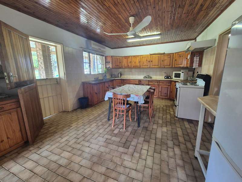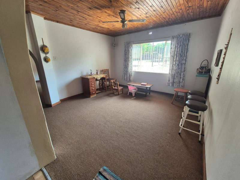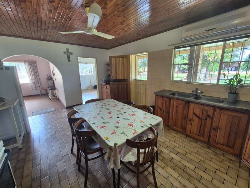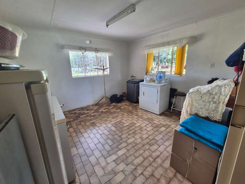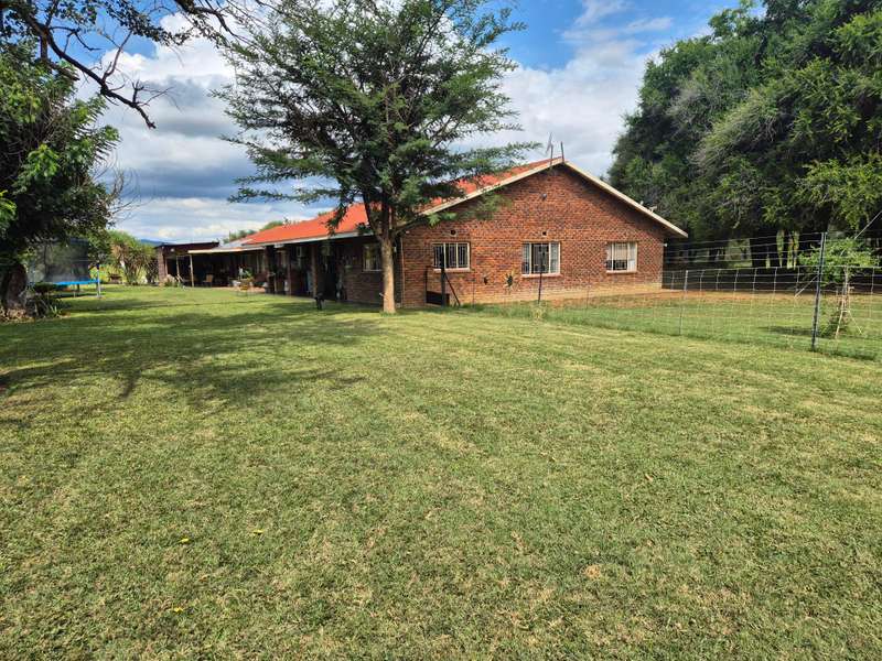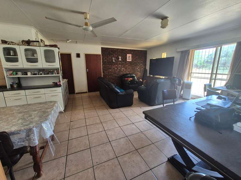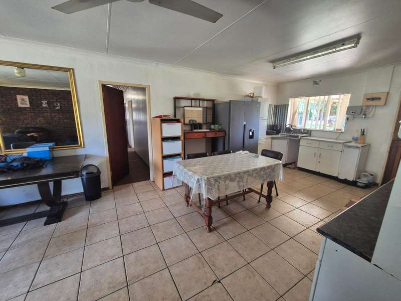 Located just 8 km from town, this expansive 14.7-acre property offers space, comfort, and excellent amenities for family living or small-scale farming. The main house features: • 4 generously sized bedrooms (3 with built-in cupboards) • 2 bathrooms • 2 spacious living rooms, perfect for family gatherings and relaxation • A separate washing-up area for added convenience • Spacious kitchen and dining areas Additionally, the property includes: • A separate flatlet with its own bedroom, bathroom, kitchen, and living area — ideal for guests, rental income, or extended family • An impressive, extra-large outdoor braai area set under majestic Tambotie trees, perfect for entertaining • Large storeroom for all your equipment and storage needs • Sheep and pig cages for small-scale livestock farming • 2 strong boreholes for reliable water supply • A cement dam • Beautiful natural surroundings and plenty of open space This is a fantastic opportunity for anyone looking for a peaceful lifestyle just outside of town, with space to grow and enjoy the outdoors.