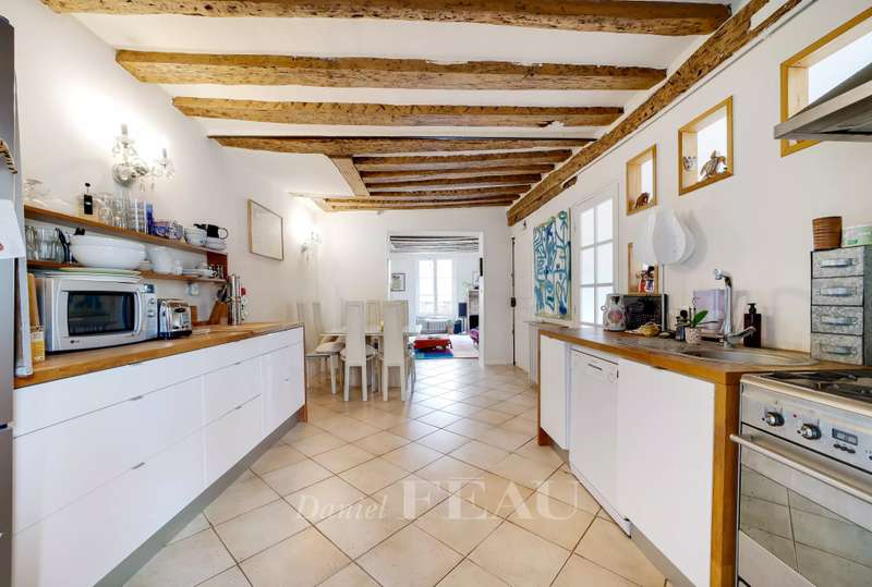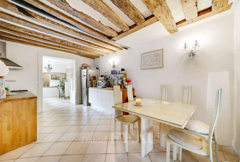 This charming apartment is on the 1st floor of a character early 20th century building located in pedestrian street 3 minutes from the station and the chateau and park. It includes a living/reception room featuring high ceilings with exposed beams and a fireplace, a dining room, two bedrooms and a study overlooking a courtyard, and a bathroom. The dining room could create a second bedroom. With a cellar.