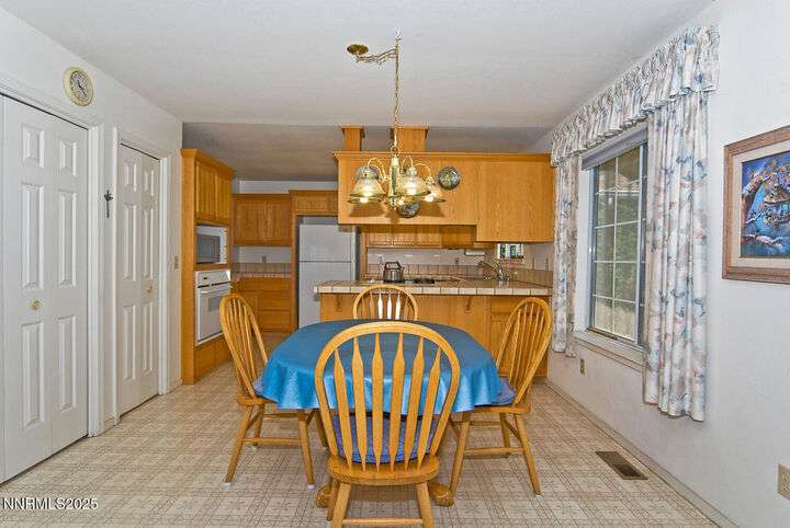 This comfortable and clean home backs to miles of BLM for tons of outdoor recreation fun. The views of the mountains are wide open and spectacular! The home features a well laid out kitchen, breakfast dining area and family room all flowing together with a slider to a private back patio. There is also a formal living room and formal dining room, plus a spacious master bedroom with walk in closet and a bathroom with stall shower. There are two spare bedrooms and another full bathroom. The landscape includes mature trees and shrubs, natural scape, automatic irrigation and a circular driveway. From the covered front patio, you can enjoy the spectacular mountain views to the West. This large parcel offers plenty of space for animal keeping, gardening or the addition of outbuildings. New roof installed in 2011. Extensive roll down window screen system in the house. Cooling is an in-wall evaporative cooler (not central a/c).