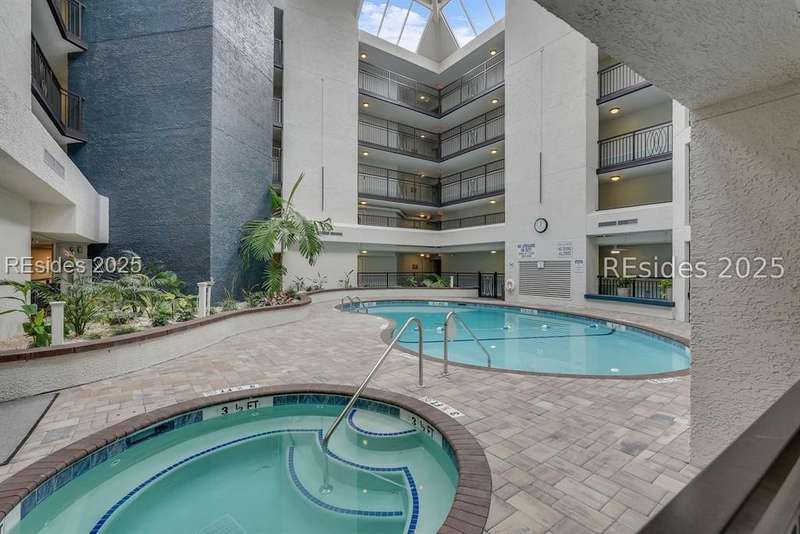 Great Location. Short walk to Beach, Coligny Plaza, & Celebration Park. Indoor and Outdoor Pools & Spa! Tennis and Pickle Ball Courts. Elevator !Updated Baths & Kitchen with granite counters. New stainless steel appliances. All tile floors. Easy maintenance. Great floor plan for comfortable family and guest accommodations. Separate Living Room & Family Room. Private balcony. Fully furnished and ready for vacation rentals, Long term rental or your own private beach residence. Major renovations have been completed to the Ocean Walk building. Secure entry to building.