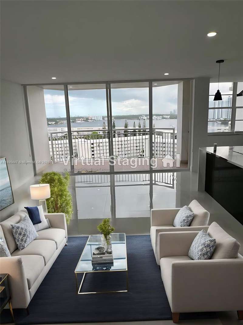 BRAND NEW INTERIOR APARTMENT IN THE HEART OF AVENTURA 100% RENOVATED, ALL NEW APPLIANCES , KITCHEN , BATHROOMS This 2 bedroom, corner unit boasts breathtaking water views. Step out onto two private balconies – one off the living room and another off the primary suite – to soak in the beauty of the Intracoastal Waterway and Maule Lake. This stunning residence has been completely reimagined with brand-new luxury flooring, a chef-inspired kitchen featuring state-of-the-art appliancesand spa-like bathrooms. Enjoy the convenience of LED ceiling lights, a new AC system, and electric curtains. Laundry is on the floor.