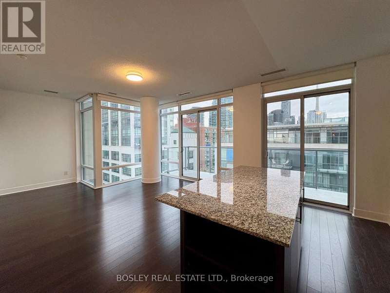 Enjoy lakeside living at Quay West on Stadium Road! This bright 1+den corner suite offers nearly 700 sq. ft. of modern living with wall-to-wall windows and a spacious east-facing balcony showcasing city and courtyard views. The open-concept layout features a sleek kitchen with granite countertops, stainless steel appliances, and ample storage, while the den provides the perfect home office or guest space. The bedroom is light-filled with generous closet space, and the living area flows seamlessly for easy entertaining. Your parking spot also comes with a secure, wall-mounted bike rack. Building amenities include a fitness centre, sauna, spa, party room, and billiards lounge. Steps to waterfront trails, yacht clubs, cafés, and Harbourfront dining, with quick access to TTC, the Gardiner, and Billy Bishop Airport - the ultimate urban retreat by the lake.