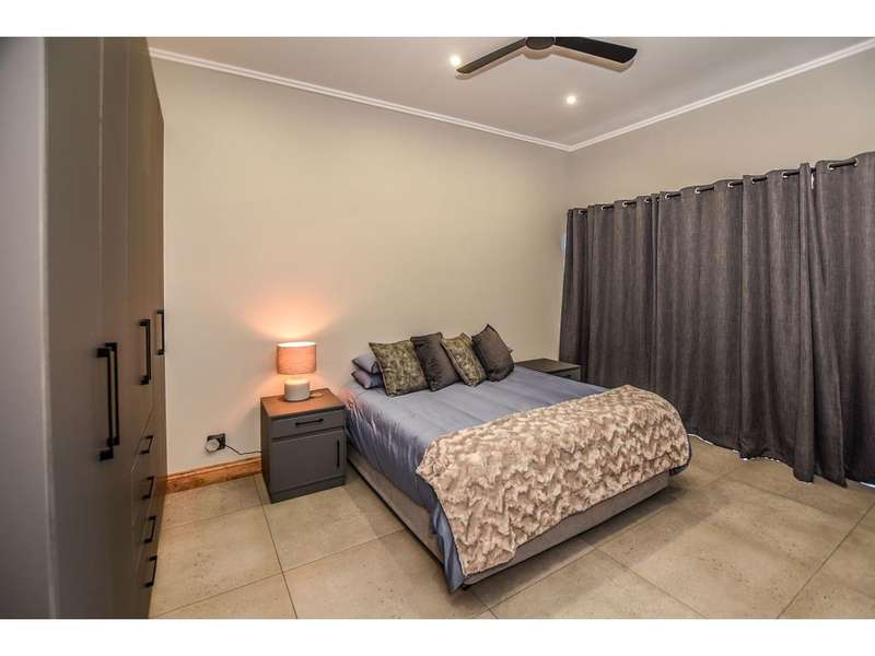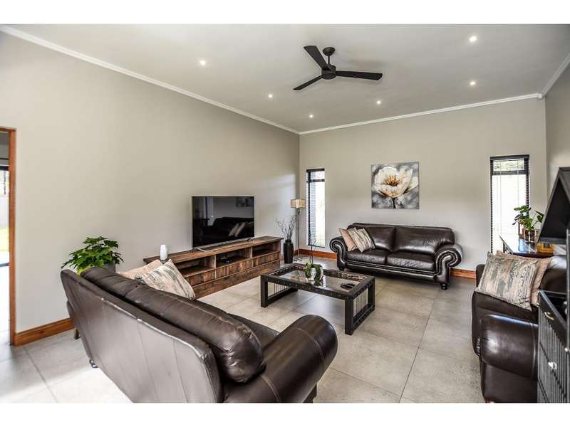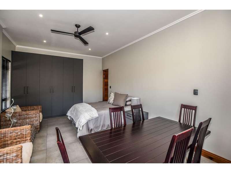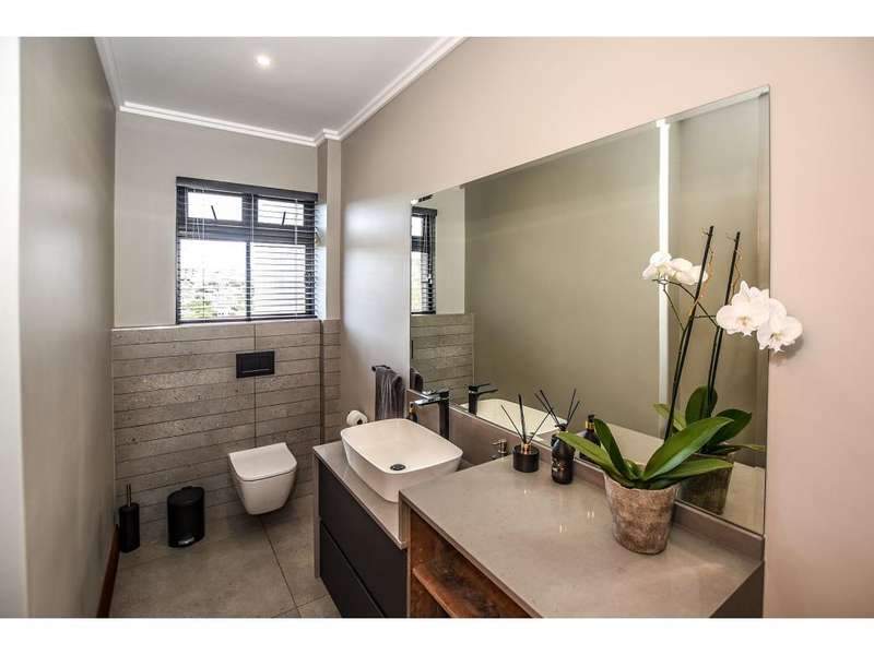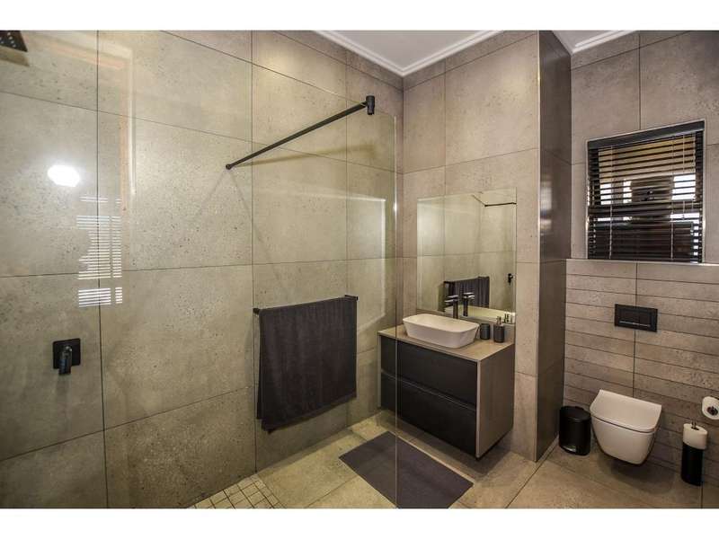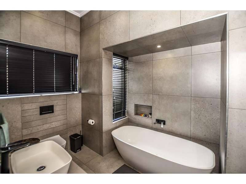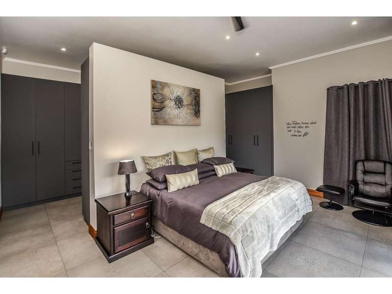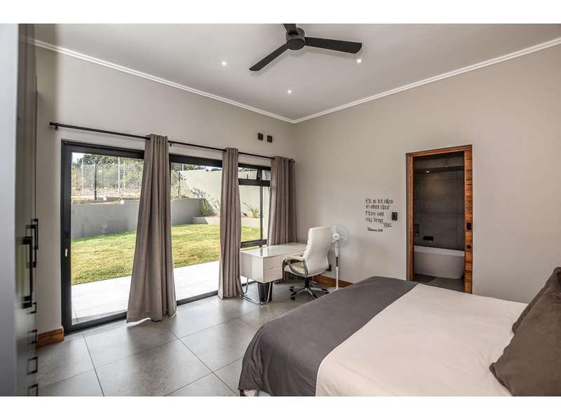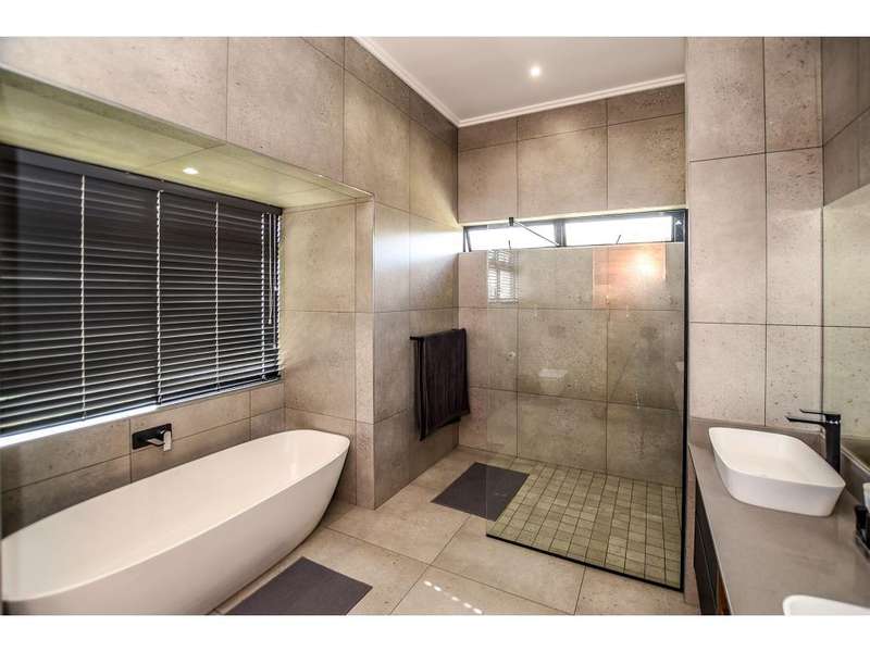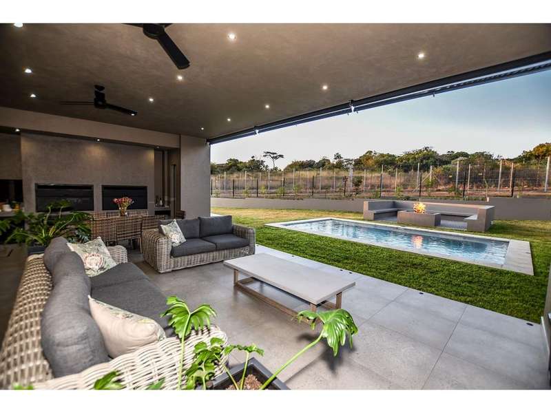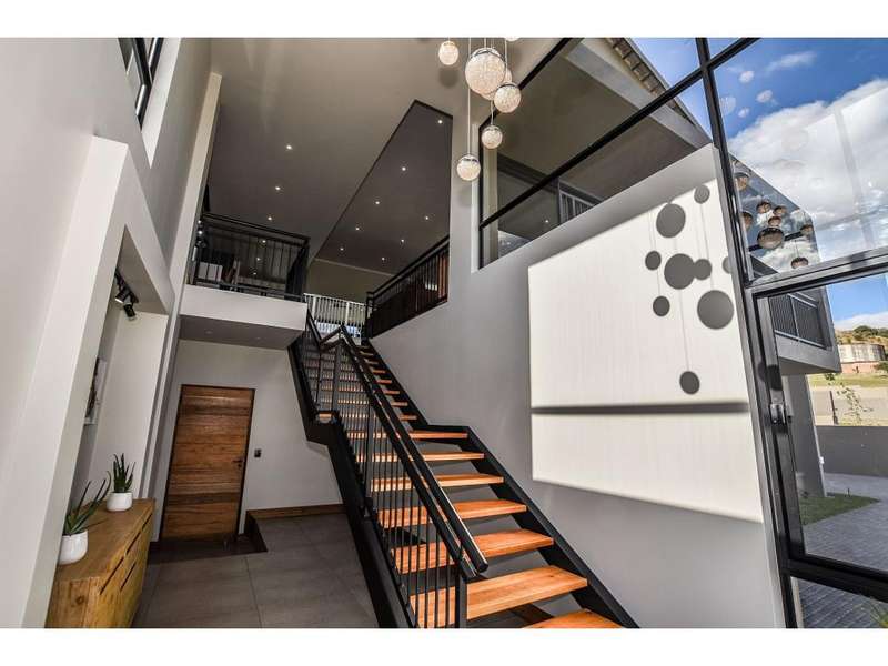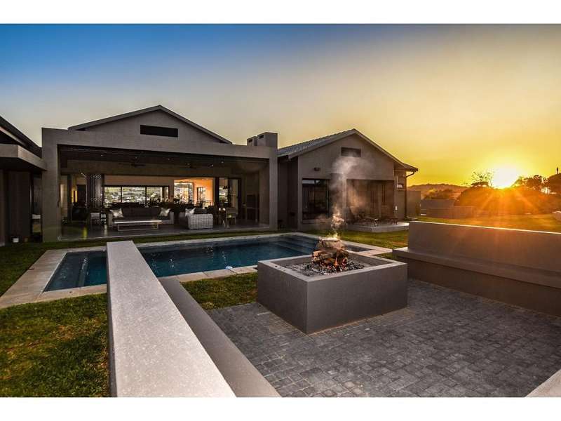 It won?ÇÖt be easy to click out of holiday mode in this stylishly contemporary residence for the modern pleasure-seeker. Cool, calm, and sophisticated with a youthful edge, this functional home is enveloped in light and comfort. Crisp grey walls, beautifully tiled floors, and Caesarstone countertops create a style as timeless as the great view. The calming bushveld, captured through the extensive use of glass, will help you forget your city stress. This house screams ?Çÿdesigner?ÇÖ and will reflect the personality and taste of those accustomed to the best in quality design, finishes and lifestyle This newly built home consists of 5 bedrooms, each bedroom with its own ensuite bathroom, large entertainment spaces, flow-through living area and a home office. A spacious 4 car garage with some storage space. The charming backyard boasts a patio dining space overlooking the swimming pool and the lawn with a computerised irrigation system. A rare opportunity. Early viewing is recommended.
