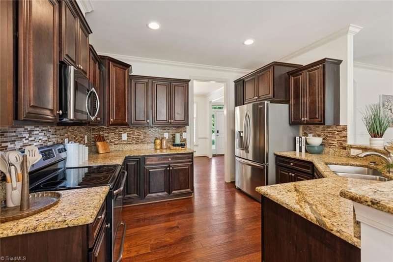 Large, move-in ready home conveniently located w/amazingly flexible spaces, beautiful engineered hardwood flooring, new paint and carpet plus generous storage. Main level has a free-flowing kitchen, dining room and breakfast area w/built in seat, bay window and pantry. Attached family room is anchored by a fireplace and provides access to the quiet screened porch and patio. Formal living room is great for additional entertaining or would be perfect for a second home office. Tucked off the hall you'll discover a private office w/built-ins and a large den/home theater which is already wired and features built-in speakers. Don't miss the large mudroom! Upstairs, the primary suite is perfectly sized to accommodate a small sitting area. The bath features a large tub, separate shower, double vanities and a huge closet w/built-ins.The remaining four bedrooms are generously sized and offer additional flexibility. Two hall baths and laundry complete the package! All appliances remain!