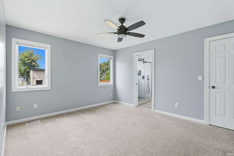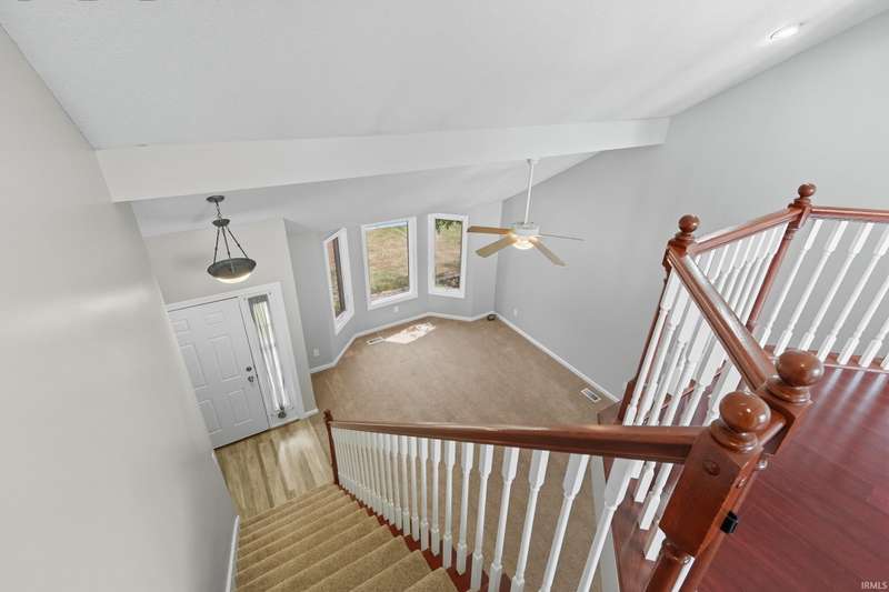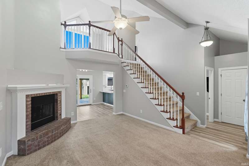 HELLO Roanoke Bluffs, where comfort meets convenience in this beautifully updated two-story home. Step inside and be greeted by soaring vaulted ceilings and a loft that overlooks the light-filled living area framed by stunning windows. The main-level primary suite is a true retreat, featuring a remodeled bathroom with modern finishes and a spacious walk-in closet. Upstairs, you’ll find two additional bedrooms and a full bathroom, plus the open loft space — perfect for a home office, play area, or reading nook. Fresh paint, brand-new flooring, updated countertops, and a stylish new backsplash give the kitchen and main level a crisp, move-in-ready feel. Plus, with a brand-new roof, major updates are already done for you. Out back, the fully fenced yard is designed for both relaxation and entertaining — complete with a new patio, pergola, and hot tub. A huge “man shed” (previously home to a golf simulator) offers endless possibilities for hobbies, workouts, or extra storage. Just minutes from I-69 and I-469, this welcoming home blends modern updates with a cozy, homey vibe in a sought-after location.
