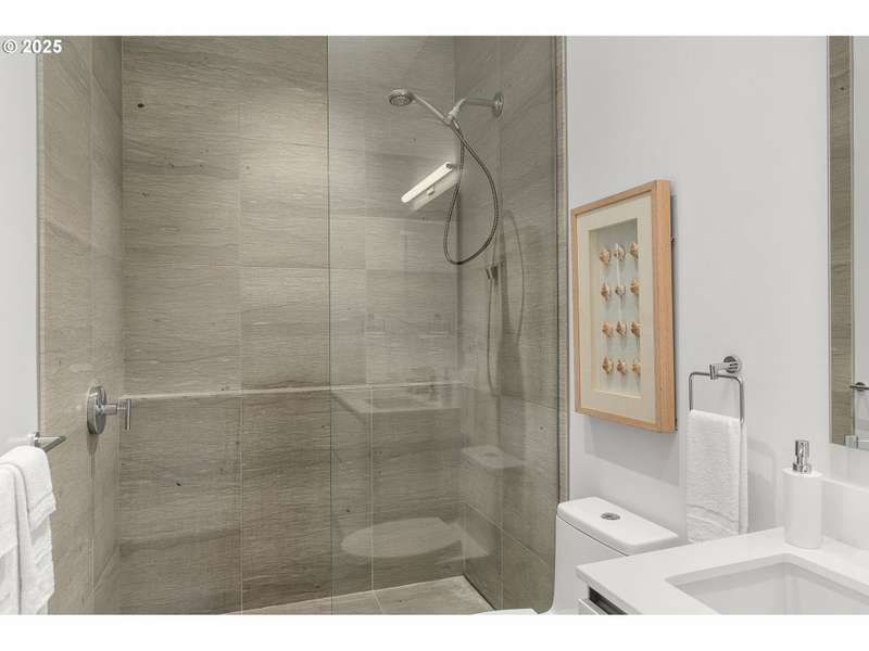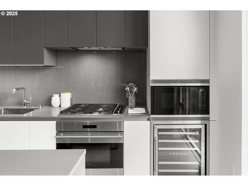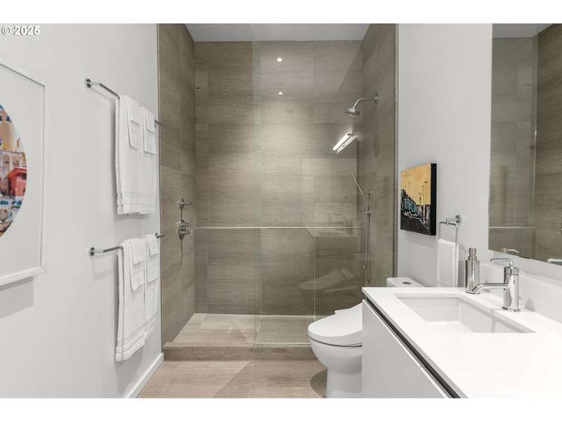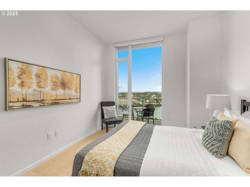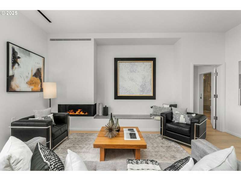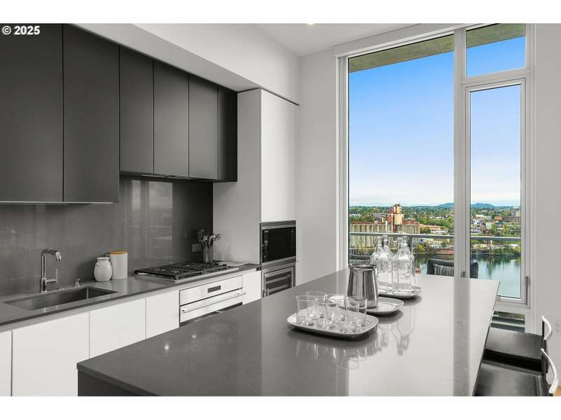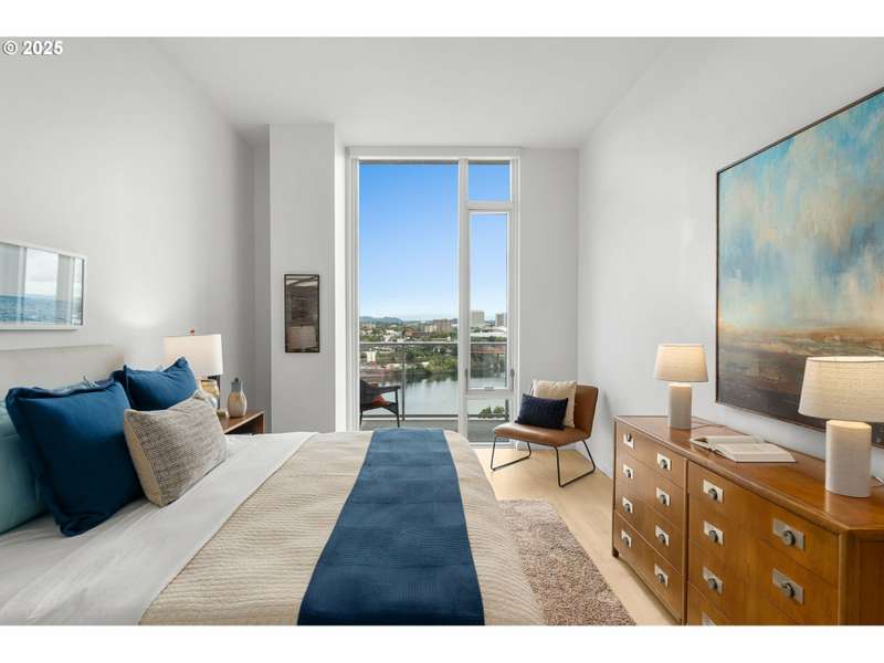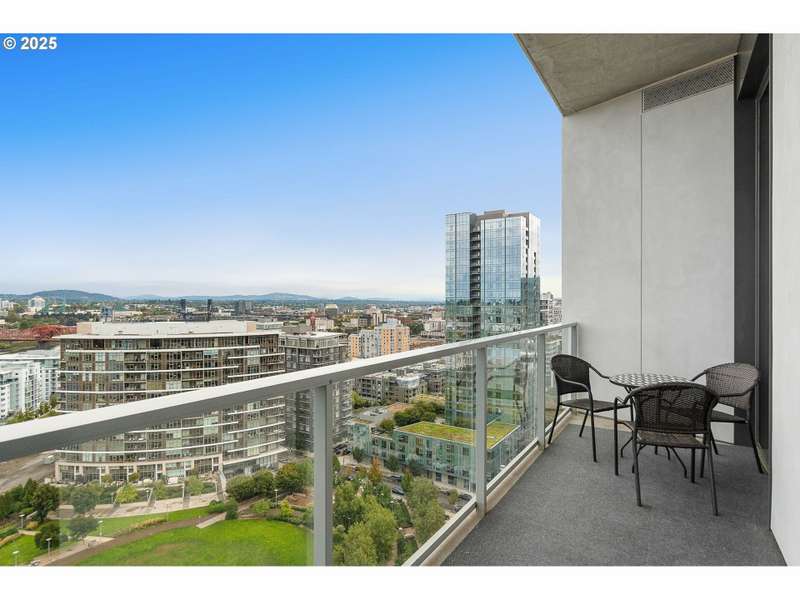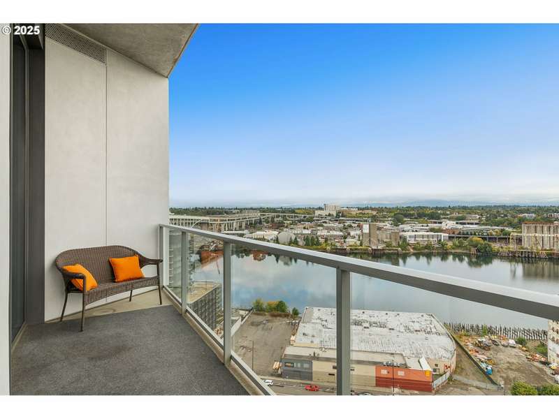 A stunning LUXE level unit in the Pearl's newest high rise, Vista North Pearl. This east facing home overlooks The Fields Park, has panoramic views of the river, mountains, and city. Luxe level homes feature extra high ceilings and upgraded fixtures and finishes. This home is finished with wide plank oak flooring, huge walls of glass, limestone bathrooms, and high end appliances. Living room includes a gas fireplace and access to the covered patio, which extends the full length of the home. Luxurious kitchen with sleek European cabinetry, huge center island, lots of storage, a SubZero refrigerator, and a wine cooler. Primary suite has a huge custom closet and luxurious bathroom with clean, modern lines. Second bedroom is also a suite with a custom walk in closet. Separate den has a great view to the east. Large separate utility room has custom storage added. Fantastic, well run building with lots of amenities - full time concierge, gym, bike storage areas, dog wash station, community room, conference room, community outdoor space with seating and fire pit, and 2 guest suites. Includes 2 deeded parking space and 1 deeded storage unit.