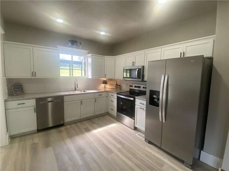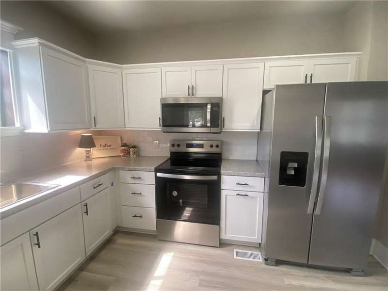 Complete remodel on this classic home. Some natural woodwood with many modern updates. Beautiful wood floors. All new stainless appliances. White kitchen cabinets. Main floor laundry with pantry. Three main floor bedrooms. Fully finished lower level with additional bedroom, full bath, family room with new 50 television and electric fireplace. Tons of storage. Lower level features rustic finishes with sliding barn doors. Small courtyard between house and one car garage with fountain and privacy seating. Sits adjacent to Bartlett Park convenient for family picnics, ballgames or just enjoying the green-space.