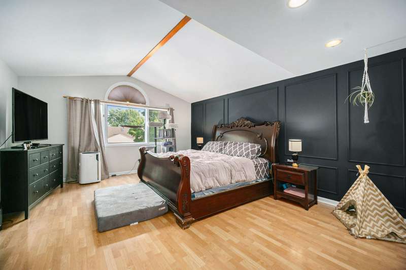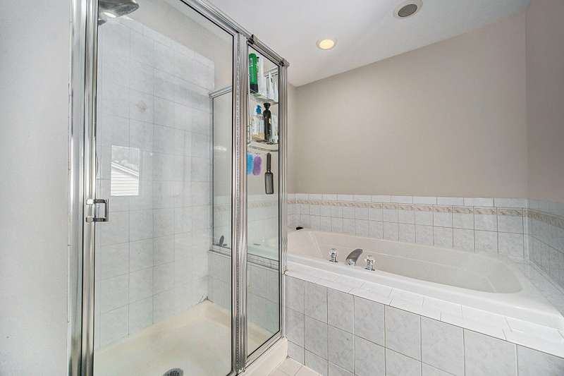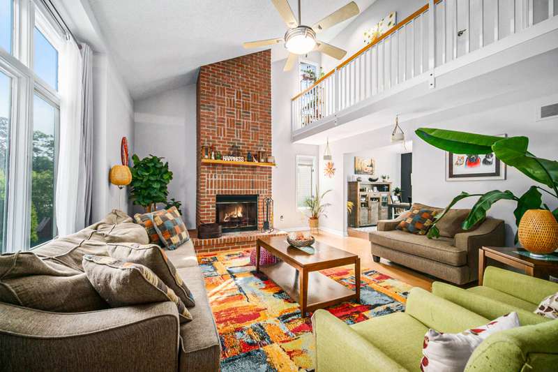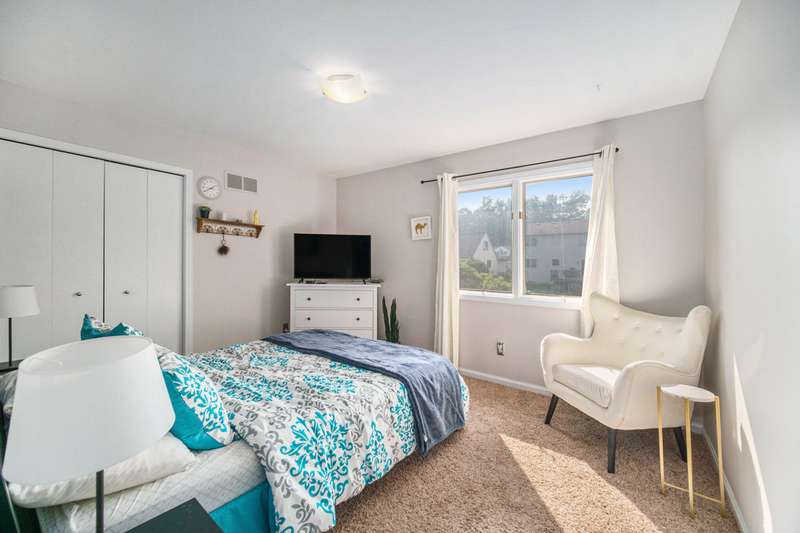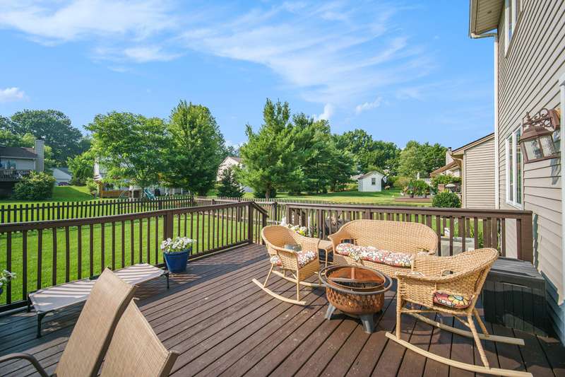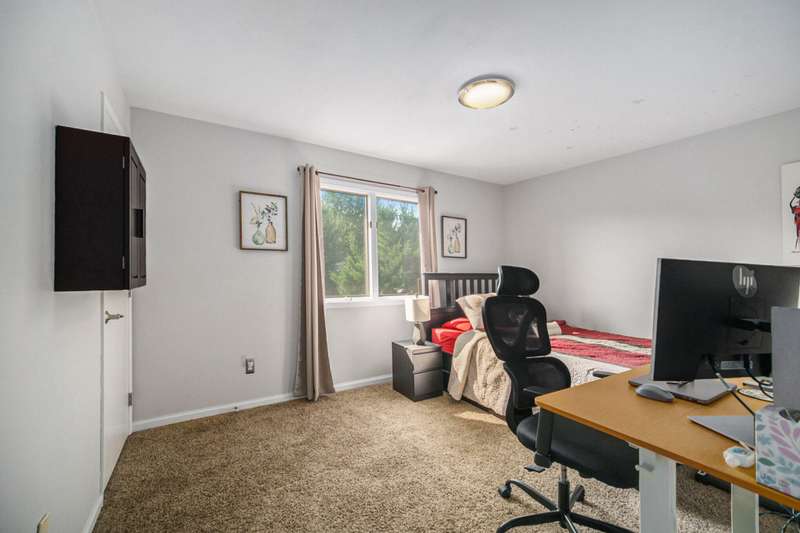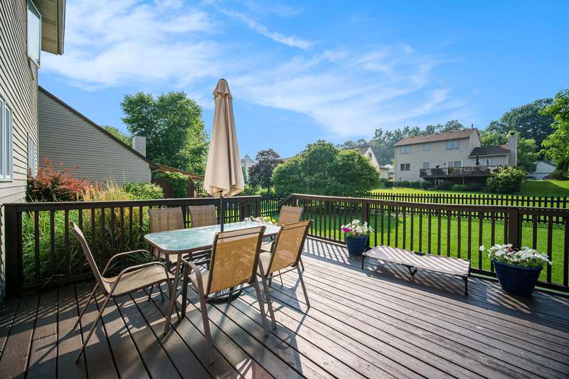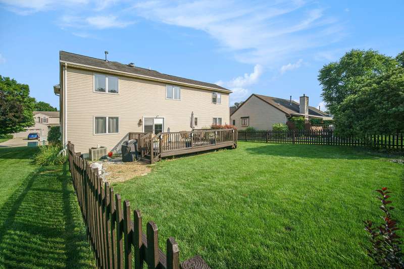 Spacious 4-bed, 2.5-bath transitional colonial with 2,400+ sq ft of comfort and style. Walk into a dramatic 2-story living space w full brick fireplace, solid surface floors, & fresh, neutral paint. The updated kitchen offers new counters, backsplash, deep sink & stainless steel appliances, open to breakfast area and family room. A Pella slider leads to a large deck and fenced yard perfect for pets or play. Upstairs boasts 4 generous bedrooms, including a huge primary suite with jetted tub, separate shower, new dual vanities, & lg walk-in closet. One bdrm features custom built-in desks perfect for home office. Front door Ring camera, Nest thermo & detectGarage has an EV charger. Basement is clean, dry, and plumbed for a full bath. HOA just $275/year inc snow removal from drive & sidewalk