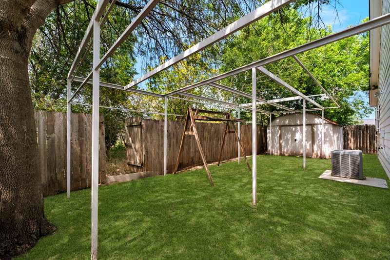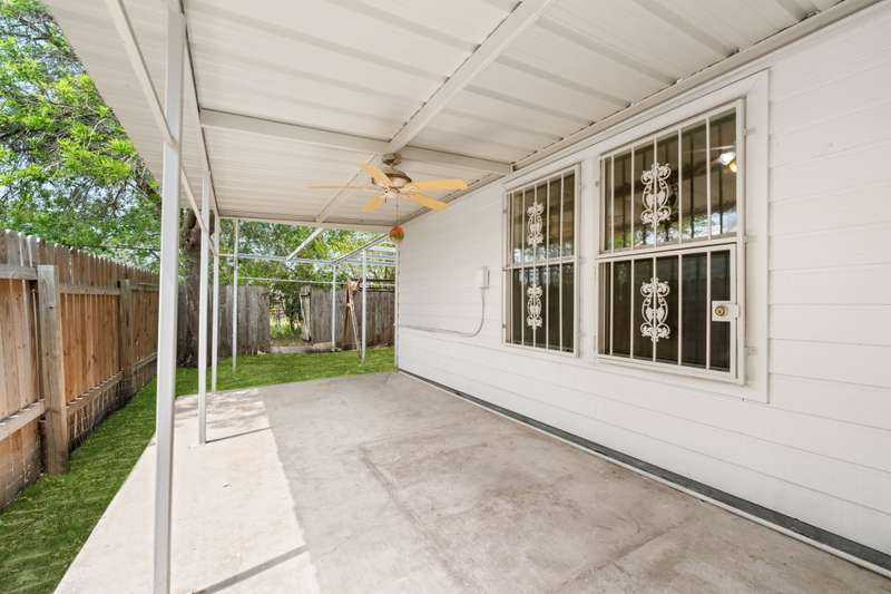 Charming one-story brick home featuring 3 bedrooms, 2 full baths, a 1-car garage plus a 1-car carport. Inside, a spacious entry leads to the spacious living room and flows perfectly into the galley kitchen and dining area-perfect for everyday living and entertaining. The backyard offers mature shade trees, a covered patio, with a privacy fence, but plenty of room to expand the backyard. Metal structure is prepped to add covering and expand patio. Storage shed conveys. With close proximity to Downtown San Antonio and quick access to Loop 410 and I-37, this home is ideal for first-time buyers or a growing family seeking convenience and room to grow. Move-in ready! - 10/4/2025 3:15:15 AM