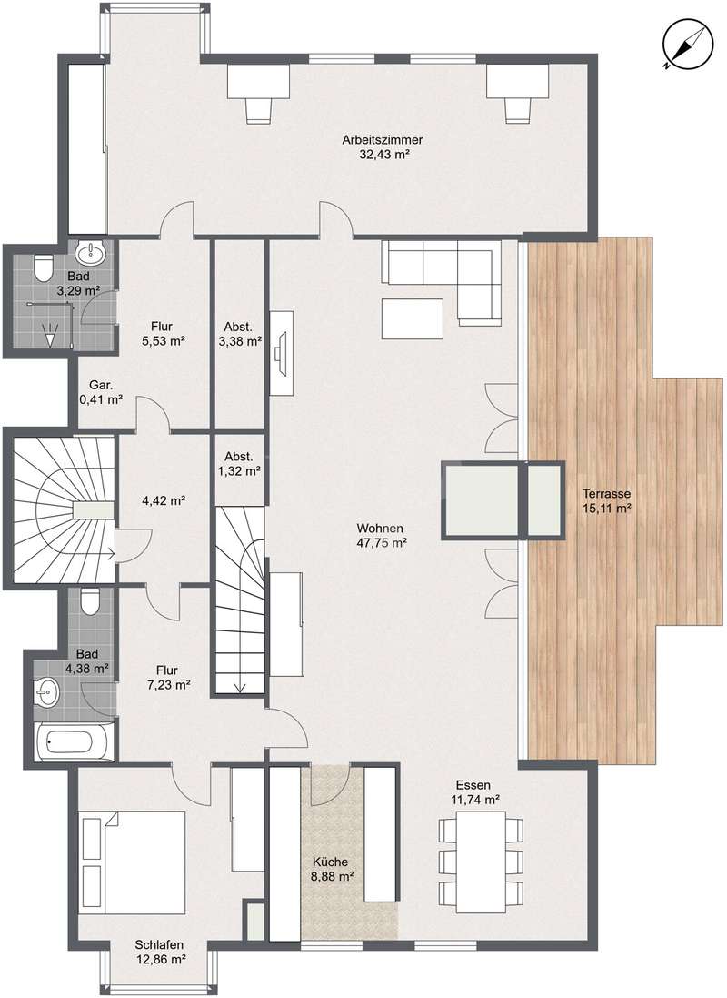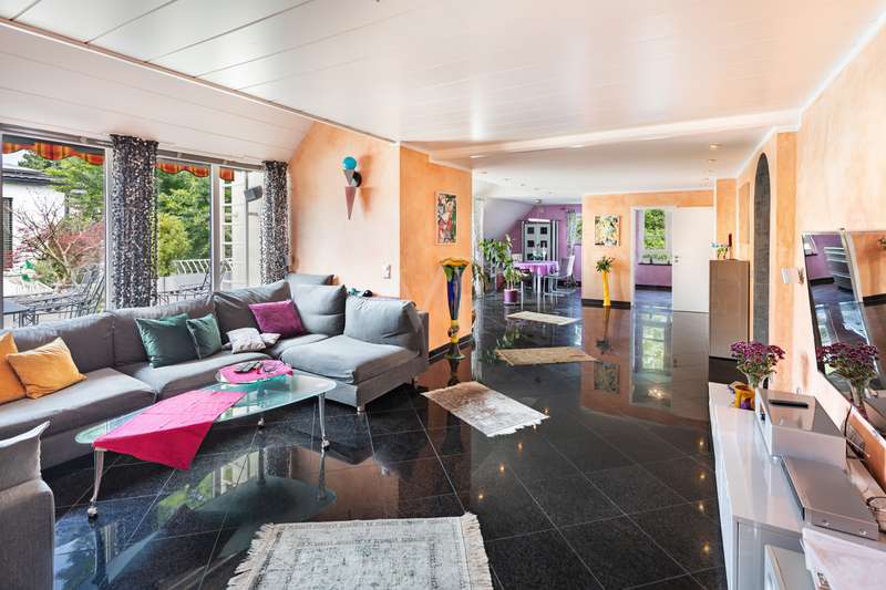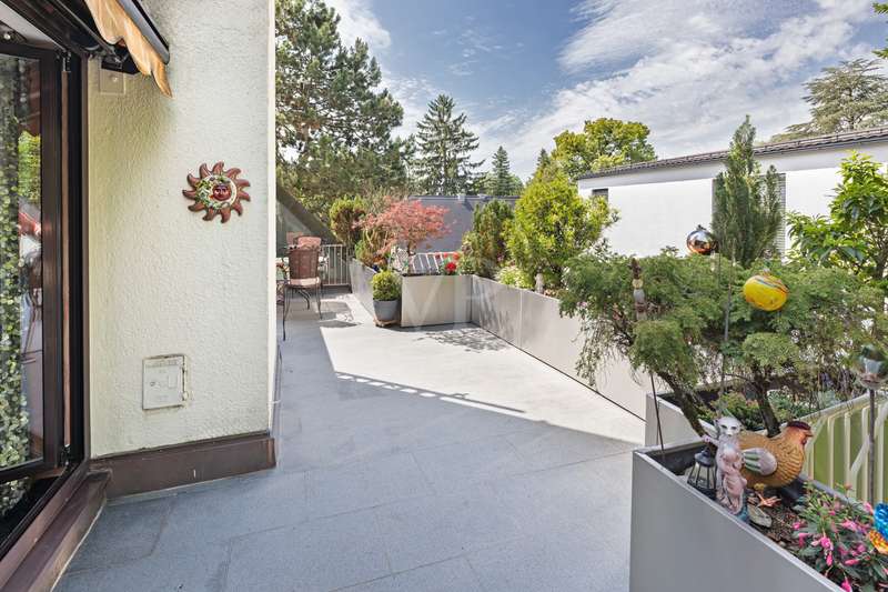 This exceptional maisonette with approx. 222 m² of living space is situated in a quiet and sought-after location in Obermenzing, directly on the Nymphenburg Canal. Built in 1986, the property impresses with its generous room layout, high-quality fittings and versatile usage options. The open-plan living and dining area creates a generous sense of space with flowing transitions. The stylishly integrated fitted kitchen blends harmoniously into the overall picture. From here, you can access the sunny south-west-facing terrace, which offers a wonderful view of the greenery. Uniformly laid black granite floors lend the entire apartment a timeless elegance and underline the high-quality standard of the property. On the first floor, in addition to the living area, there are several bedrooms and offices as well as two bathrooms. The upper living level offers further, generously proportioned rooms that can be used flexibly as bedrooms, work or hobby areas. An additional air space enhances the open and airy architecture, while a further bathroom completes the comfort of this level. A special feature of this property is its location directly on the Nymphenburg Canal. The immediate proximity to the water and the prestigious surroundings lend the property an exceptional quality of living. According to the declaration of division, it is possible to separate the property into two independent units. This makes the apartment suitable as a spacious family home, for multi-generational living or for a combination of living and working under one roof. The apartment is ready for immediate occupancy. * We will be happy to answer any further questions you may have at any time!