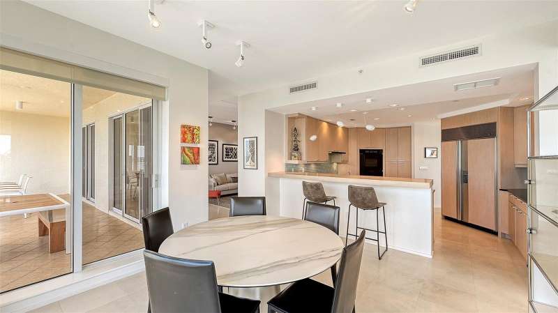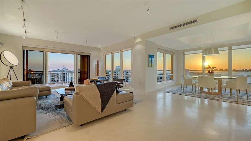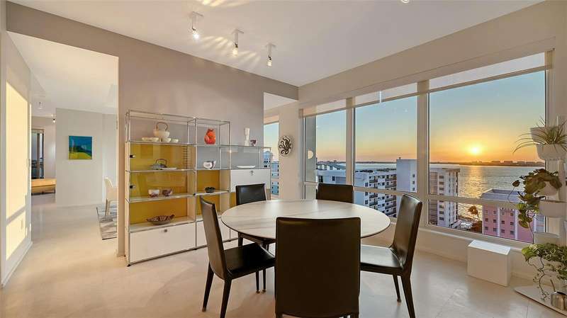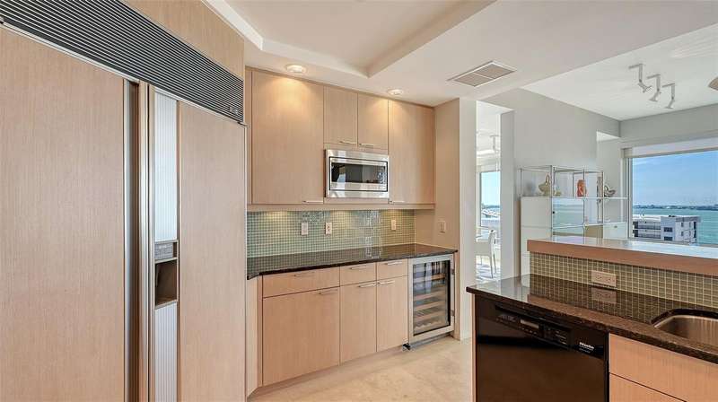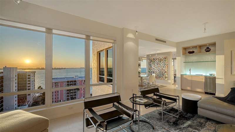 Experience unmatched elegance and world-class service in this exclusive Ritz-Carlton residence, where breathtaking views and luxury amenities define the ultimate lifestyle. Nestled near downtown Sarasota's vibrant cultural scene, this rare southwest corner home seamlessly blends sophistication, comfort, and contemporary design. Step off your private elevator into a meticulously curated space, where every room showcases sweeping vistas. Designed with modern finishes, clean lines, and natural materials, this residence exudes refinement. The coveted three-bedroom layout boasts two expansive terraces, inviting you to unwind while taking in spectacular sunset panoramas. Crafted with impeccable attention to detail, the luxurious interior features custom-built cabinetry, designer accents, and elegant bamboo and zebra wood finishes. Neutral travertine flooring flows seamlessly through the main living areas, enhancing the home's timeless appeal. A climate-controlled wine storage system accommodates over 200 bottles, perfect for collectors and entertainers alike. The gourmet kitchen is equally impressive, featuring an induction cooktop, premium stone countertops, a striking backsplash, and ample storage. The regal master suite offers a serene retreat, overlooking the iconic Marina Jack with its ever-changing waterfront scenery. Designed for both relaxation and grandeur, this private sanctuary provides the perfect escape. Residents enjoy an unparalleled array of Ritz-Carlton amenities, including two sophisticated social lounges, a private movie theater, a state-of-the-art fitness center with saunas, steam rooms, and a dedicated massage treatment space. The heated outdoor pool and spa are surrounded by lush tropical landscaping, while outdoor grilling and dining areas create the ideal setting for entertaining. Just moments from Sarasota's renowned performing arts venues, art galleries, pristine beaches, fine dining, and luxury shopping, this residence offers a lifestyle of sophistication and ease. More than just a home, it is a statement of prestige and refinement, where luxury knows no limits.