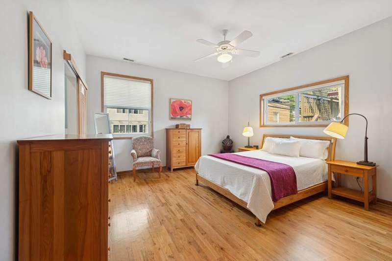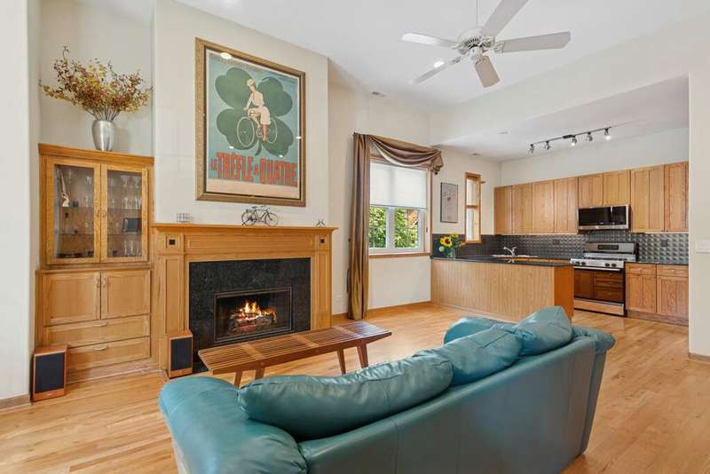 Historic Elegance Meets Modern Living in the Heart of Wicker Park.Welcome to Unit 2W in a boutique 4-unit building nestled in the coveted Wicker Park Landmark District. Behind the classic Italianate facade with its 1870s polygonal bay windows, this meticulously maintained condo offers a rare blend of architectural heritage and contemporary comfort. Step inside and be greeted by 12-foot ceilings, oak hardwood floors, and a gas fireplace with a custom surround and built-in bookcase-perfect for cozy evenings or entertaining with style. A chef's kitchen with 42" shaker cabinets, granite countertops, stainless steel appliances (new oven & microwave in 2023), a stunning tile backsplash, and a wall of pantry cabinets. 3 spacious bedrooms, including a king-sized primary suite with 3 closets and a recently renovated en-suite bath with heated floors, soaking tub, and separate shower.8 total closets, including two hall closets, a pantry, and ample storage in every bedroom.Private outdoor space: Enjoy your 20x8 deck accessed via a gallery hallway (not through a bedroom!), plus roof rights for future expansion. Private garage space included in the price! Additional features: New AC 2025, Gated front yard with mature landscaping, Fully furnished common deck spanning the garage, Low assessments in a self-managed building. Prime Location: Just 2.5 blocks to the Damen Blue Line, and moments from the iconic Damen/Milwaukee/North intersection, Wicker Park Farmers Market, Division Street, and some of Chicago's best dining, bars, and boutiques-all while enjoying a quiet, tree-lined street. Lovingly owned and maintained by the same owner since conversion, this condo is a true gem-a move-in-ready home with room to personalize and grow.