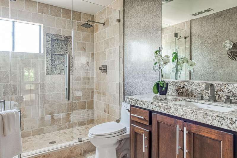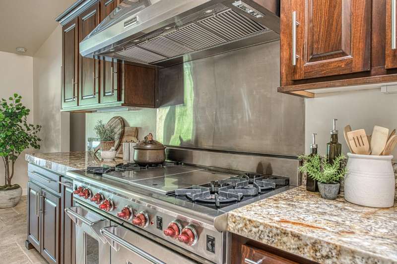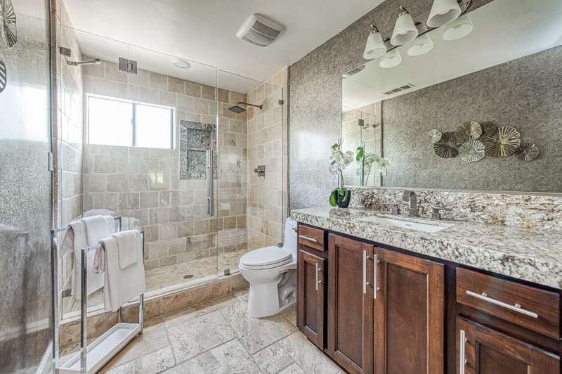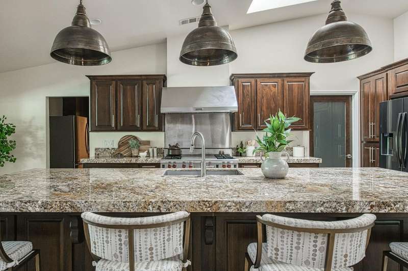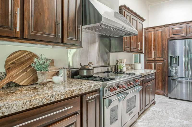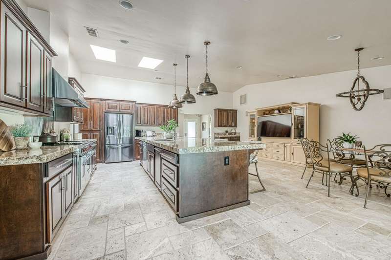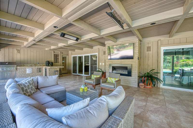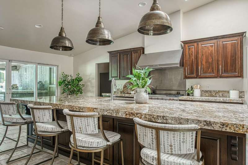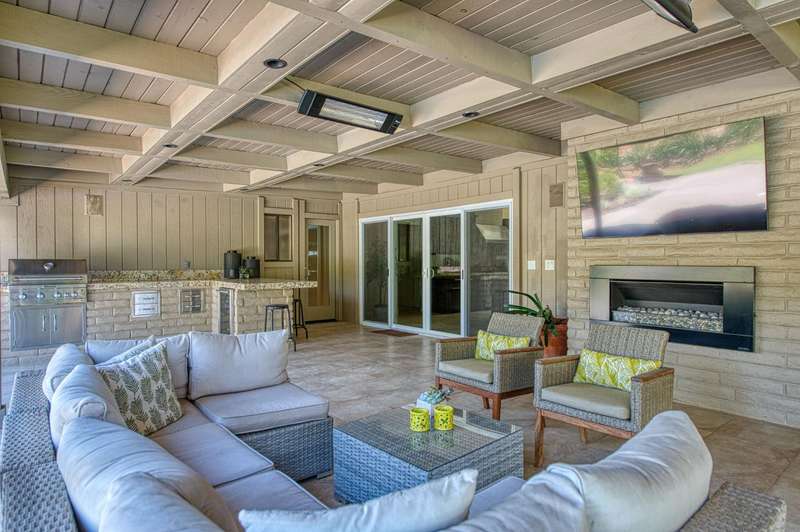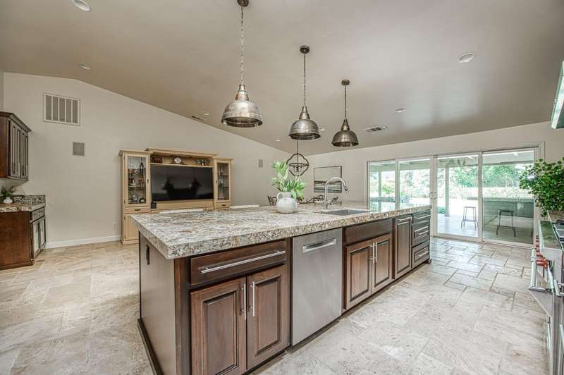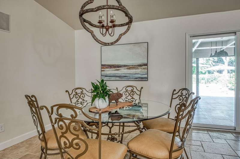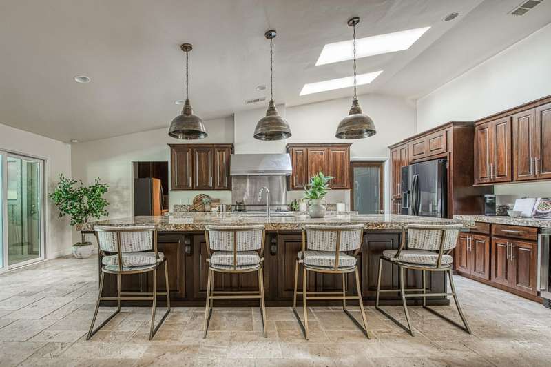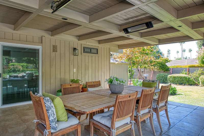 Enjoy this exceptionally updated home just steps from the San Joaquin Country Club in Northwest Fresno. Set on a beautifully landscaped lot with OWNED SOLAR, automatic irrigation, and 11 mature fruit trees (including peaches), this home is a retreat for entertaining and everyday living. Enter through the double-door entry to a well thought out floor plan with two living spaces and a formal dining room; ideal for hosting. Travertine flooring flows through the main living areas, adding timeless elegance and seamless indoor-outdoor flow. Bedrooms have large closets; the laundry room offers abundant storage. The primary suite features skylights, recessed lighting, and a newer patio slider to the pool. The spa-style bath includes a double-headed shower, frameless glass doors, dual sinks and shaker cabinetry, and a steam room for at-home wellness.The kitchen was definitely created with the home chef in mind: dark-wood cabinetry, granite countertops, a high-end Wolf range, stainless appliances, a built-in wine fridge, and a generous walk-in pantry perfect for storing appliances and bulk items. Expansive windows and doors connect the kitchen to the backyard oasis, making indoor-outdoor entertaining effortless.Outdoor living is the showstopper: a covered patio with built-in heaters and a full outdoor kitchen create alfresco dining year-round. The large, refreshing pool with relaxing waterfall, adjacent lounge areas, lush planting, and thoughtful hardscape create a private resort feel.Practical upgrades include two HVAC units and owned solar to help lower utilities. The home's layout provides distinct zones for formal gatherings and casual family time, while ample storage and oversized closets ensure everything has a place. Neutral finishes and modern systems make the property move-in ready.Close to premier golf, Fresno's finest dining, and shopping this home pairs luxury finishes and modern conveniences with a spectacular entertainer's backyard just steps from the club. Schedule a private showing today to experience this exceptional property in San Joaquin Country Club Estates.