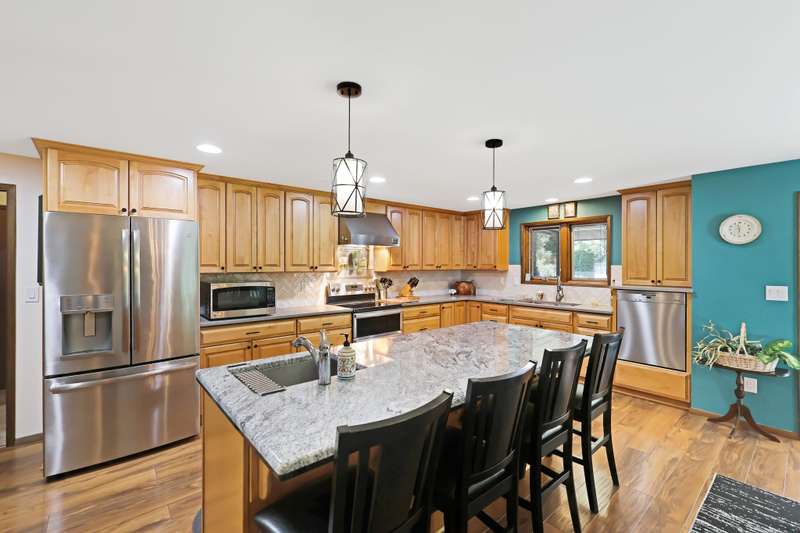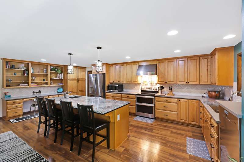 One-Owner, 4-Bedroom rancher on 1/3 Acre with Premium Upgrades. This beautifully maintained 4-bedroom, 3-bath home sits on a generous 1/3 acre lot and is packed with thoughtful upgrades and custom touches throughout. The spacious, open-concept layout features an extended kitchen and dining area perfect for entertaining. The chef’s kitchen is equipped with KraftMaid cabinetry, quartz and granite countertops, a large island, two top-of-the-line dishwashers, and a GE Profile French door refrigerator. Coordinating cabinetry continues into the bathrooms and main floor laundry for a high-end, cohesive look. Enjoy the comfort and privacy of two primary ensuites, while the downstairs bathroom offers heated floors and a towel warmer. Stylish and energy-efficient Pella windows with built-in blinds, as well as front door and sliding glass door. Additional features include engineered hardwood floors in the bedrooms.