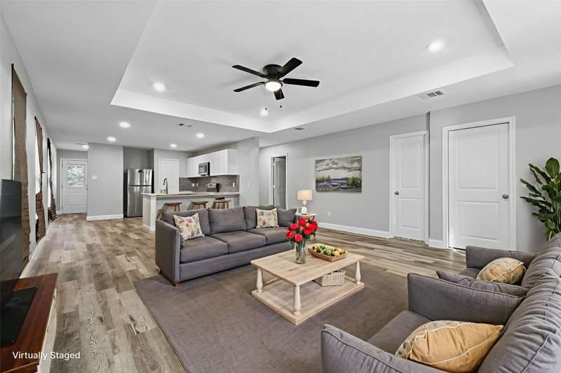 Discover contemporary comfort in this recently built, one-story home nestled in the Liberty Annex neighborhood of South Dallas. Spread across approximately 1,381 sq ft, the home offers an open-concept layout featuring a seamless transition from the living area into the kitchen and dining space, perfect for modern living and entertaining. The kitchen boasts ample cabinet and counter space, encouraging culinary creativity. The primary suite includes a private bathroom and a spacious walk-in closet, while two additional bedrooms provide versatility for guests, family, or a home office. The laminate flooring throughout adds a clean, cohesive aesthetic. Outside, enjoy the privacy of a fenced yard, ideal for morning coffee, evening relaxation, or outdoor gatherings. Completing the package is an attached single-car garage and a driveway for added convenience. Tenant qualifications remain as specified: applicants must have a minimum credit score of 600, a minimum gross monthly income of $6,300, no evictions or judgments, and no felony charges within the past 5 years. Smoking is prohibited. The property is willing to accept Section 8 vouchers, no co-signers, ITIN holders, or subleasing arrangements. Pets are permitted with breed restrictions and a limit on number.