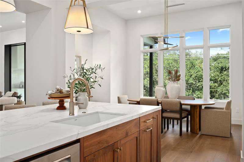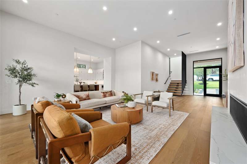 Tucked into a quiet pocket of Westlake, 3629 Peregrine Falcon Drive is a newly constructed custom residence designed by the highly respected Cornerstone Architects and built by Sendero Homes. Set on a .25-acre lot just a few blocks from top-rated Eanes ISD schools and the area's best shopping and dining, the home offers both refined design, luxurious and high-quality finished throughout, and an unbeatable convenience. Step inside the grand entryway with custom millwork, soaring 12-foot ceilings, 8-foot solid core doors, warm wide-plank hardwood floors, and an abundance of natural light pouring through each space. The open-concept kitchen is anchored by a generous waterfall island and outfitted with premium stainless steel appliances, sleek cabinetry, and a walk-in pantry. Multiple living areas--both upstairs and down--provide flexibility for entertaining, working from home, or quiet retreat. With five spacious bedrooms and five-and-a-half bathrooms, there's room for everyone to feel at home, including a serene primary suite that overlooks the backyard and features a spa-like bath with soaking tub, generous walk in closet, dual vanities and a walk-in shower. Glass sliders lead to a covered patio and an in-ground pool with stairs leading down to a plentiful lawn space below. A two-car garage, outfitted with an electric car charger, offers ample parking and storage for gear and equipment. Additional features include a Control 4 lighting package with convenient "home" and "away" settings, plus s a tankless water filter and softener. Blending contemporary elegance with everyday comfort, this home is designed to live beautifully, ready to be personalized and enjoyed for years to come in the heart of central Westlake. Tax and assessed values are estimates for illustration purposes only. All figures should be independently verified.