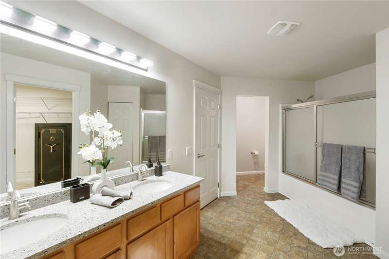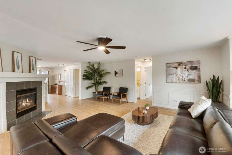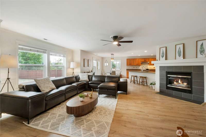 Massive home perfect for multigenerational living or house hacking. 6-bedroom home with a flexible bonus that could be a 7th bedroom. No ADU needed! New paint, new carpet, updated flooring & upgraded fixtures. Main floor offers: bedroom, bathroom w/shower, formal dining, front sitting room & open living w/cozy fireplace. Kitchen features gas cooking, SS appliances, pull-out cabinetry & a massive pantry. Main floor laundry adds convenience. Upstairs bedrooms w/oversized walk-in closets, including an unbelievable primary closet, plus bonus rooms for play, work or theater. Full-sun fenced backyard backs to ridge/greenbelt w/patio & shed. 3-car tandem garage, generator hookup, EV charging & high-tech cabling complete the package. Move-in ready!