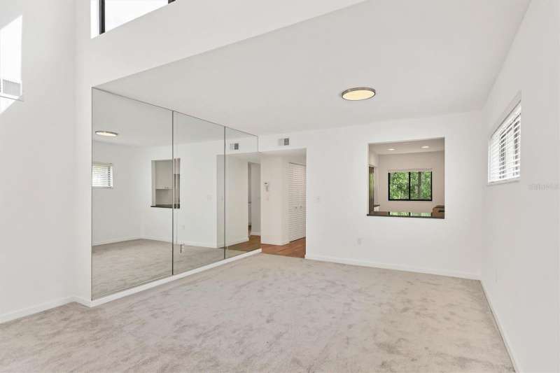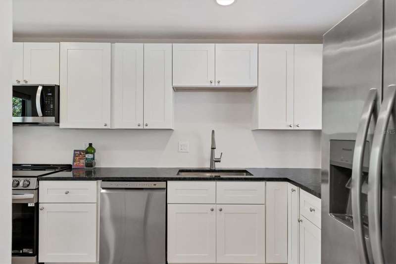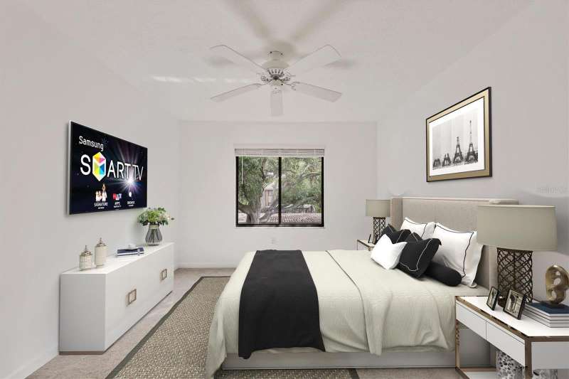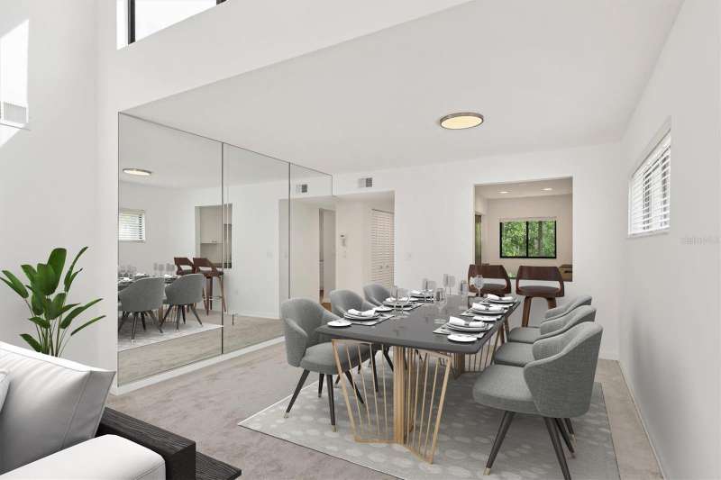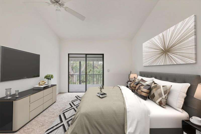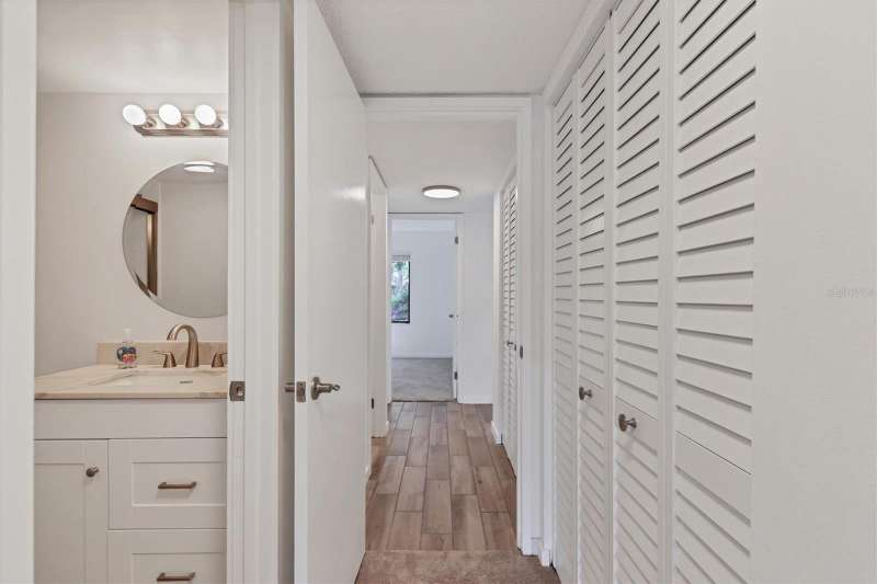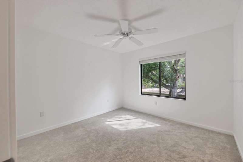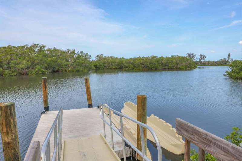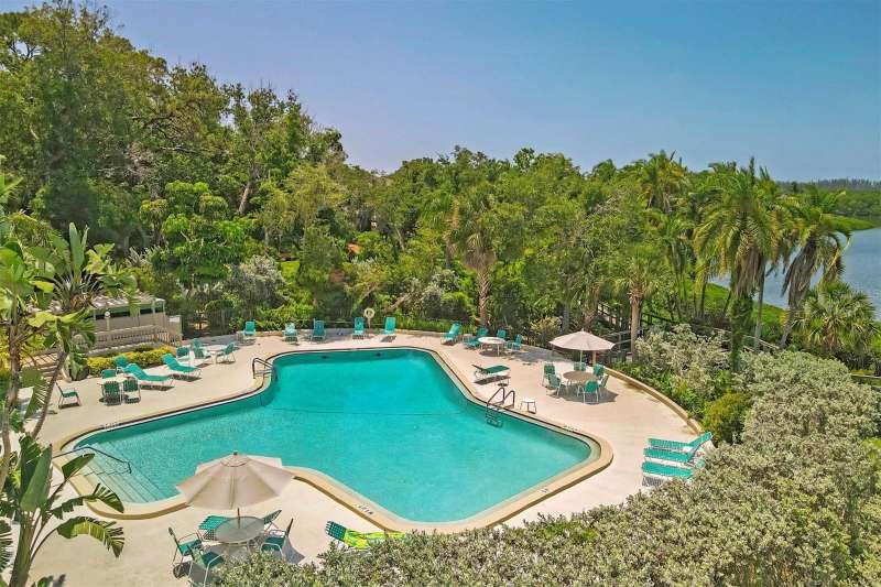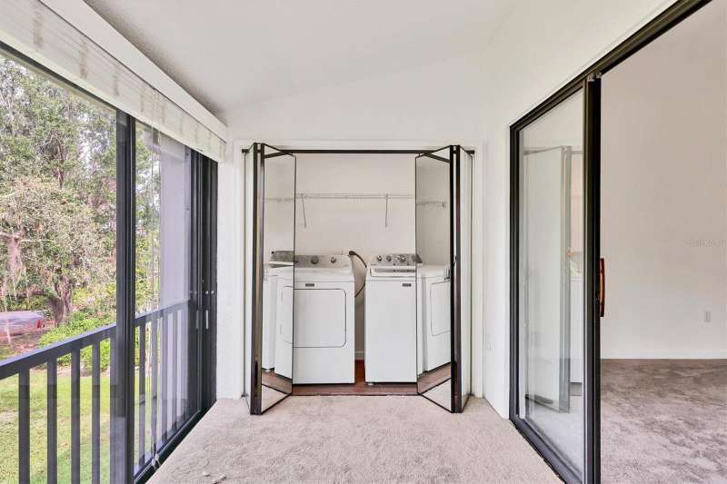 One or more photo(s) has been virtually staged. Beautifully updated in 2025, this second-floor end-unit retreat perfectly combines modern comfort with the unmatched natural beauty of Pelican Cove. Step inside to find new flooring, interior doors, fixtures, and freshly textured and painted walls throughout—including halls and closets. Both bathrooms feature new cabinets and fixtures, while the kitchen boasts new cabinets, countertops, and stainless steel appliances including a range, microwave, dishwasher, and refrigerator. A new Maytag washer and dryer add even more convenience, making this home truly move-in ready. Nestled among grand oaks, this bright and airy home offers a dining room lined with extra windows and topped with transoms, filling the space with natural light. The Florida room spans an impressive 22 feet of sliders, complete with two-inch blinds for privacy when desired. Outside, immerse yourself in 75 acres of lush, mature landscaping where the fragrance of jasmine fills the air and vibrant flowering foliage creates a private bird sanctuary. Your covered carport with attached storage shed adds everyday practicality, while the community invites you to embrace an active, social lifestyle. Swim in one of six pools, learn a new racquet sport, attend classes at “Pelican Cove University,” or sign up for a boat slip while kayakers enjoy free storage. Lovingly passed down through generations and thoughtfully updated for today’s buyer, this home is the perfect blend of modern updates, natural beauty, and resort-style amenities—all that's missing is you!