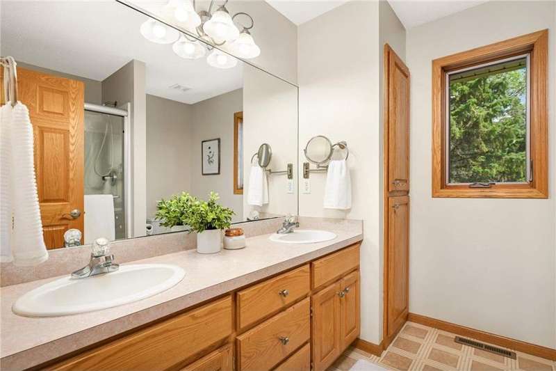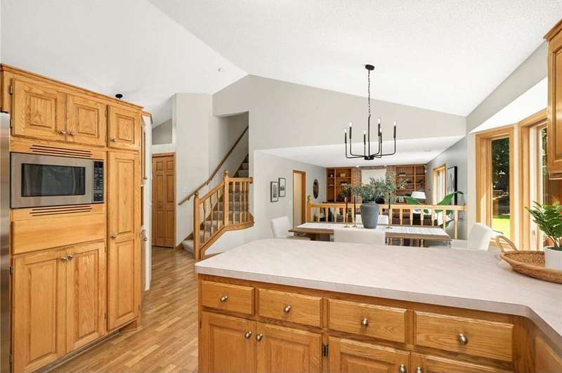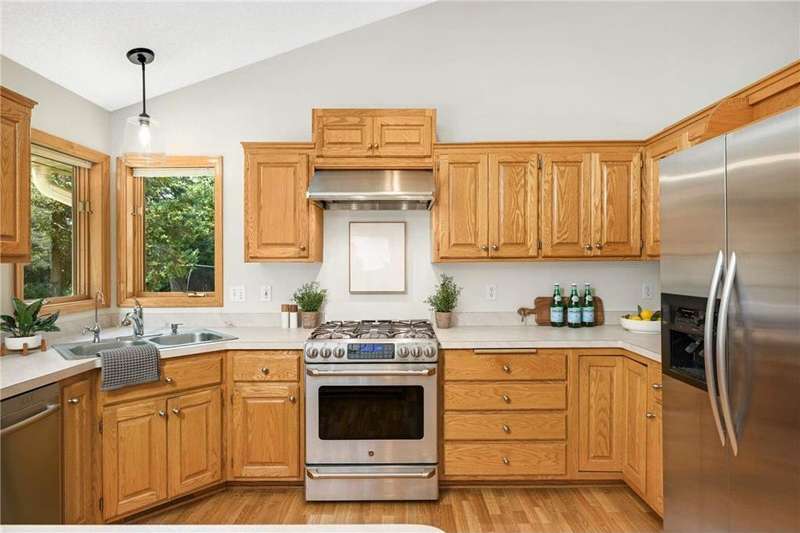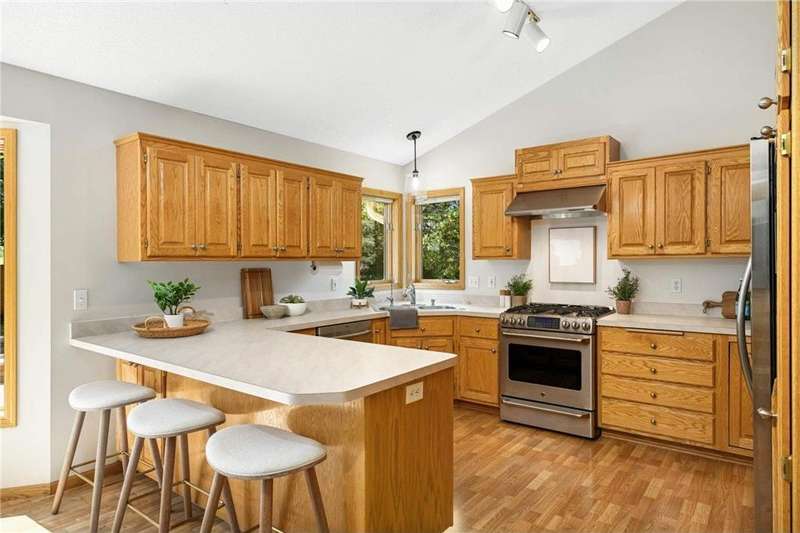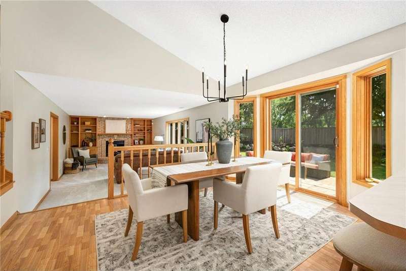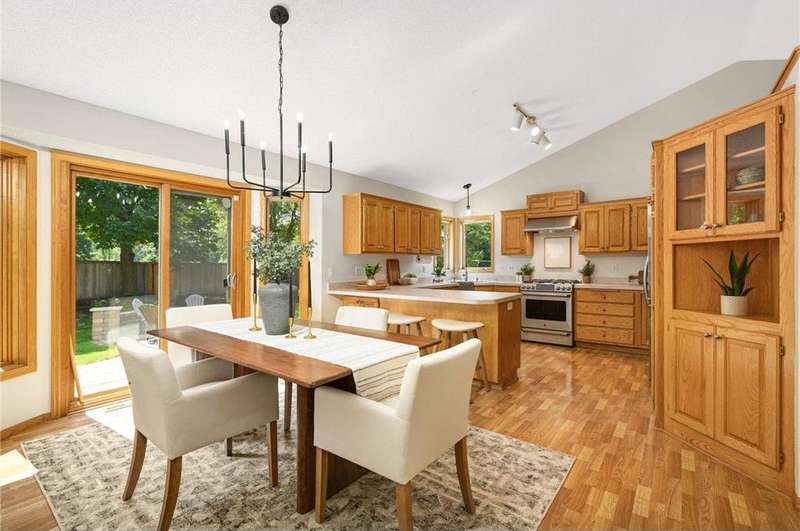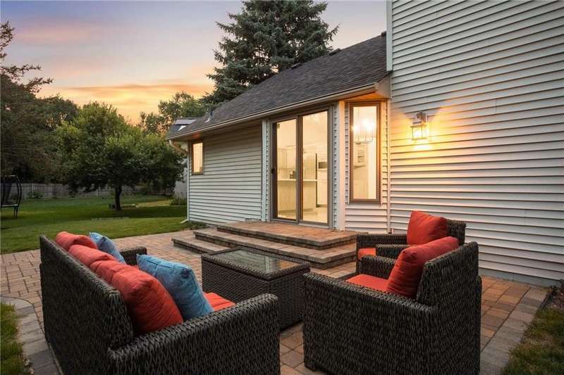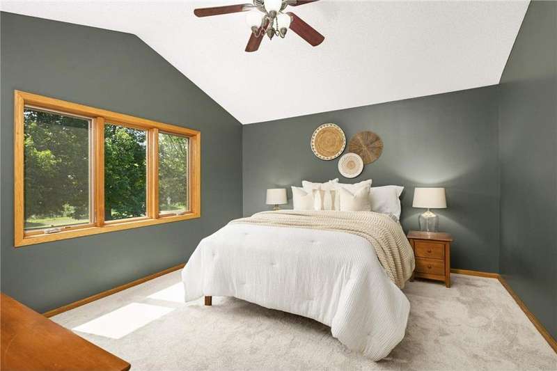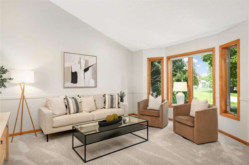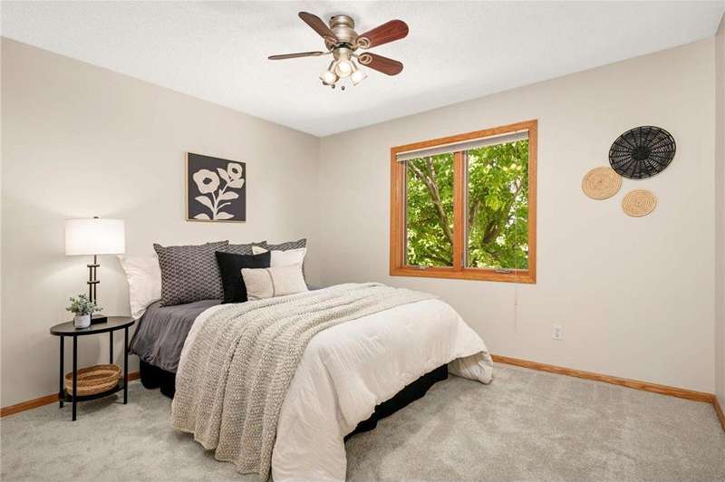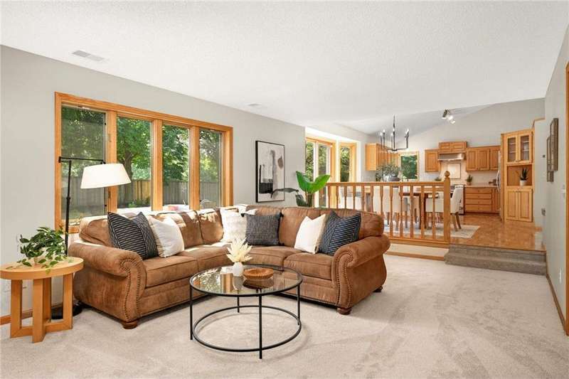 Discover this beautifully maintained Maple Grove home with a sun-filled main level featuring vaulted ceilings, beautiful floors, and an open layout designed for everyday living and entertaining. The kitchen shines with stainless steel appliances, a breakfast bar, and seamlessly flows into the dining and living spaces. The inviting great room with cozy gas fireplace, main-level bedroom, ¾ bath, laundry room, and an additional living room add comfort and function. Upstairs, the owner’s suite offers a walk-in closet and bathroom with dual vanities, plus two more bedrooms and another bath. Enjoy the fully insulated/heated garage and custom paver patio with built-in gas firepit—perfect for gatherings or relaxing. Updates include fresh paint and new carpet throughout, new roof and washer/dryer (2024), new furnace and A/C (2023), and a Kinetico water filtration system. Ideally located near shopping, dining, and award-winning schools, this home blends comfort, style, & peace of mind.