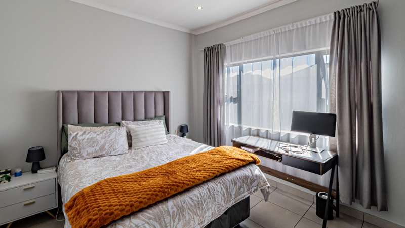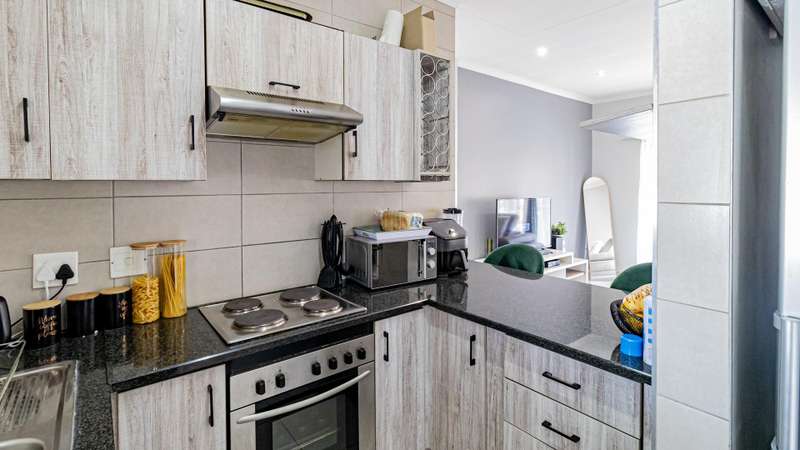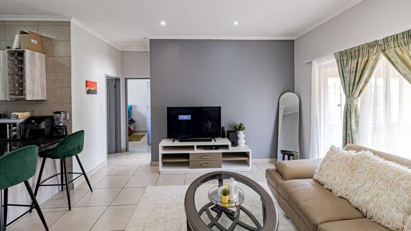 This inviting first-floor apartment in the secure 21 Sunset complex offers modern living with a touch of elegance. Featuring two spacious, sun-filled bedrooms with built-in cupboards, the home is adorned with earthy tones, excellent natural light, and contemporary finishes throughout. The full bathroom includes a bath with a hand shower, toilet, basin, and separate shower for added convenience. The neat granite-topped kitchen boasts ample built-in cupboards, space for one under-counter appliance, and a single-door fridge. The expansive lounge flows seamlessly onto a covered balcony, complete with a built-in braai, perfect for entertaining. Additional highlights include fiber internet, 24/7 security, and one covered parking space. The well-maintained complex ensures peace of mind with biometric access, facial recognition entry and exit, and robust security measures. Ideally located, it offers quick access to major malls, William Nicol, Witkoppen Roads, and the N1, making it a perfect blend of comfort and convenience.