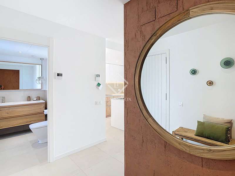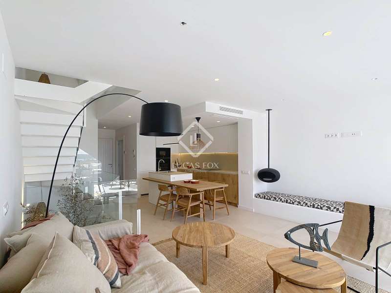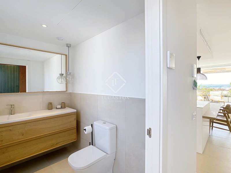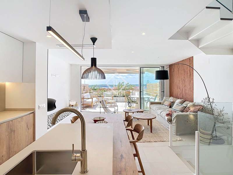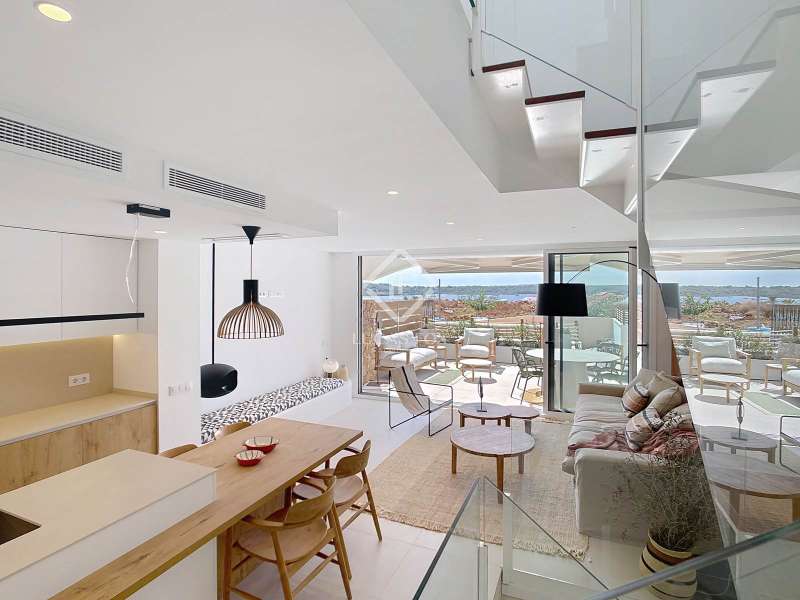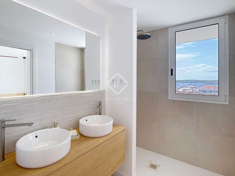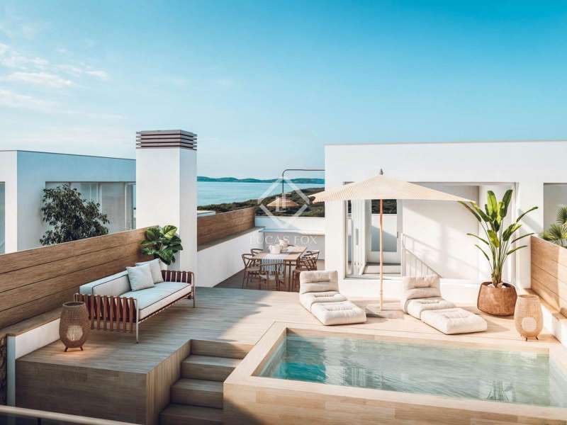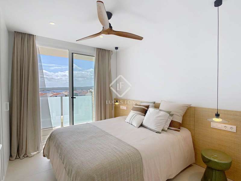 Lucas Fox presents this exclusive new build luxury semi-detached house measuring 179 m² and totaling 95 m² of terraces, with a private pool, private garage for two vehicles, and distant views of Fornells Bay. It is located in a complex comprising a total of 22 homes, with spectacular garden areas and two communal pools. This elegant new build townhouse , spread over four floors, perfectly combines Mediterranean style with contemporary design, high-quality materials, and a prime location with stunning views of Fornells Bay. In the floor , the property features a bedroom that can be used as an study or maid's room. It also has a bathroom and storage space, ideal for storing bicycles and sports equipment, or converting it into a multipurpose room, depending on the owner's needs. There is also a utility room area, an English patio, and a private garage for two vehicles. The ground floor leads into the property, which welcomes us with a spacious entrance hall and a guest toilet. From the entrance hall, we enter a spacious living-dining room with a fireplace and large panoramic windows that provide natural light throughout the room and access onto the exterior, creating a feeling of spaciousness and fluidity. The open-plan kitchen is fully equipped and designed to blend harmoniously into the main space. On the first floor, there are three bedrooms, two of them with built-in wardrobes and high-end finishes. The main bedroom includes a private bathroom and access to a balcony with sea views. The other two bedrooms share a second full bathroom . The upper floor is undoubtedly one of the property's greatest attractions: a spectacular sun terrace with a private saline pool and a chill-out area with a barbecue, offering unparalleled panoramic views of the sea, Fornells Bay, and the mountains. A perfect space to relax, sunbathe, or enjoy al fresco evenings watching the Menorcan sunset. The finishes have been carefully chosen, and it features a very lightweight, white-painted iron-framed staircase with iroko wood treads that add warmth to each room. It features aerothermics heating, air conditioning, ceiling fans in the bedrooms, double-glazed sliding doors, and Menorcan shutters and ullastre doors. The house is sold fully furnished. The property stands out for its unique style, beautiful views, and tranquility. It undoubtedly represents an exceptional opportunity for those seeking a home with character in one of Menorca's most privileged settings. Without a doubt, a unique property to live in year-round, or spend time with family and/or friends. Contact us for more information or to arrange a viewing.